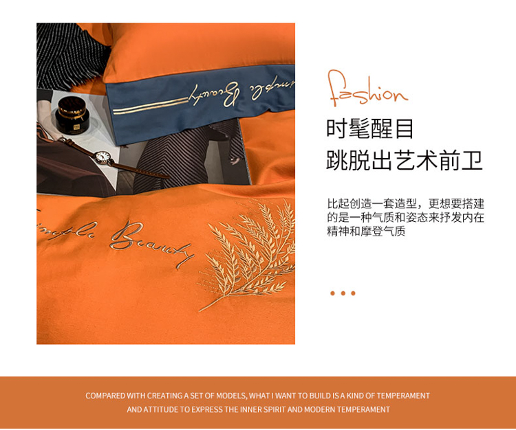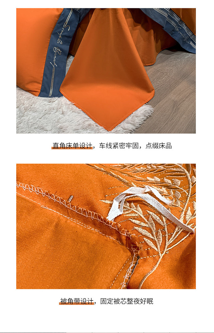 商品名称:博纳家纺 2021新款40S全棉磨毛四件套纯棉—赛琳娜 爱马仕橙
