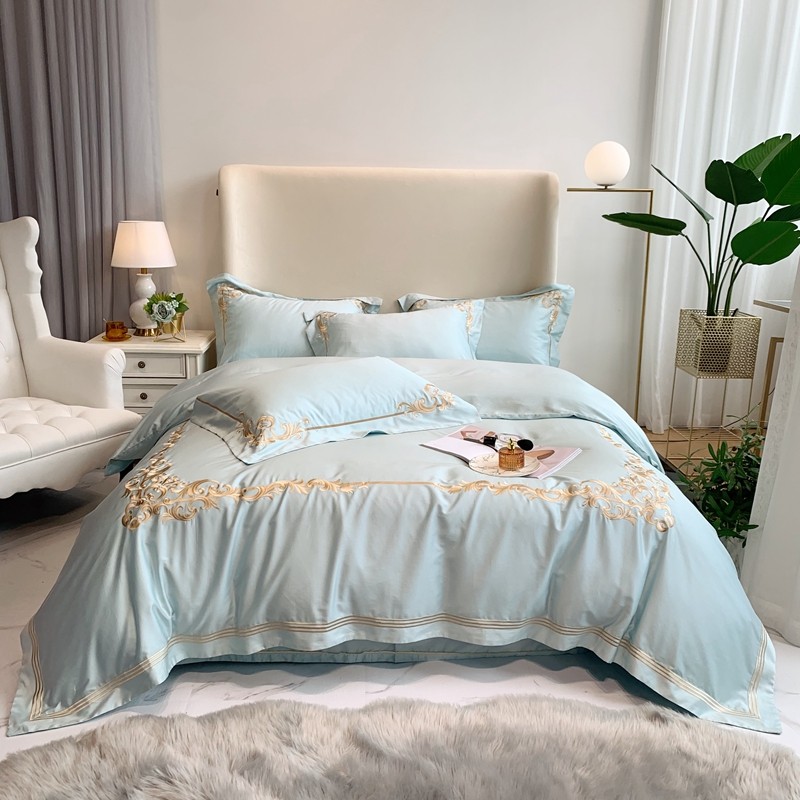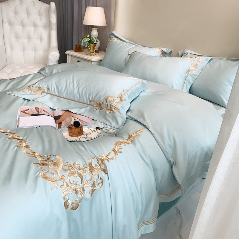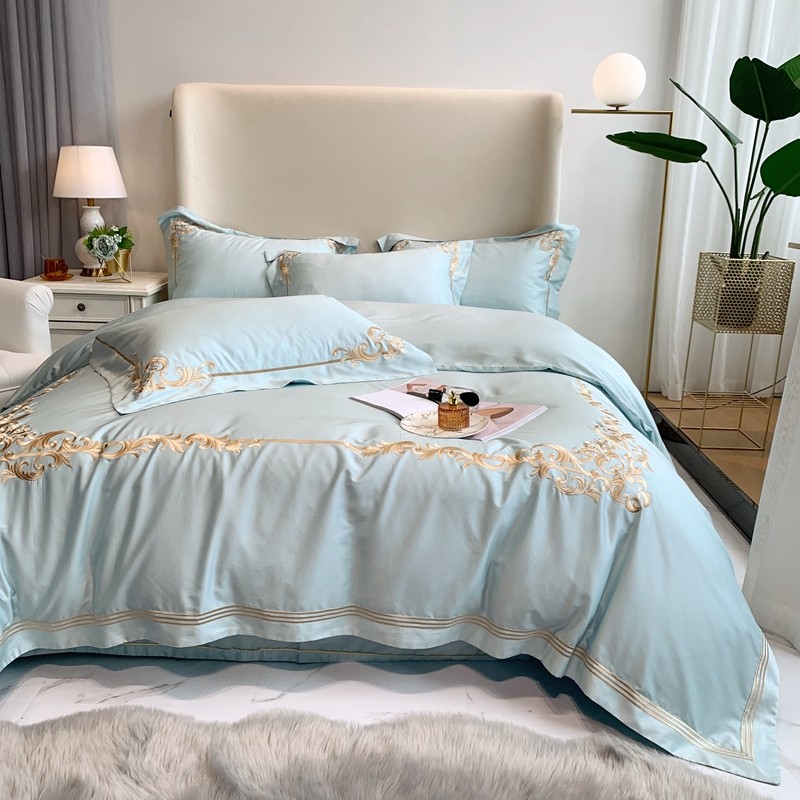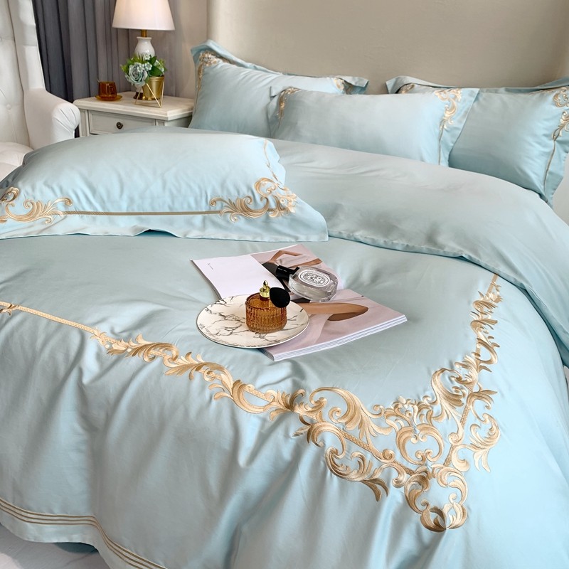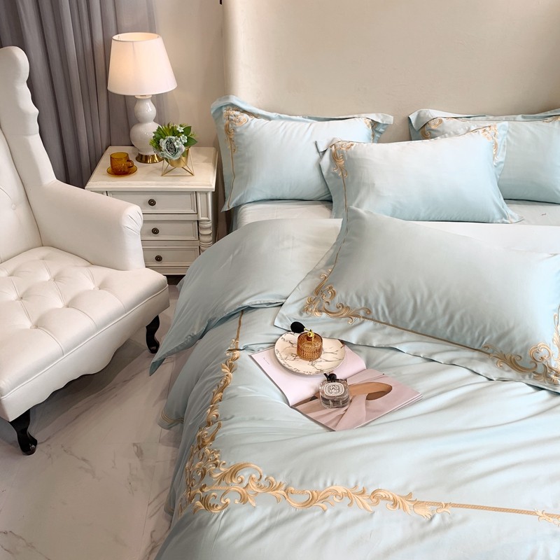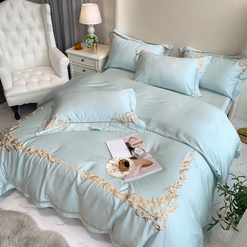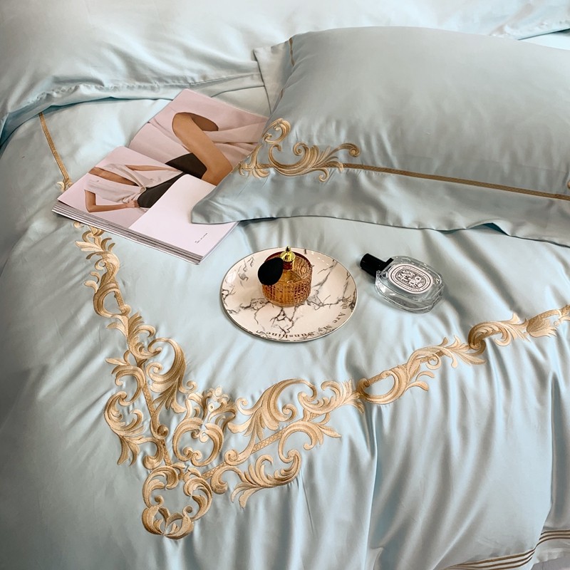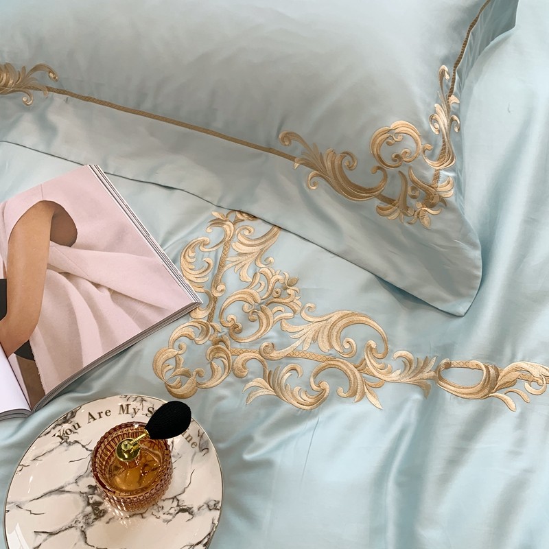 馨蕊2021全棉60s双股埃及长绒棉四件套-巴比伦系列湖水蓝