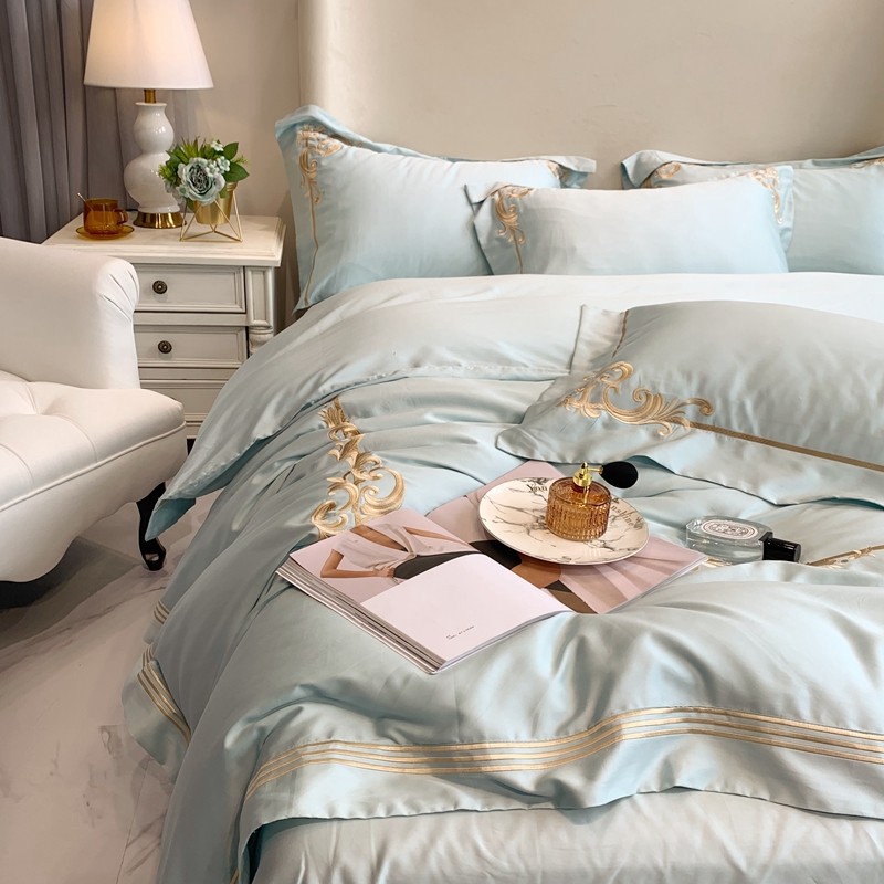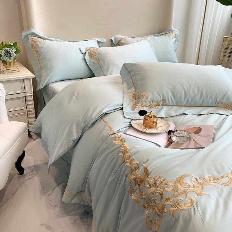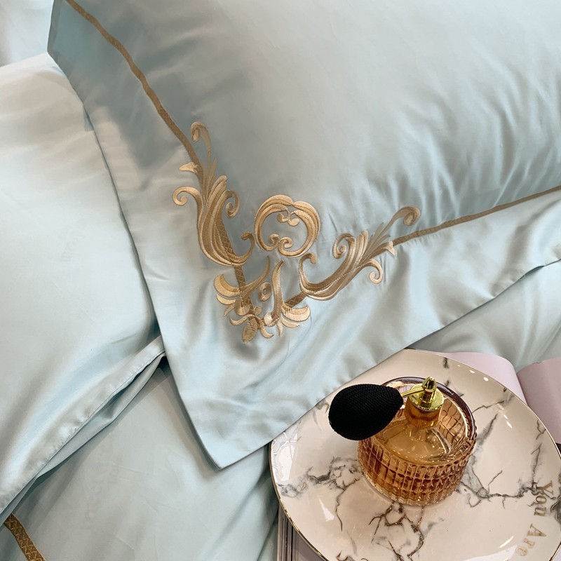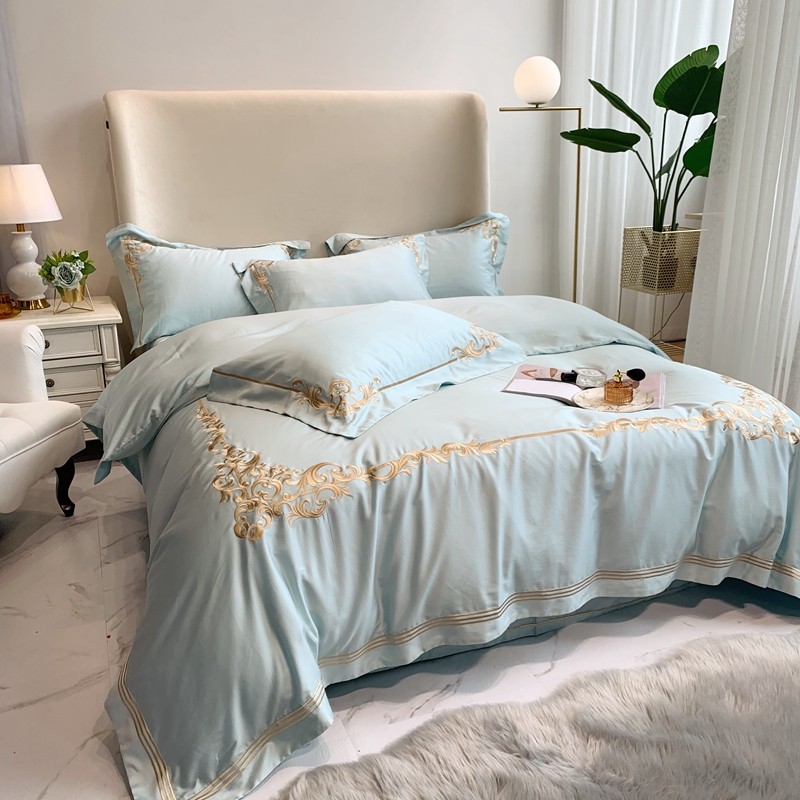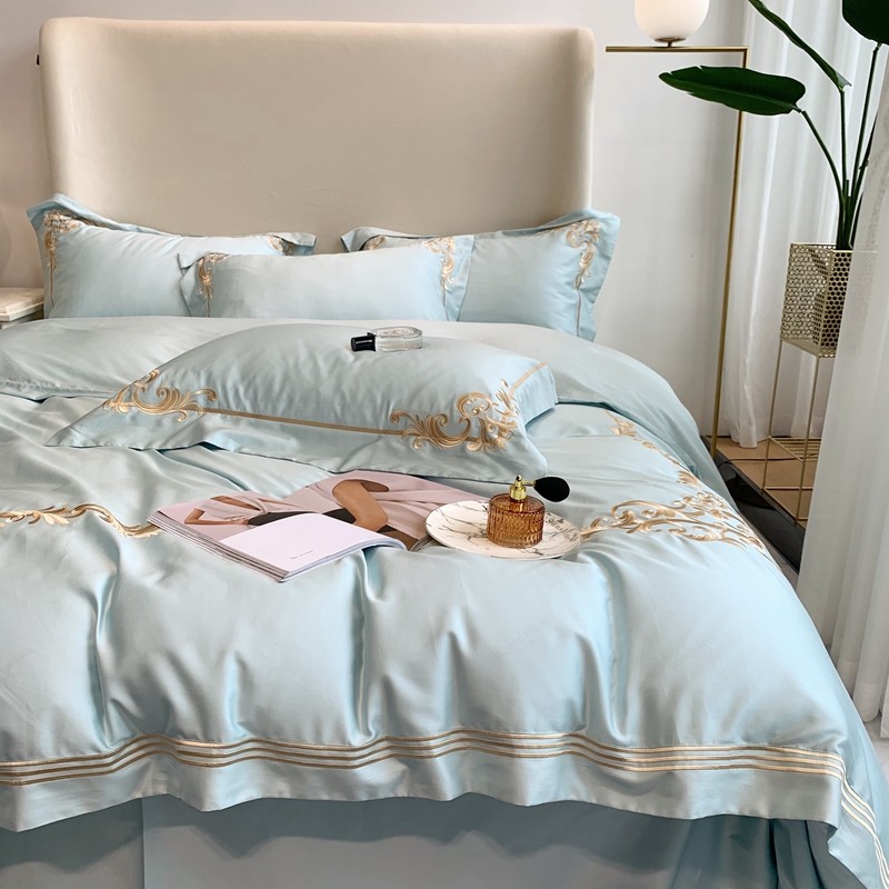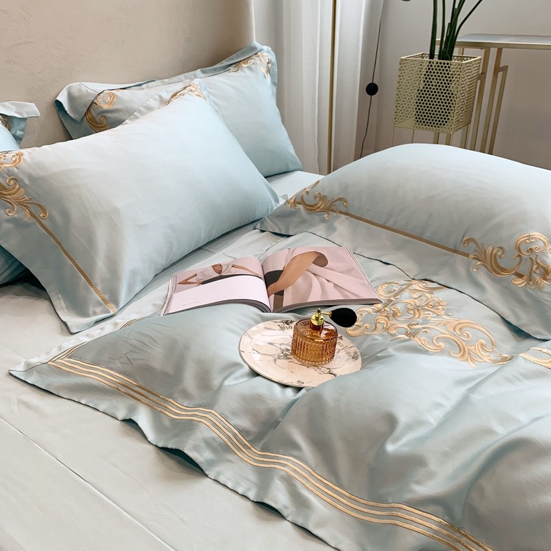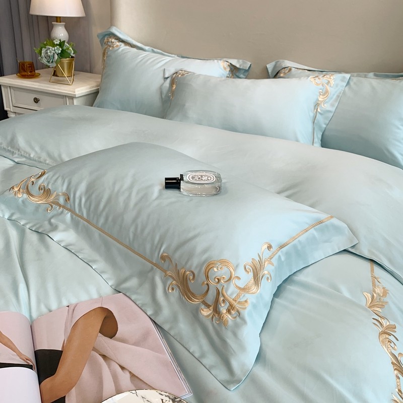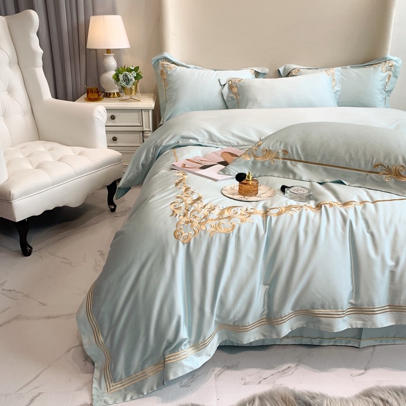 馨蕊2021全棉60s双股埃及长绒棉四件套-巴比伦系列湖水蓝