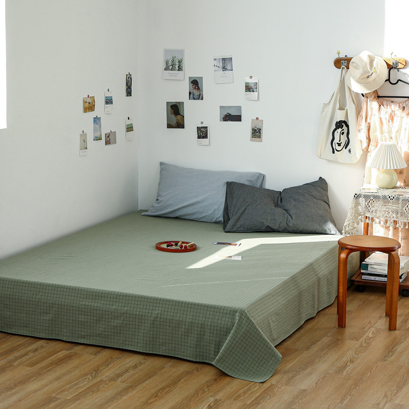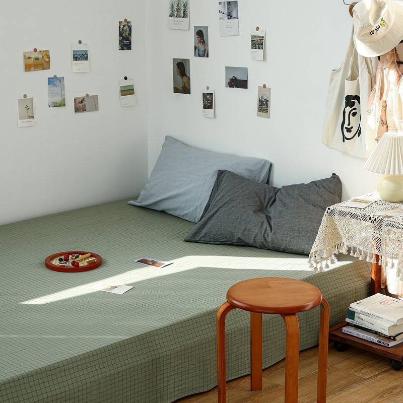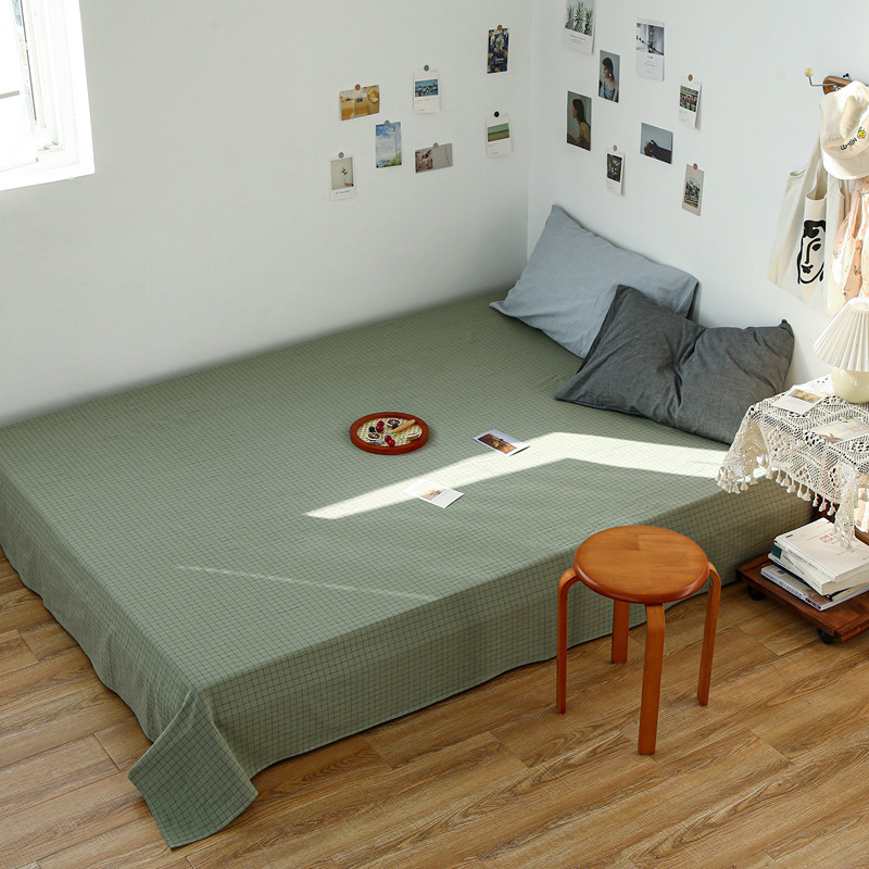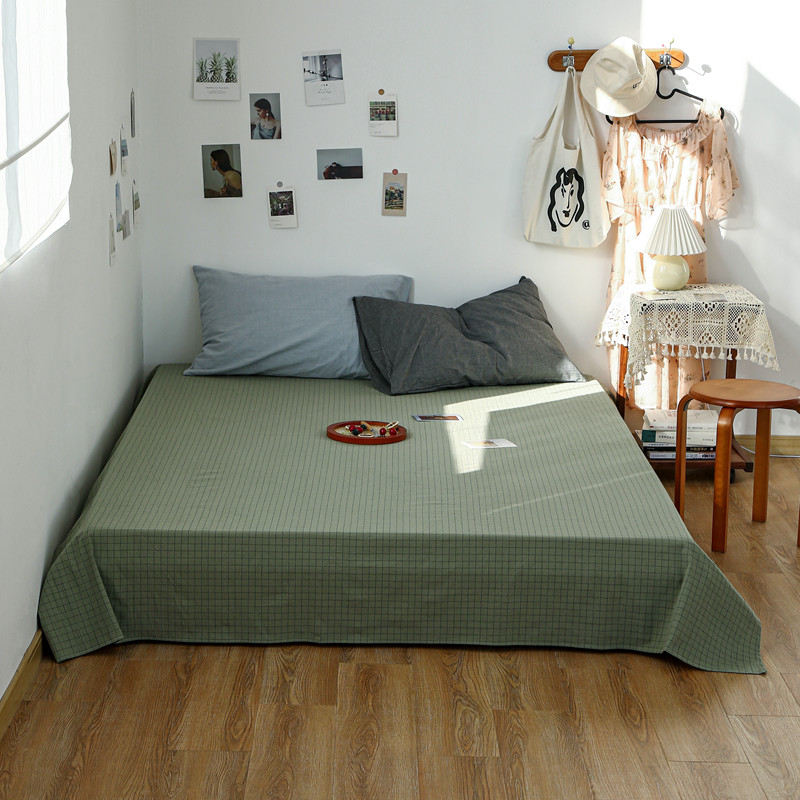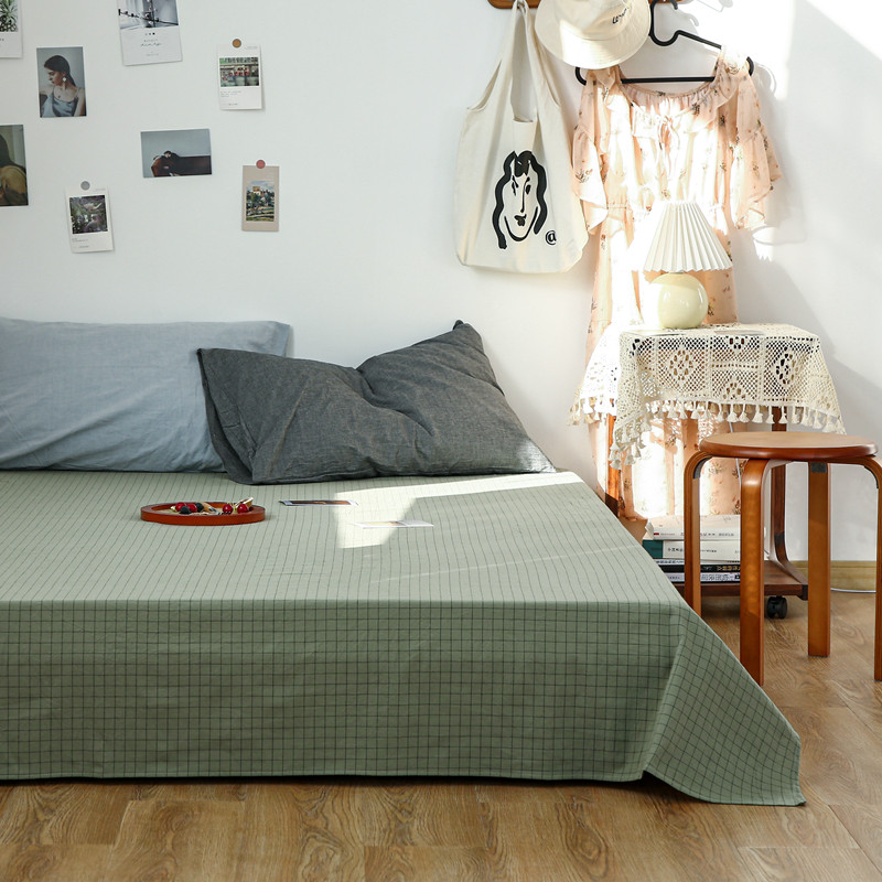 安莱生活 2021新款色织全棉水洗棉单床单 抹茶小格
