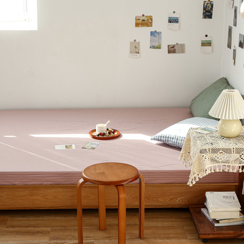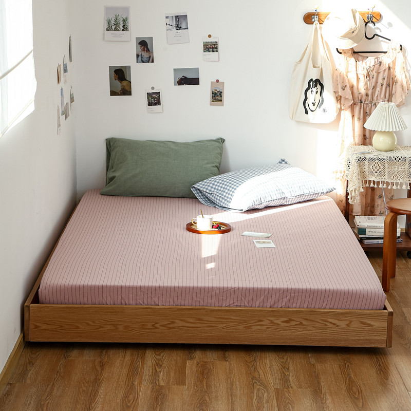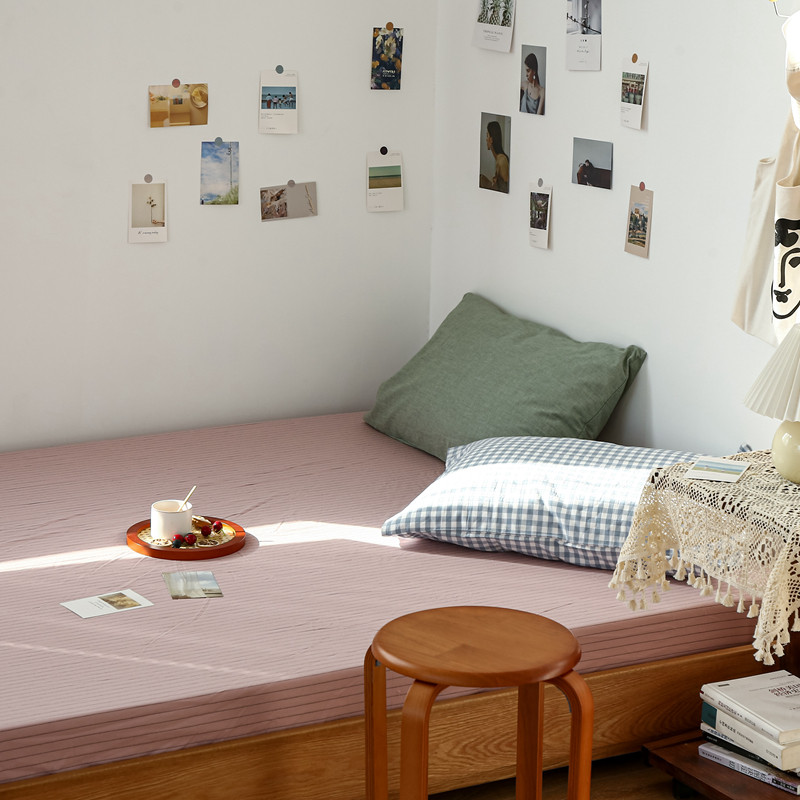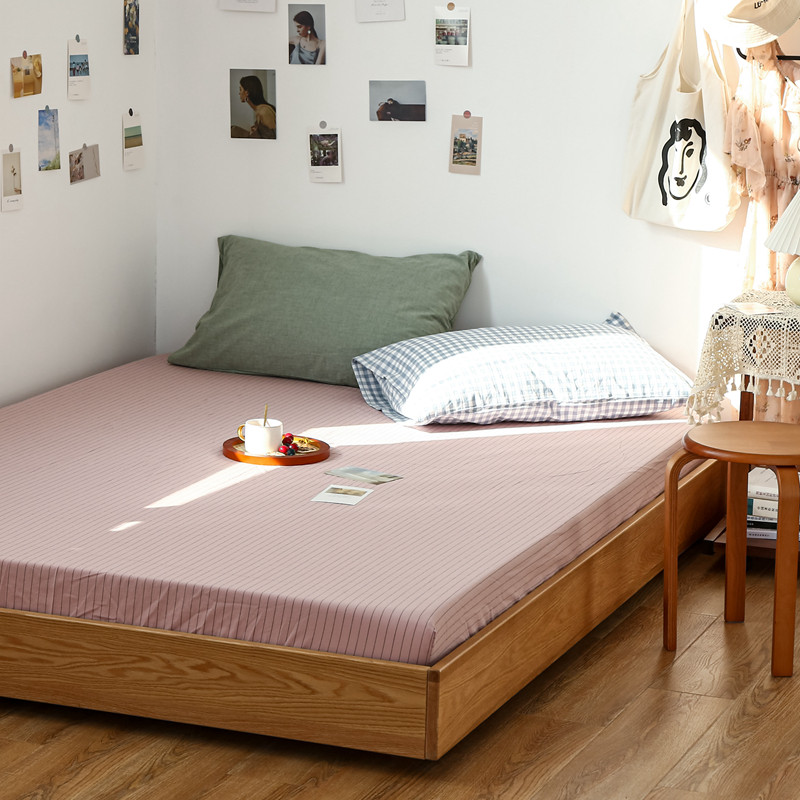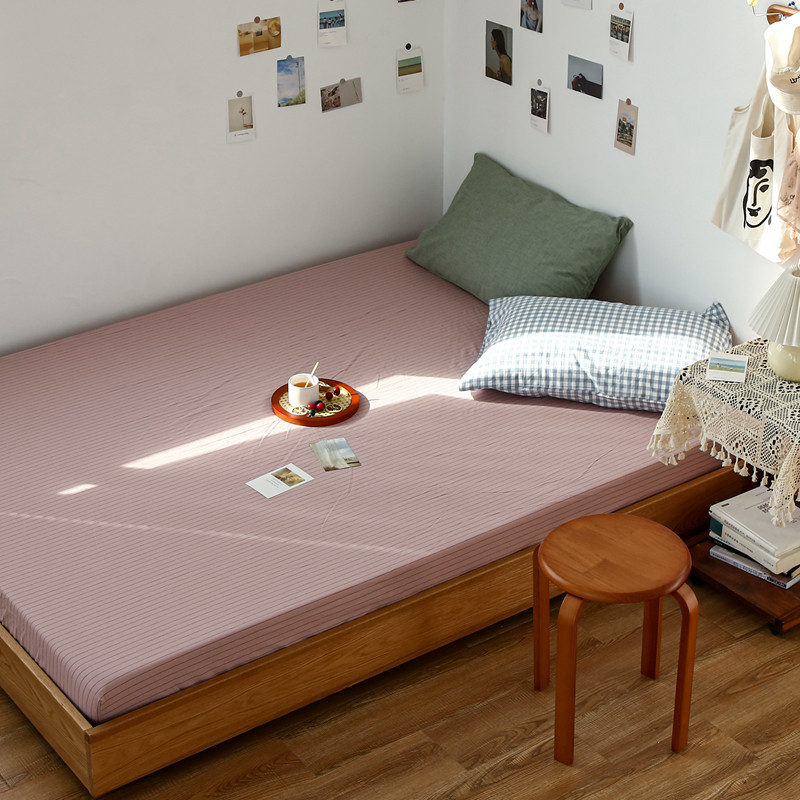 安莱生活 2021新款色织全棉水洗棉单床笠 藕粉细条