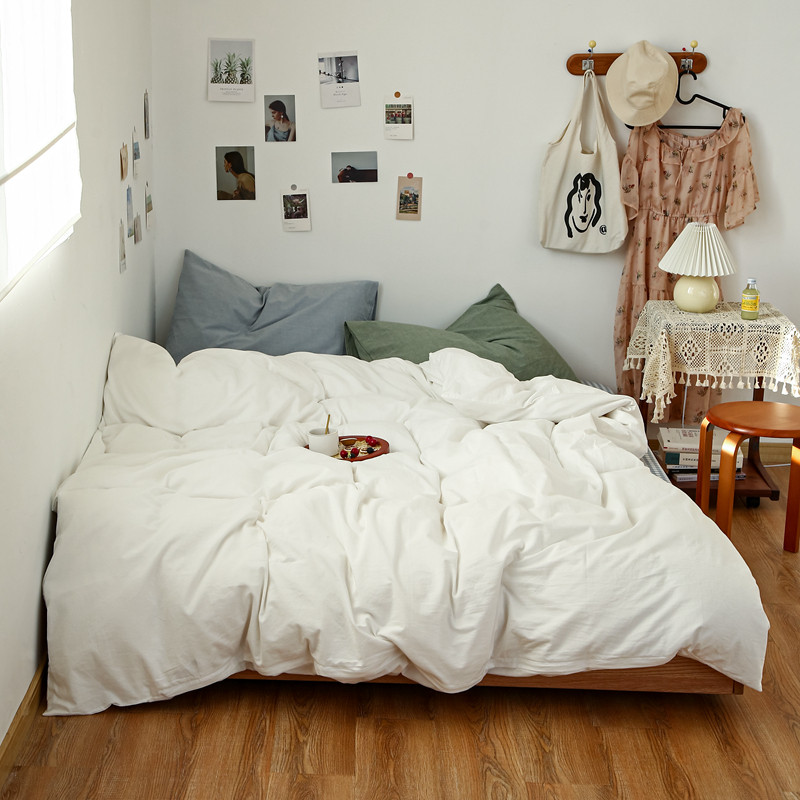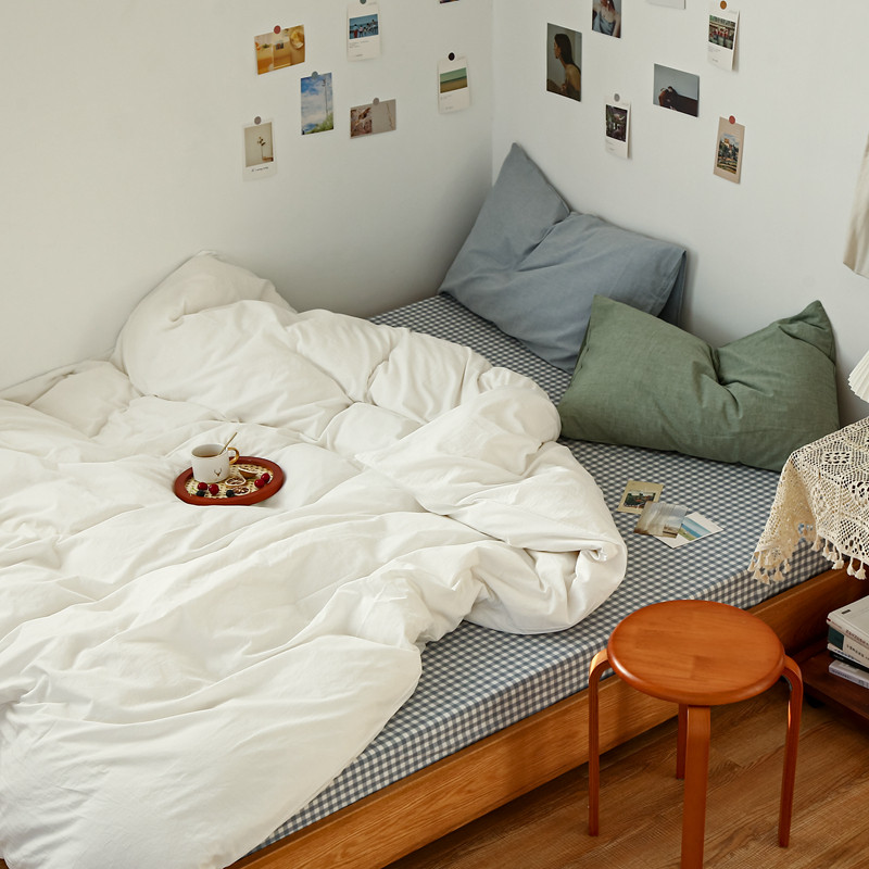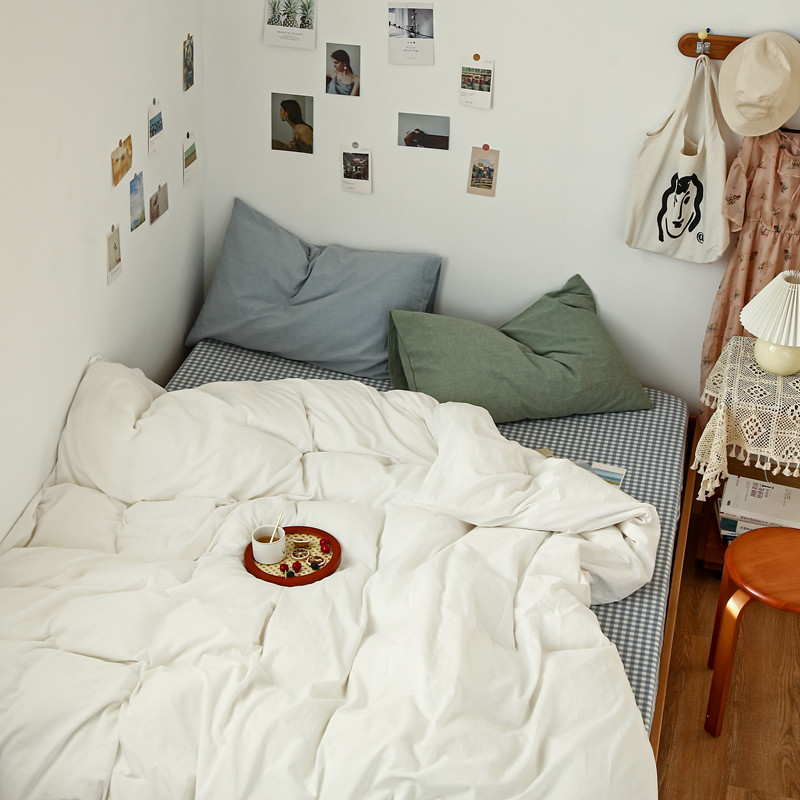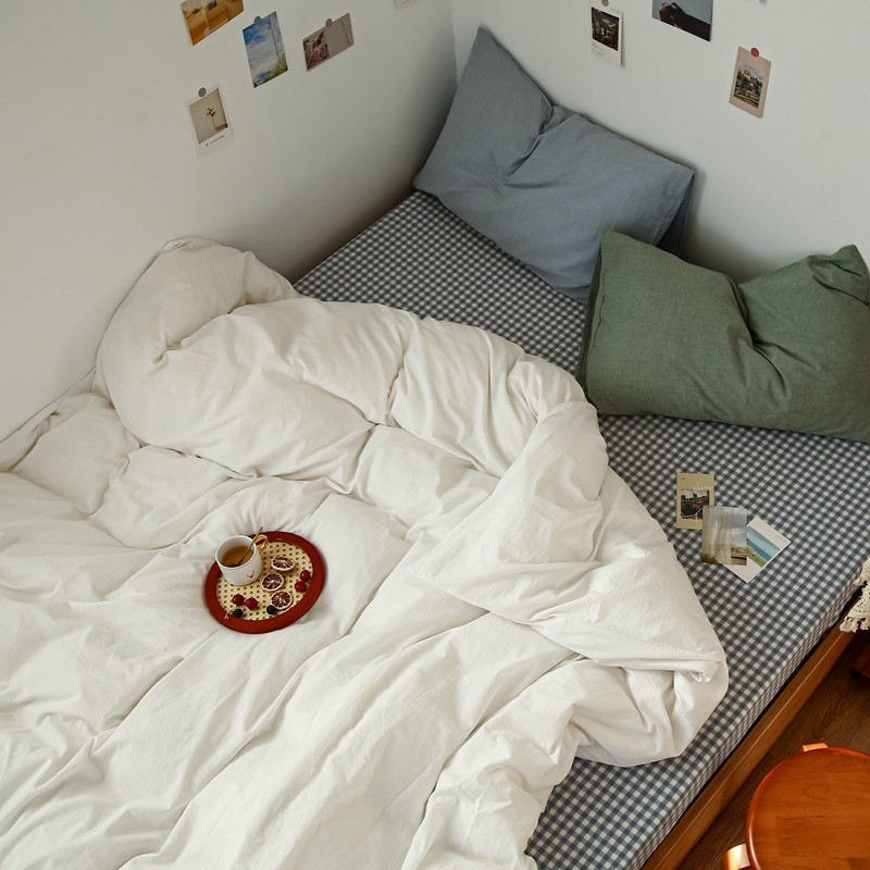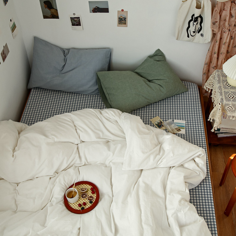 当前位置: 91家纺网 > 商品网购 > 床品套件 > 四件套 > 水洗棉四件套 > 安莱生活 2021新款色织全棉水洗棉混搭四件套 白色+浅兰小格