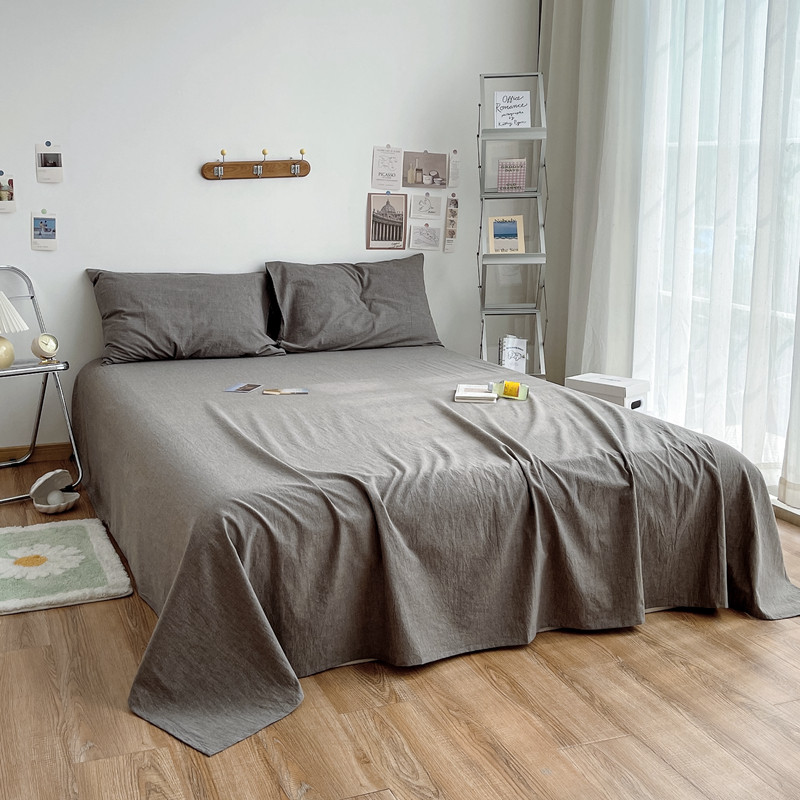 安莱生活 2021新款全棉水洗棉单床单 浅灰