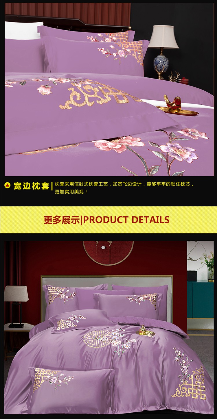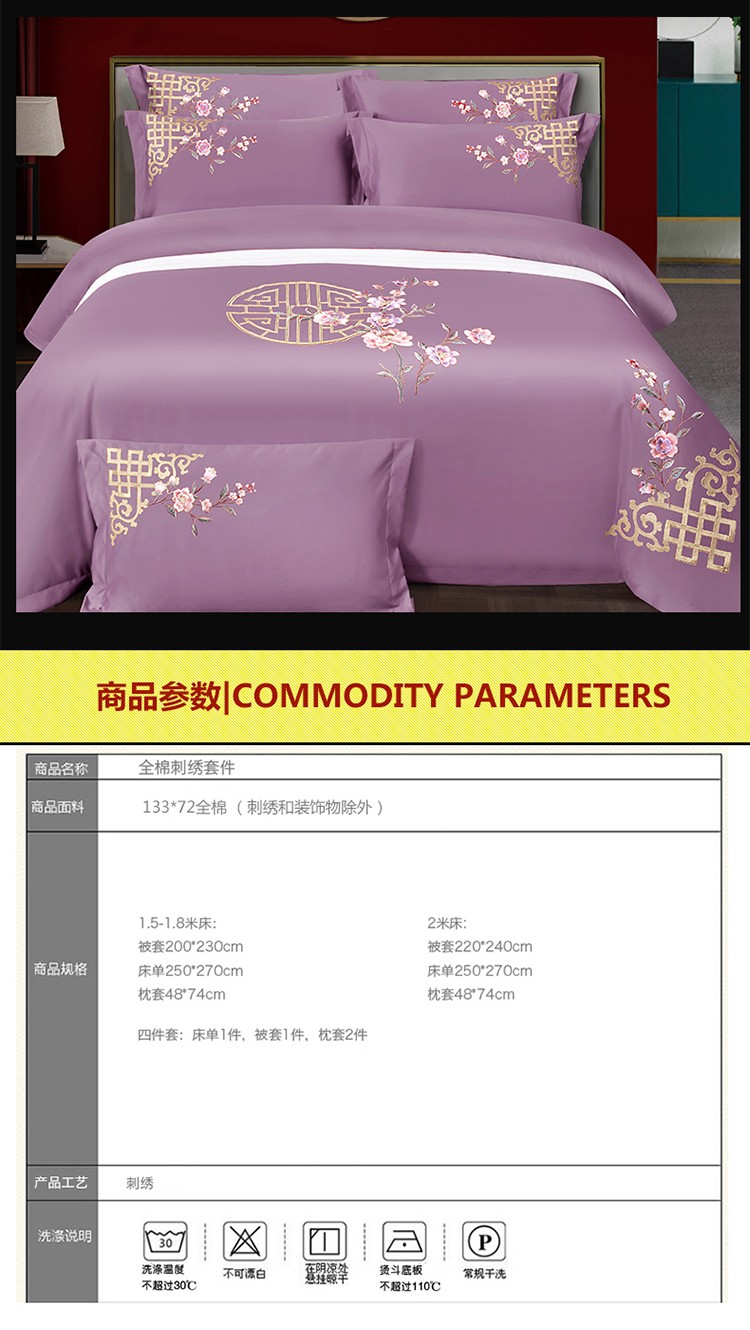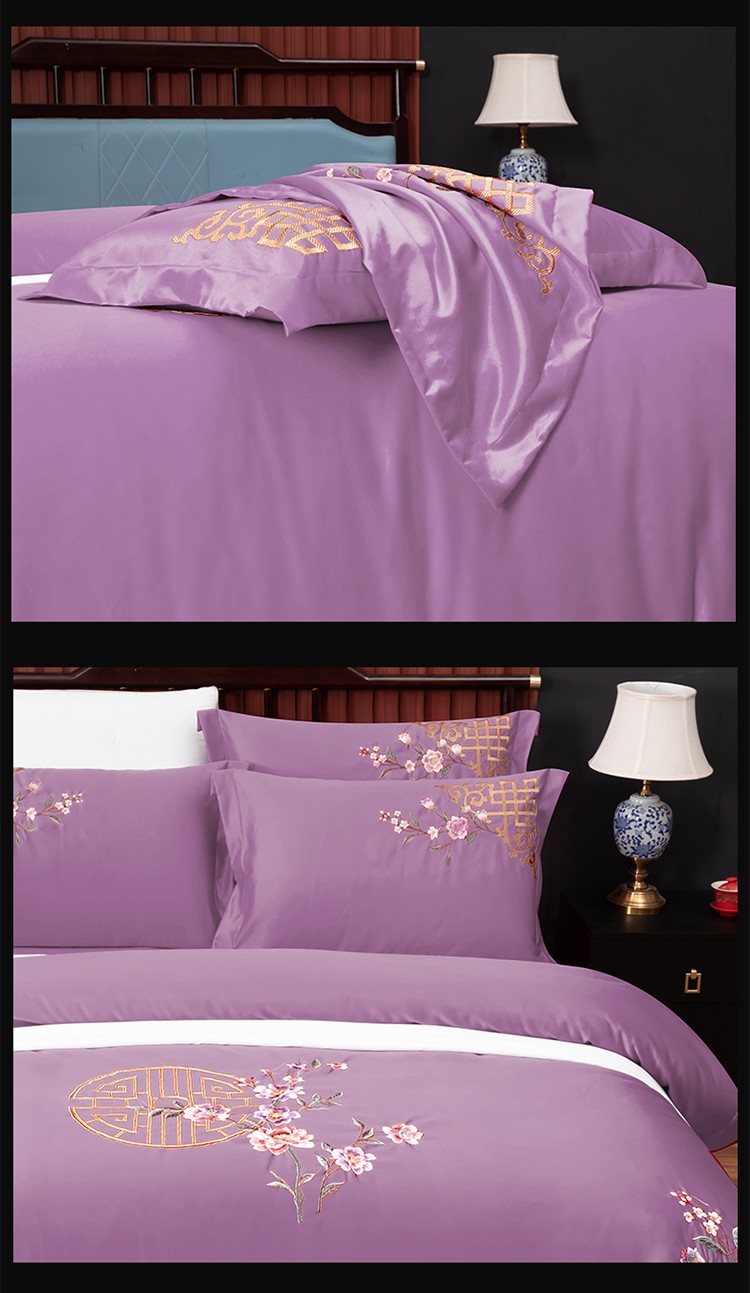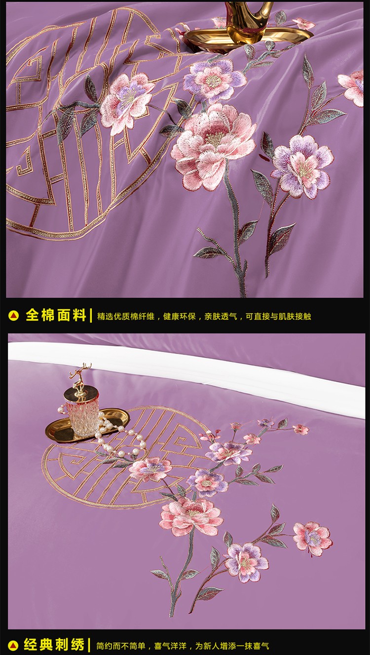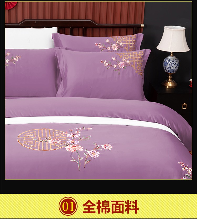 商品名称:婚庆四件套大红色刺绣花全棉纯棉结婚八色床上用品暗香 紫豆沙