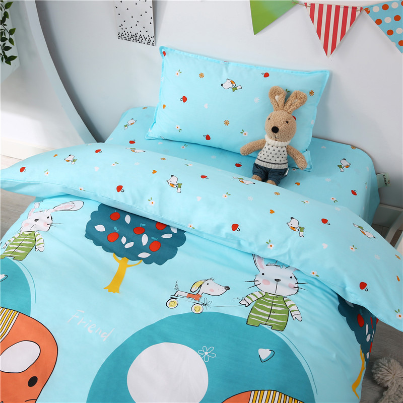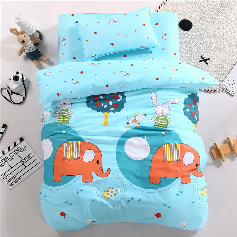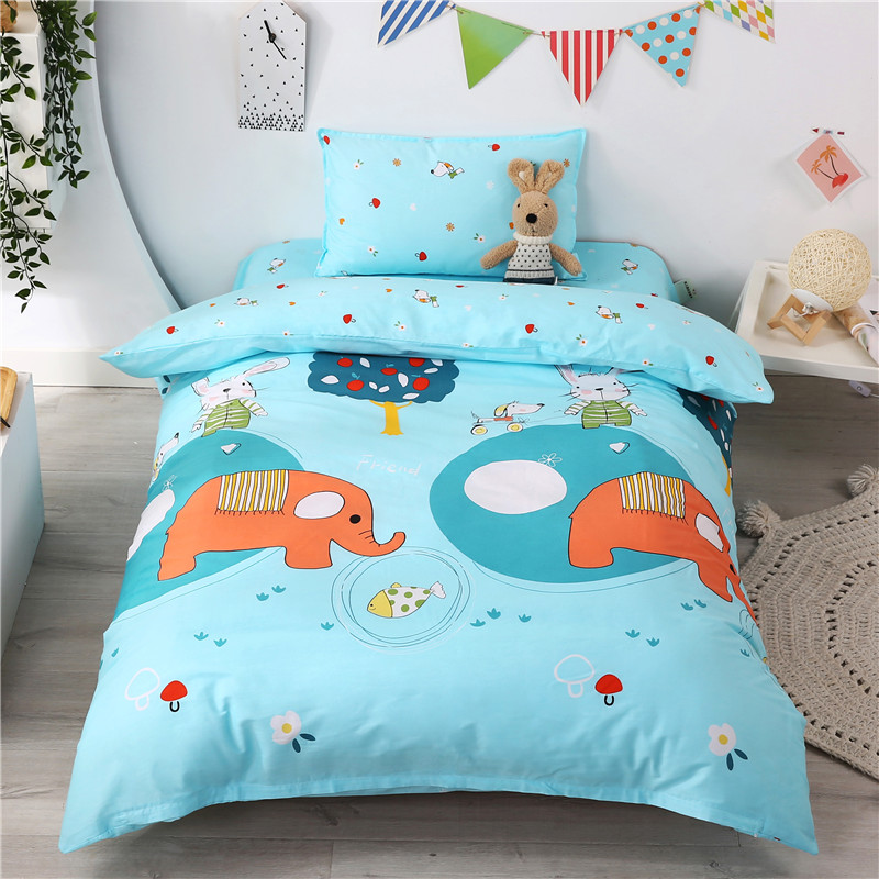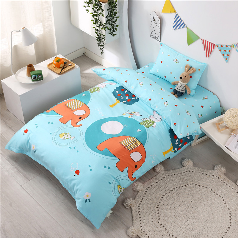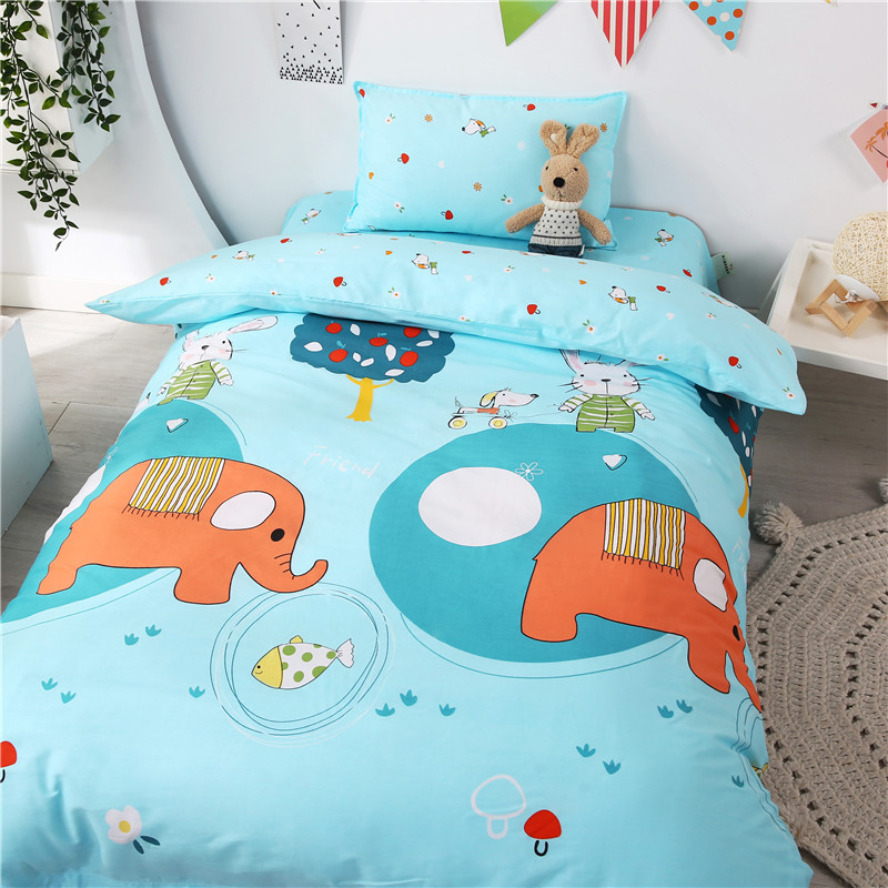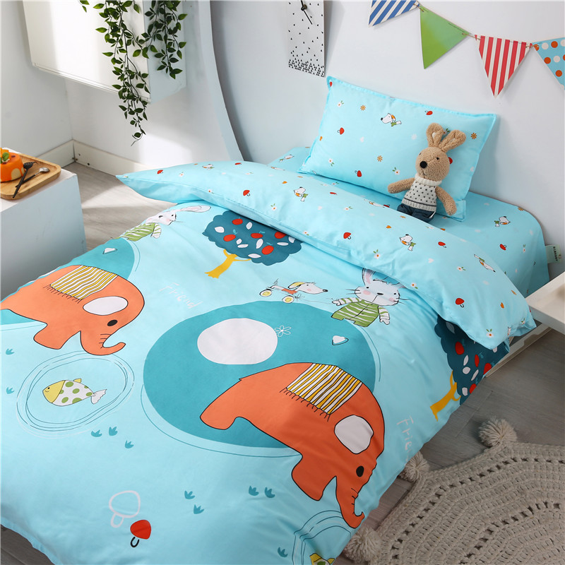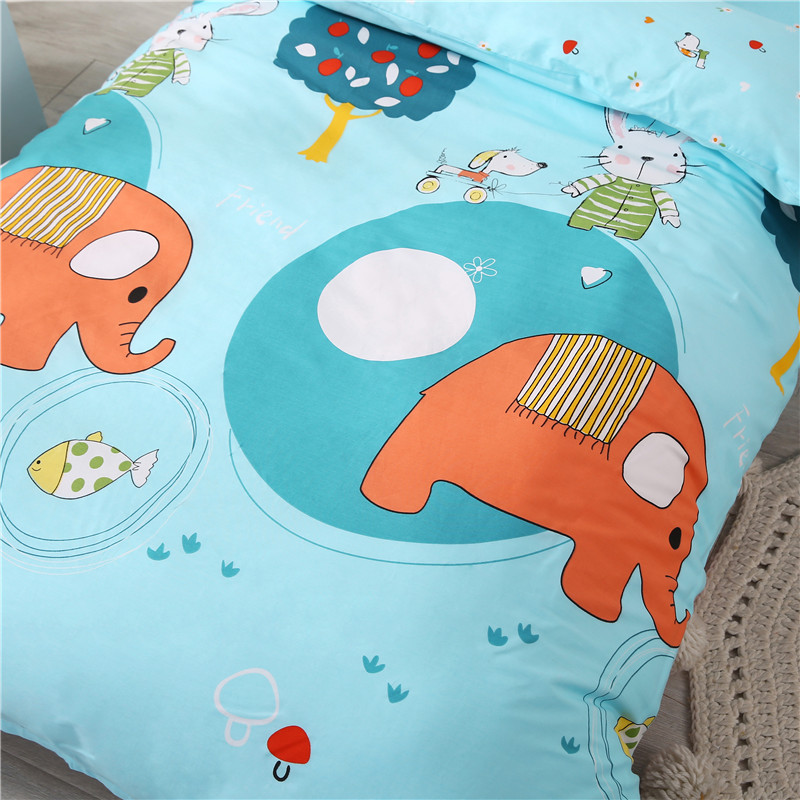 当前位置: 91家纺网 > 商品网购 > 床品套件 > 多件套 > 多件套 > 孩子王家纺 全棉13372小版卡通幼儿园多件套 小梦象-蓝