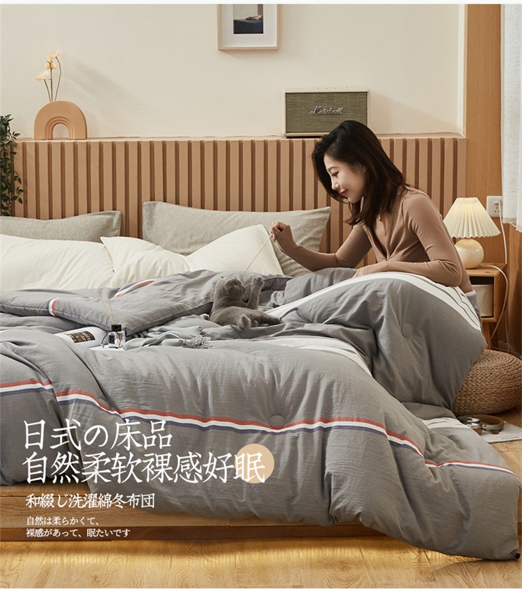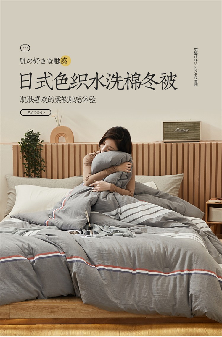 • 91家纺网 家纺一手货源 找家纺 莱宁被业 2021新款日式色织水洗棉冬被 布朗灰