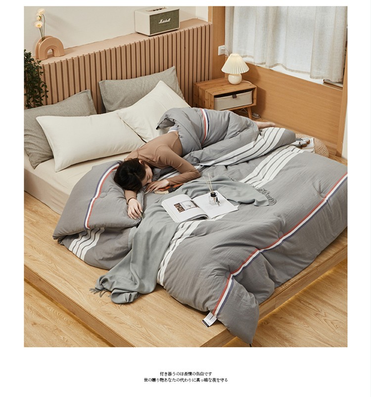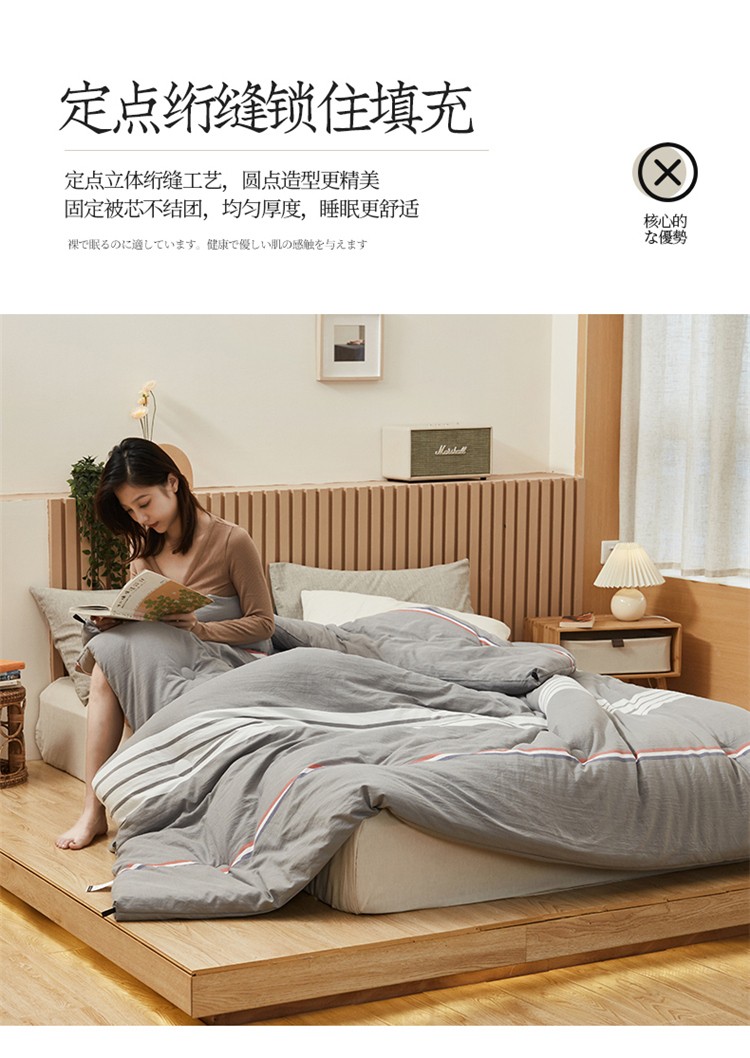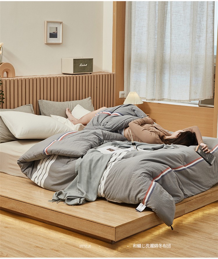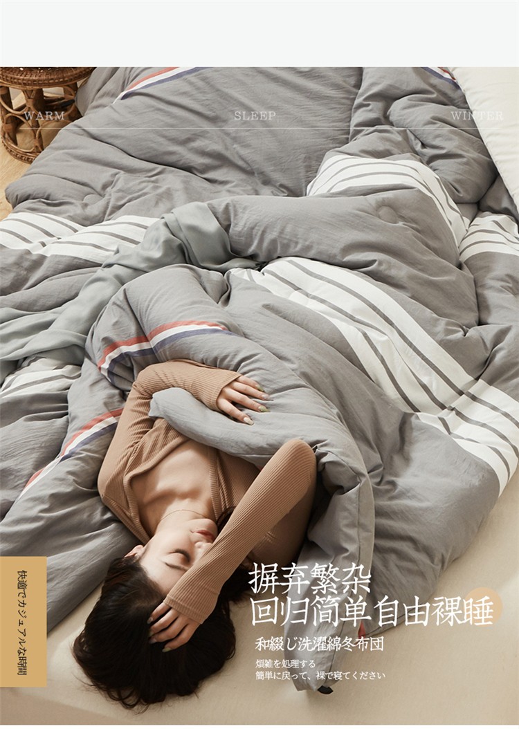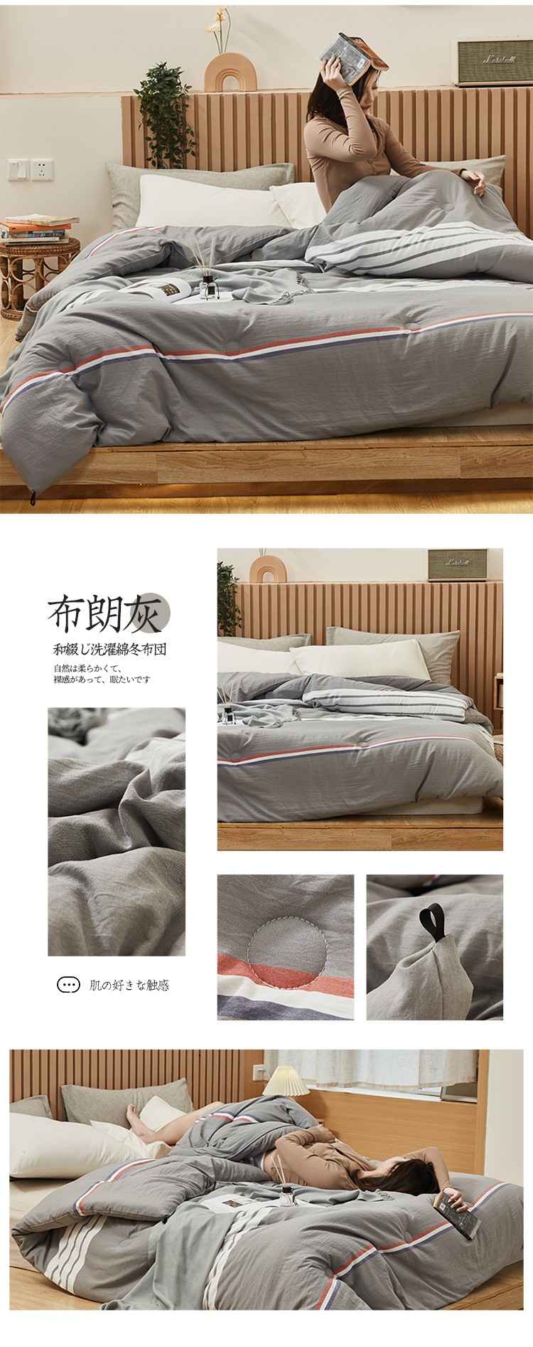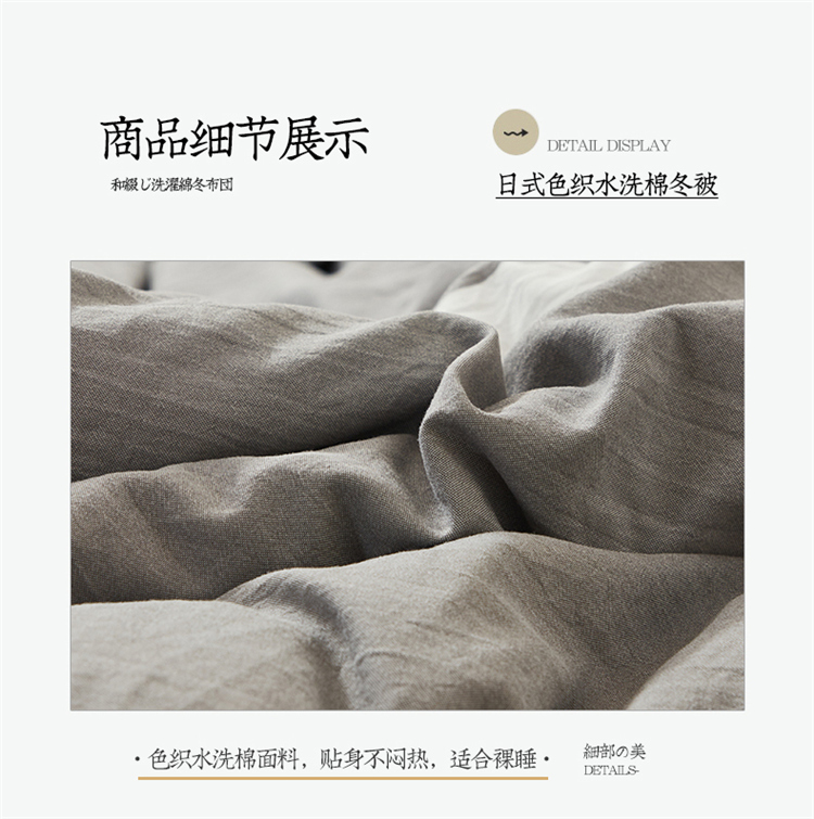 莱宁被业 2021新款日式色织水洗棉冬被 布朗灰
