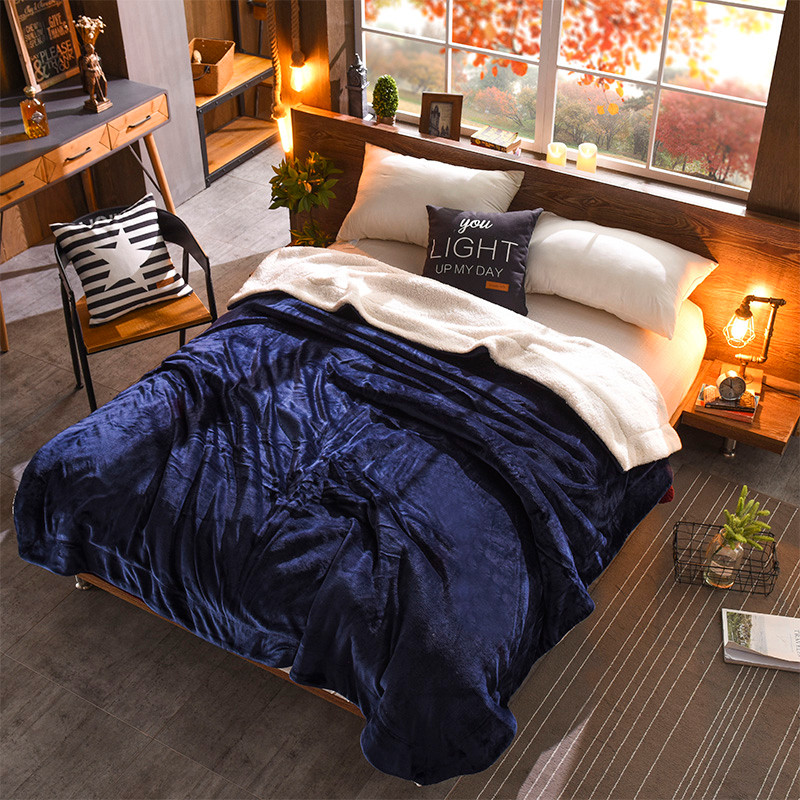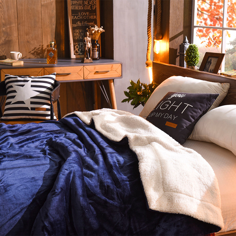 商品名称:BOSS 2021新款羊羔绒毛毯羊羔绒毯 单色蓝