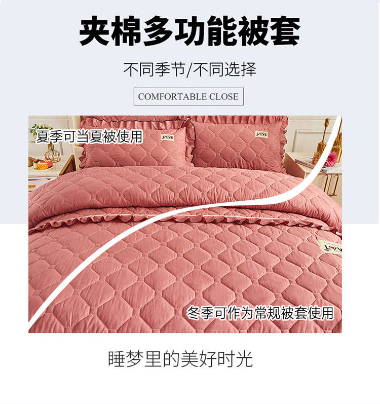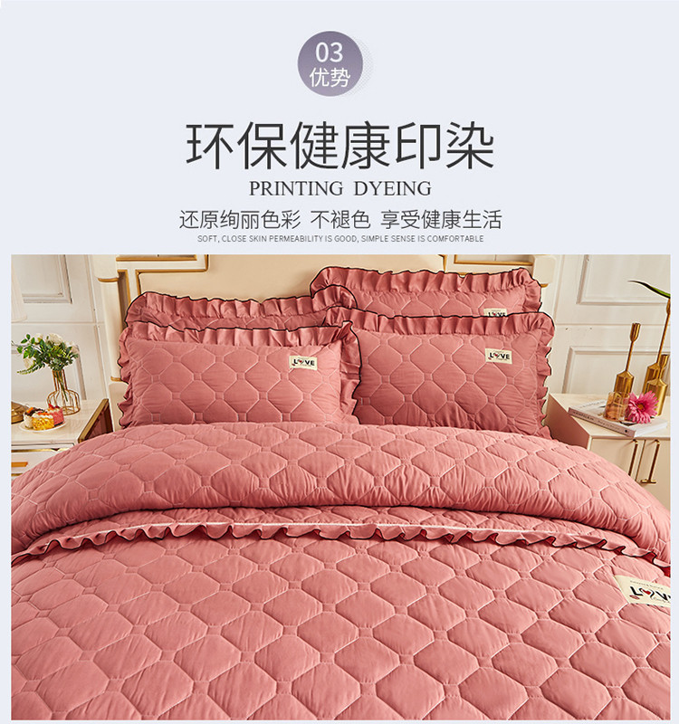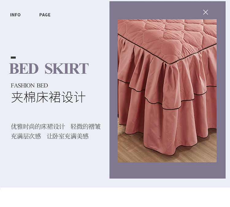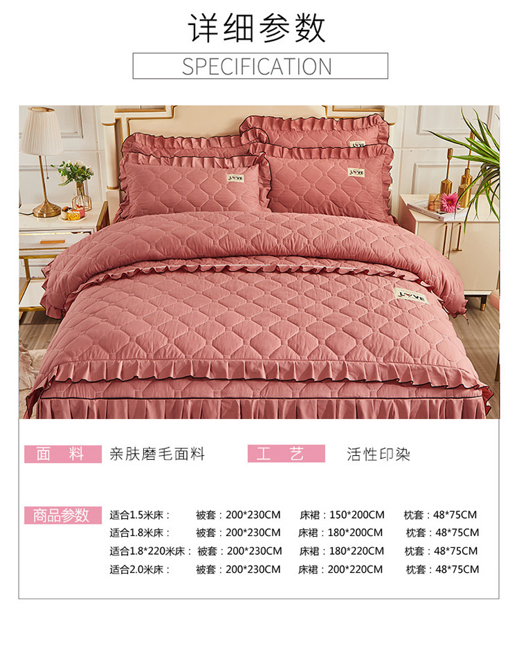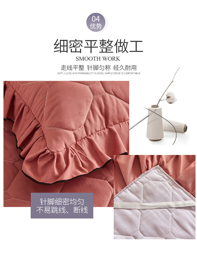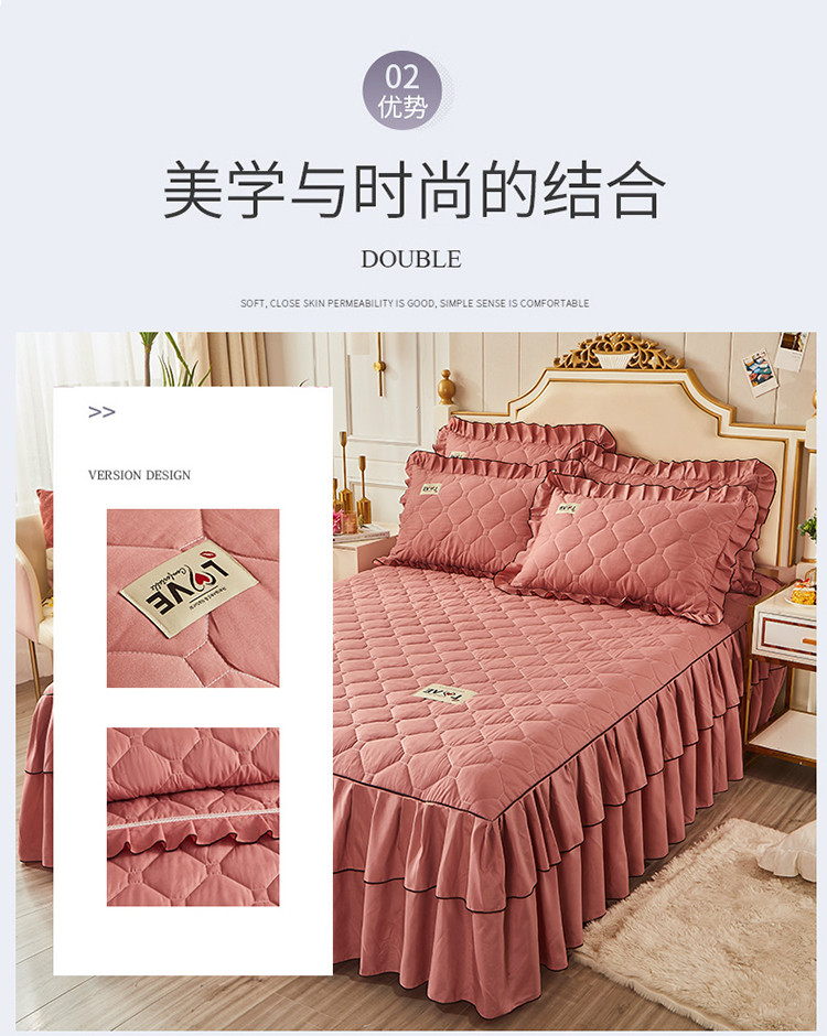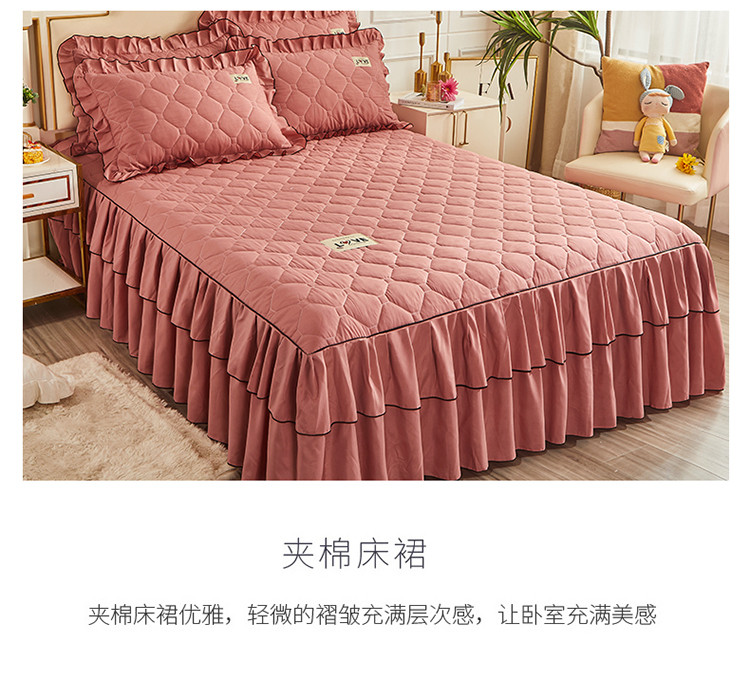 (总)艾裙海 2025新款90克磨毛夹棉绗缝床裙,粉色,大红色,米白色,深灰色,紫色,藏青色,宝蓝色,浅灰色,粉玉色,豆沙红