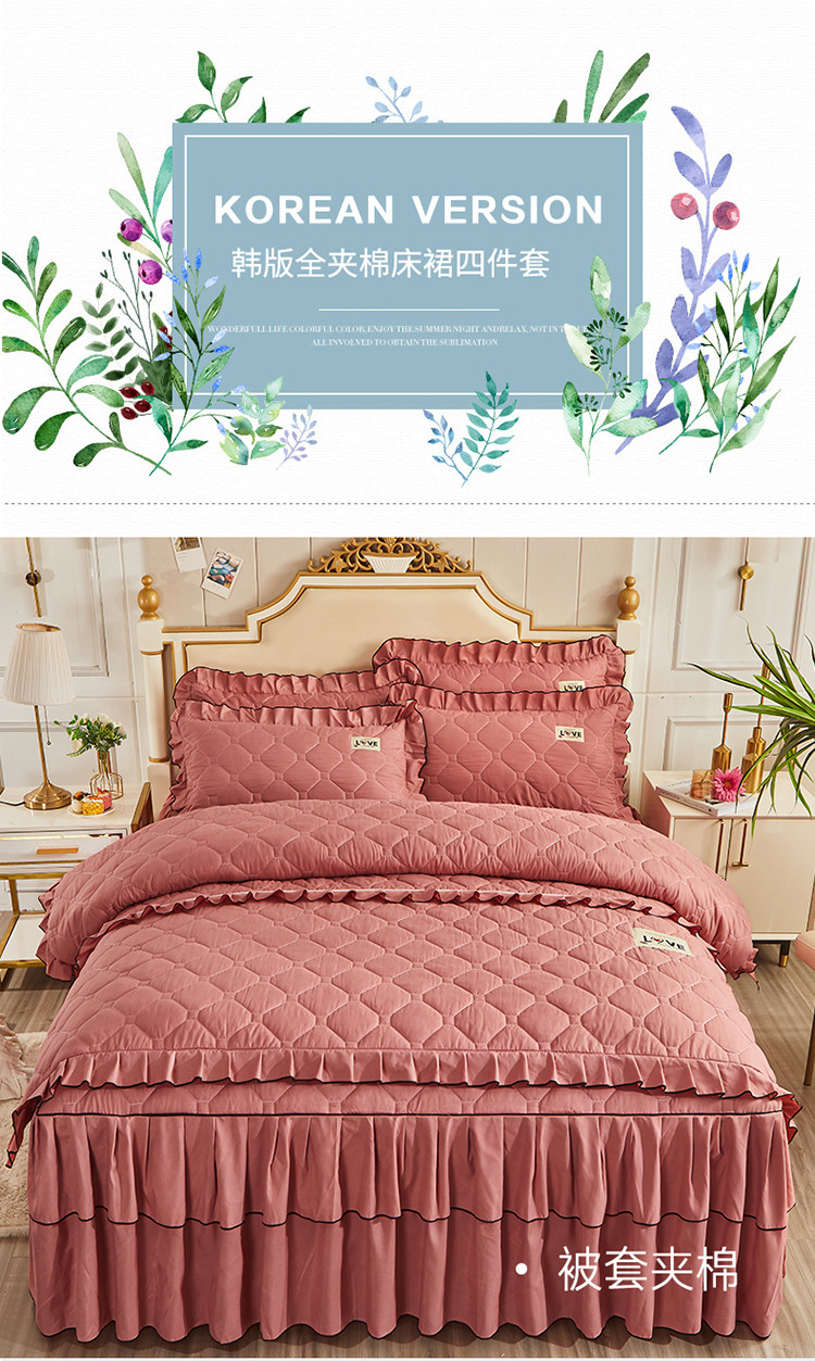 商品名称:艾裙海 2025新款床裙款全夹棉四件套 豆沙红