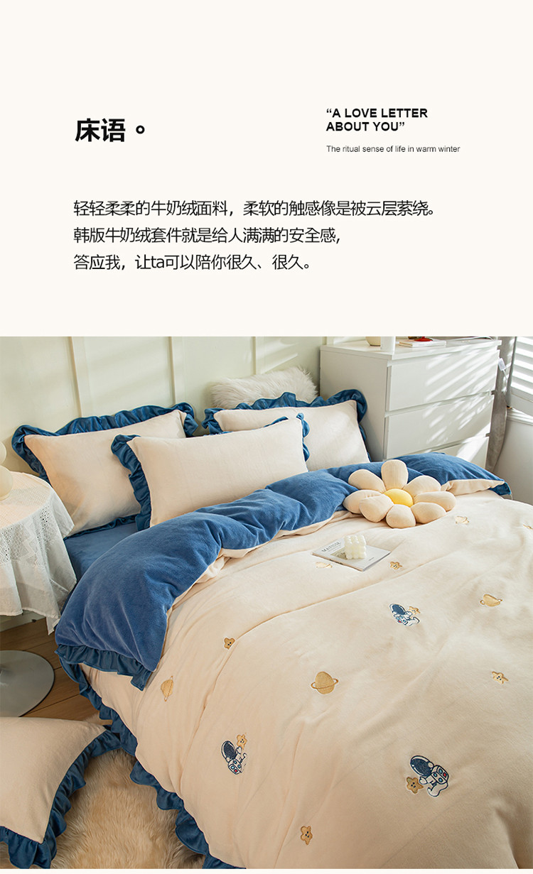 沐辰 2021新款超厚韩版刺绣牛奶绒四件套 宇航员-白