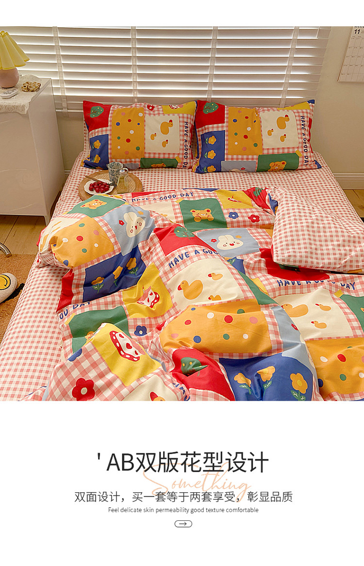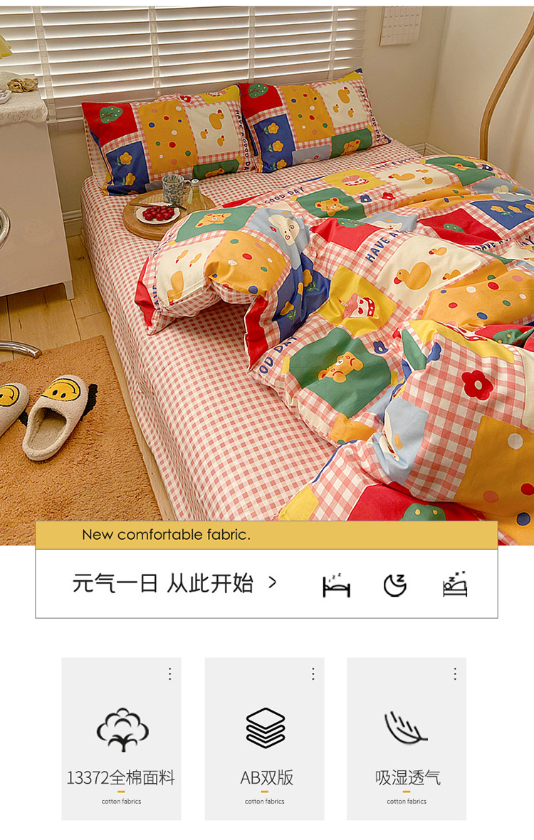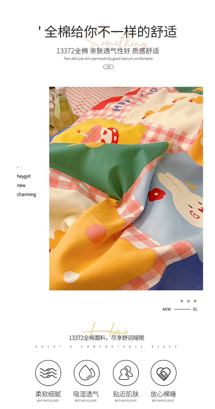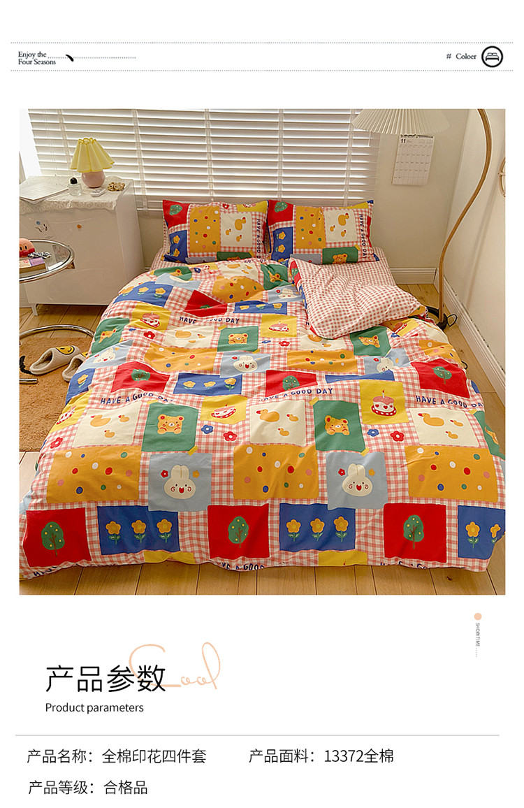 (总)雅居纺家纺 2022新款13070全棉印花四件套,草莓蝴蝶结,俄罗斯方块,黑白蝴蝶结,很嗨兔,可爱小兔,快乐花海,牛奶纹,胖胖鸭,棋盘格,日月争辉,西部恐龙,小情调,小桃桃
