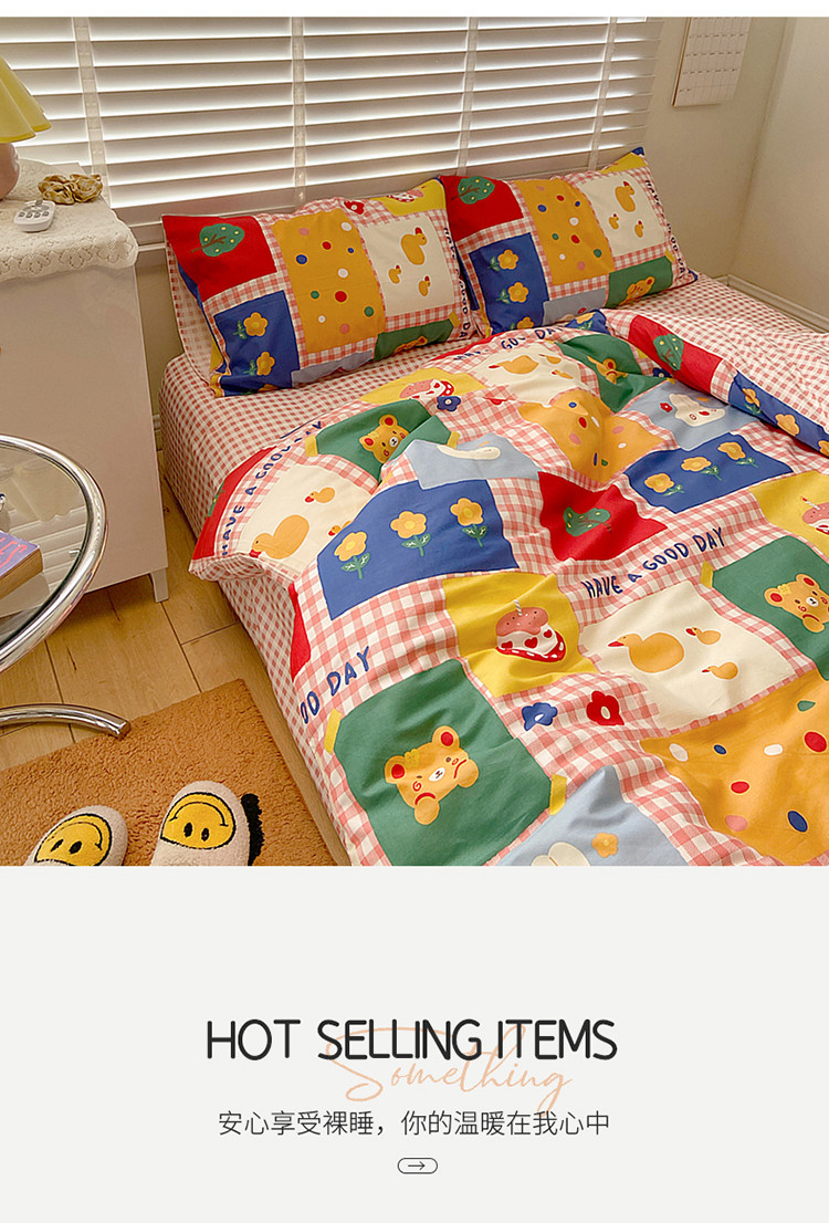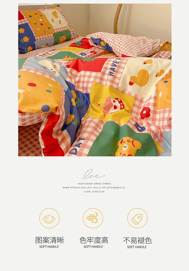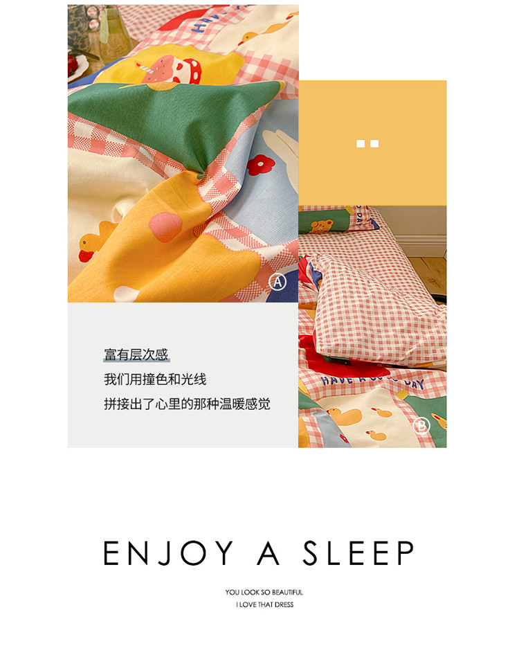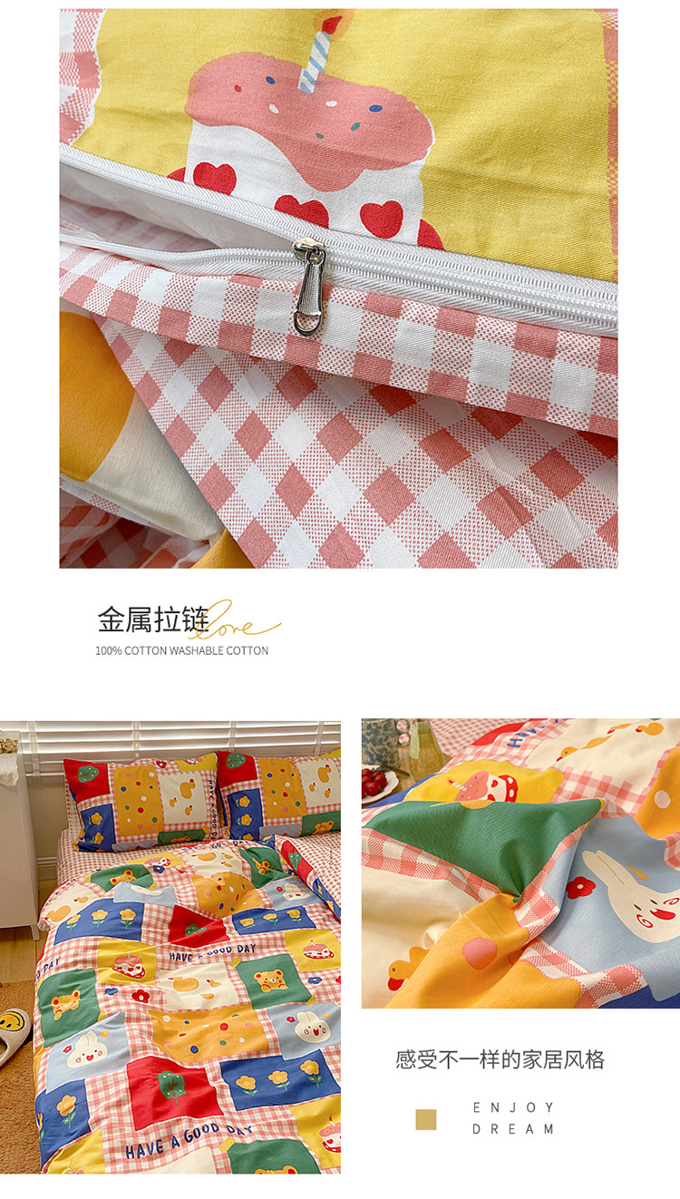 (总)雅居纺家纺 2022新款13070全棉印花四件套,草莓蝴蝶结,俄罗斯方块,黑白蝴蝶结,很嗨兔,可爱小兔,快乐花海,牛奶纹,胖胖鸭,棋盘格,日月争辉,西部恐龙,小情调,小桃桃