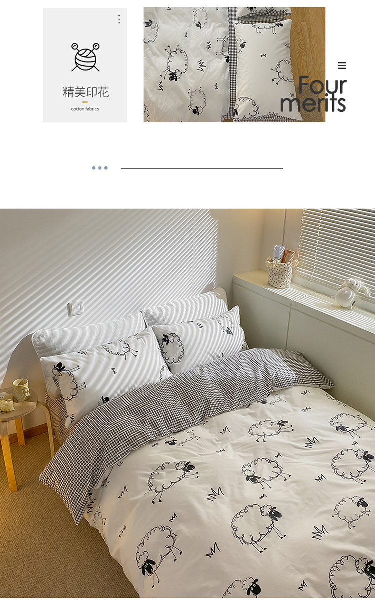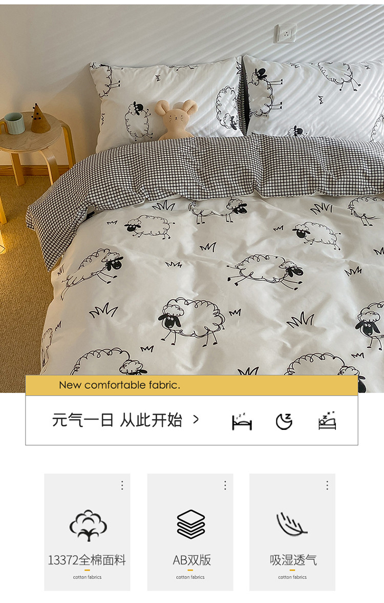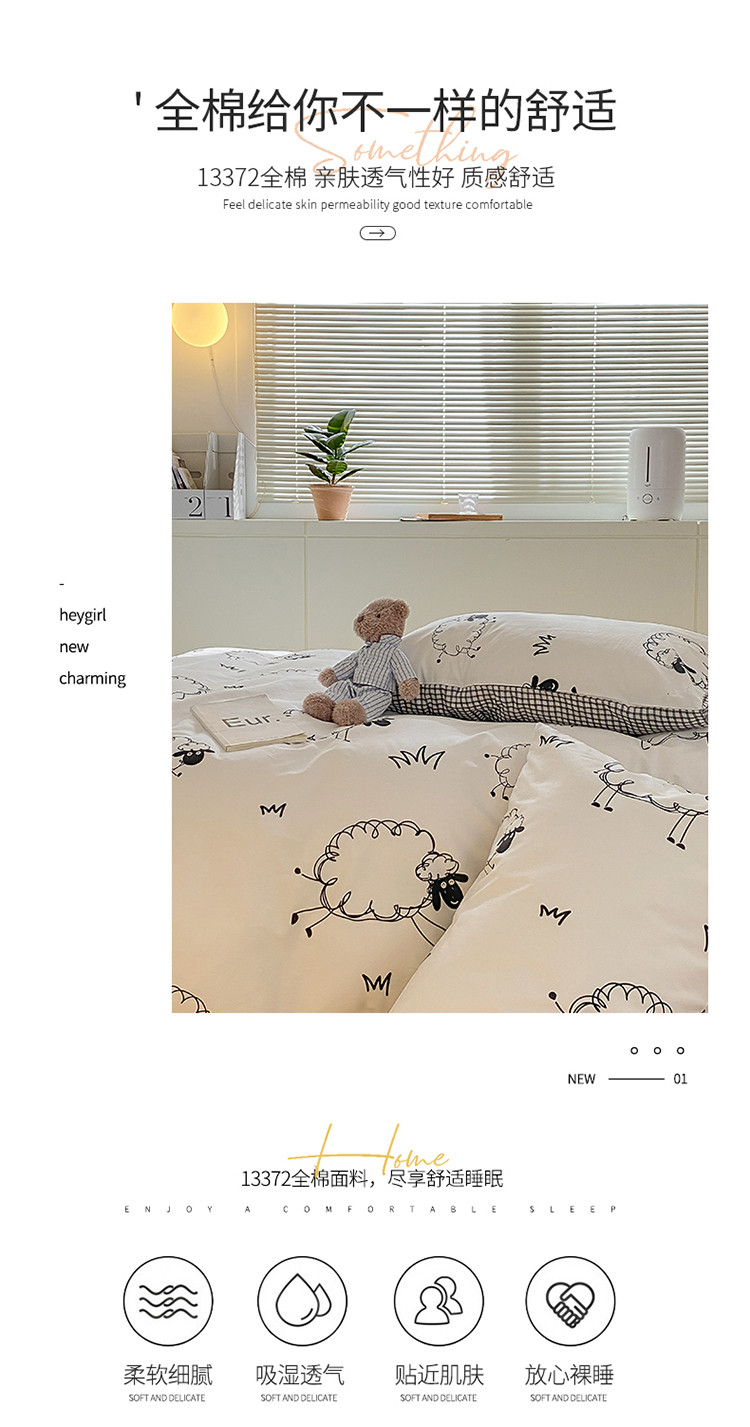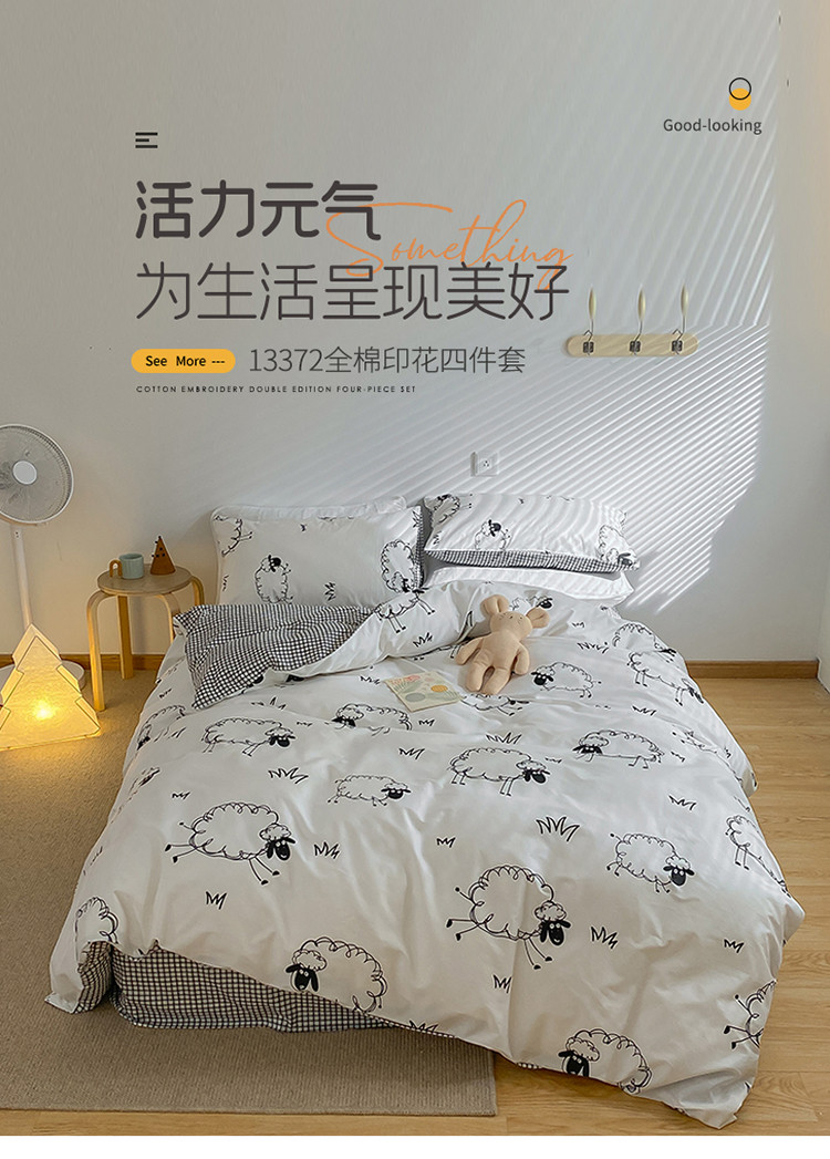 商品名称:雅居纺家纺 2022新款13070全棉四件套 白羊