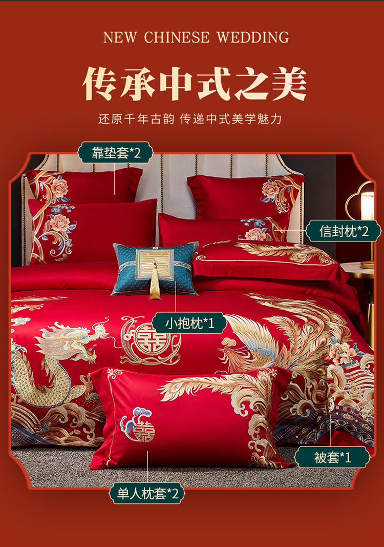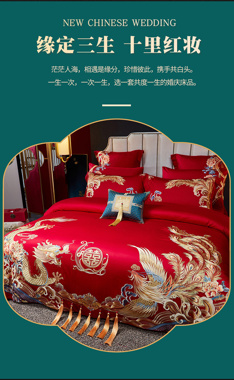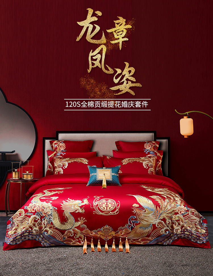 当前位置: 91家纺网 > 商品网购 > 床品套件 > 四件套 > 婚庆四件套 > 红番天 热卖款1全棉贡缎提花婚庆套件 龙章凤姿