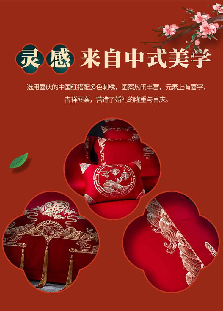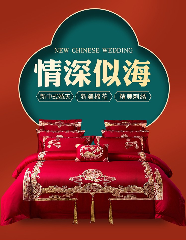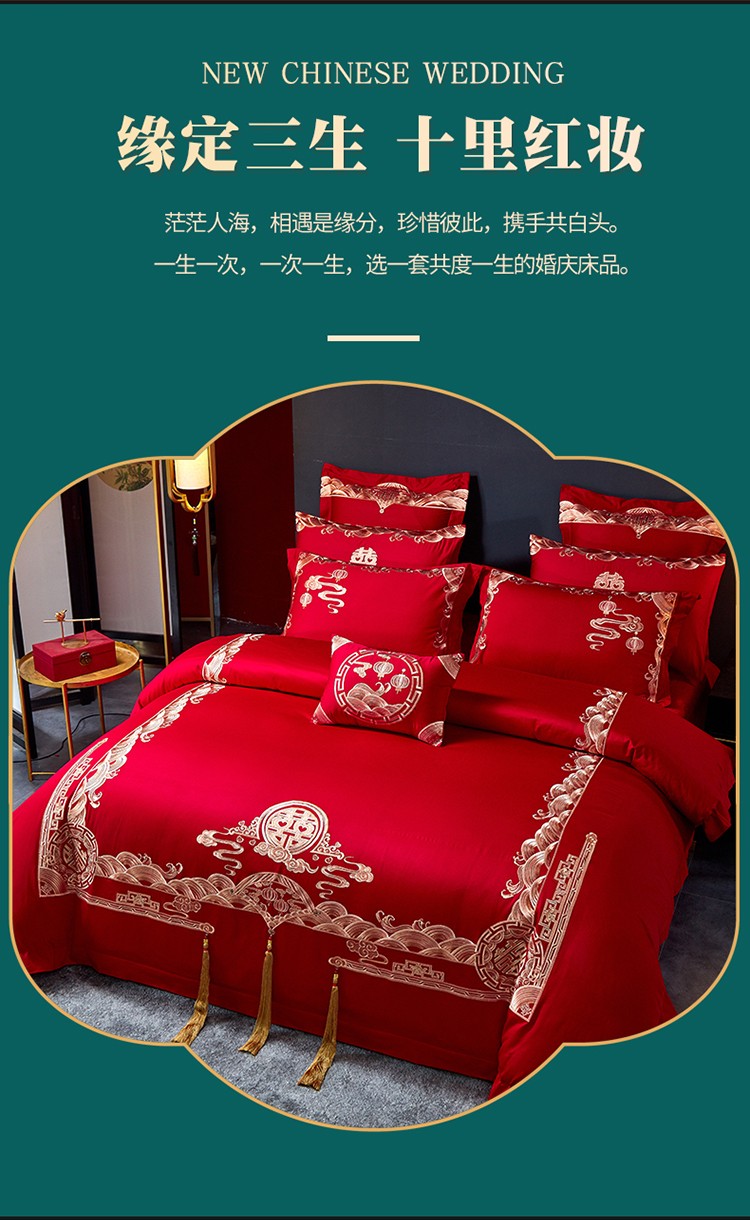当前位置: 91家纺网 > 商品网购 > 床品套件 > 四件套 > 婚庆四件套 > 红番天 热卖款全棉婚庆刺绣四件套 情深似海金