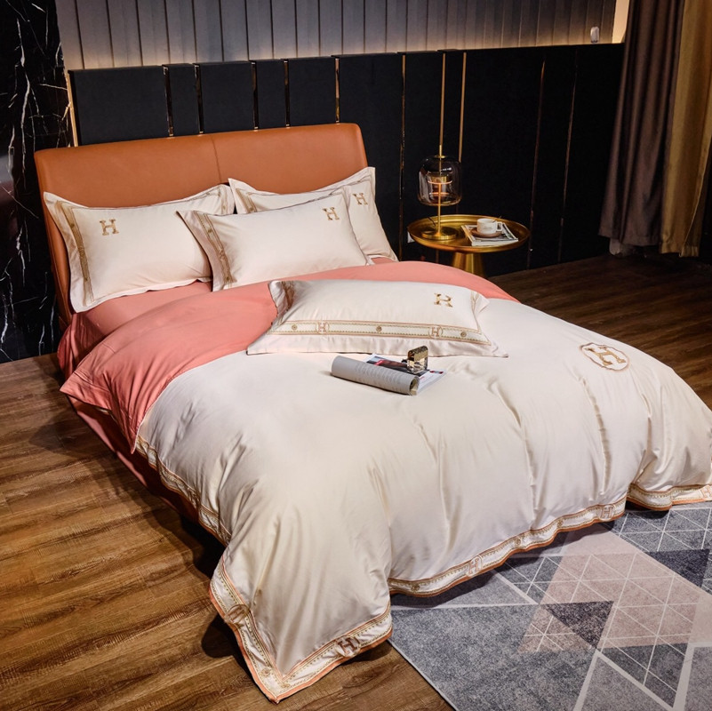 总玖玖爱家纺 纯棉100支贡缎长绒棉刺绣被套三件套四件套加大四件套,白色,高级灰,卡其,蓝灰,绿色,浅桔,深蓝,紫豆沙