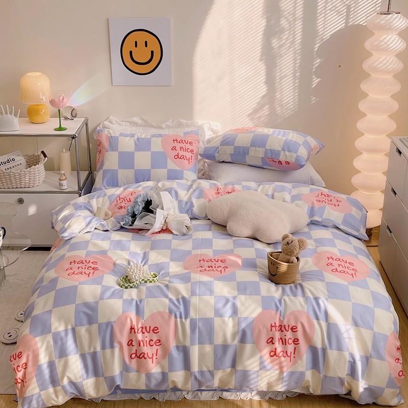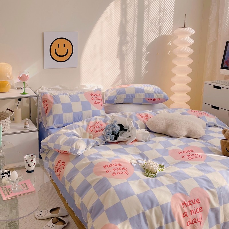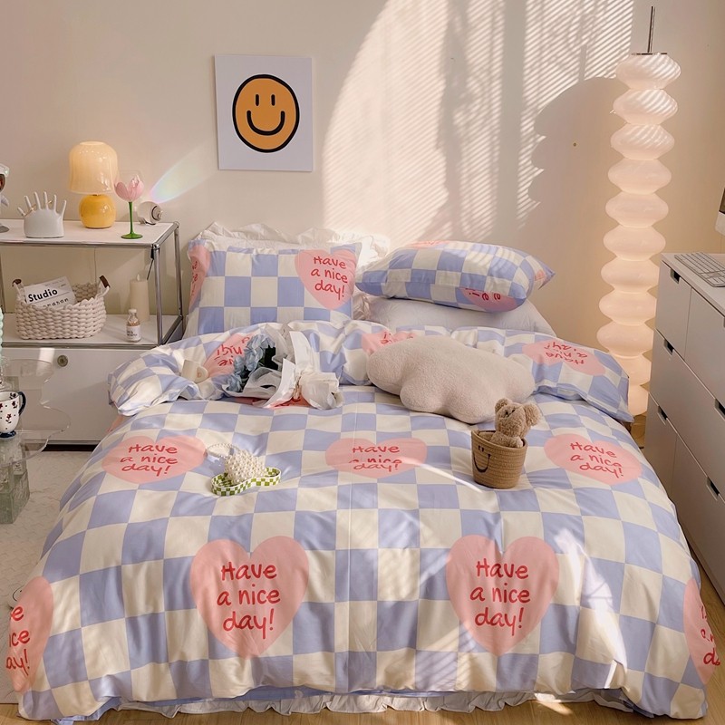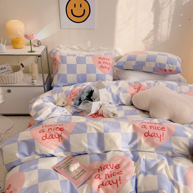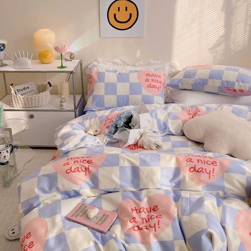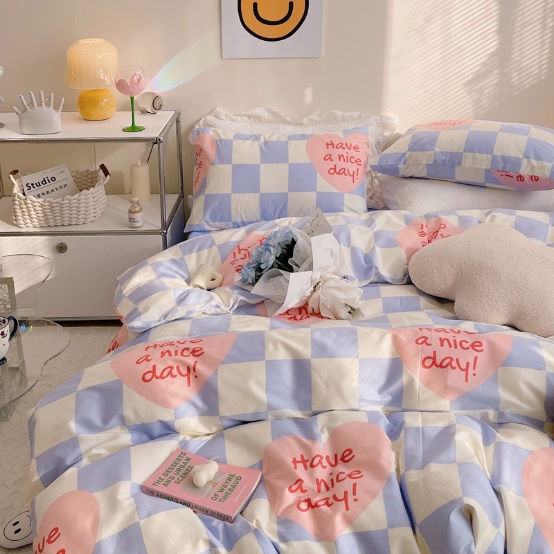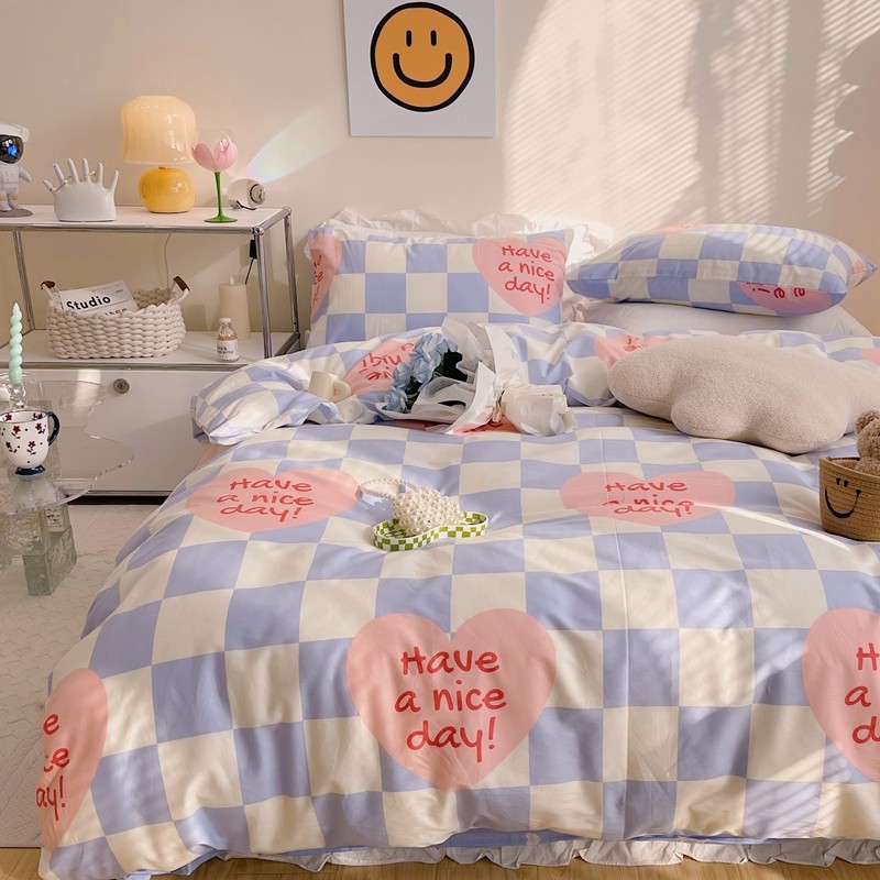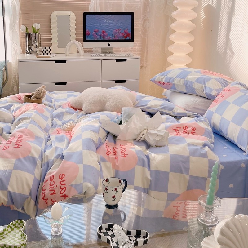 顾里 2022新款13372全棉四件套-小清新 方块爱心蓝