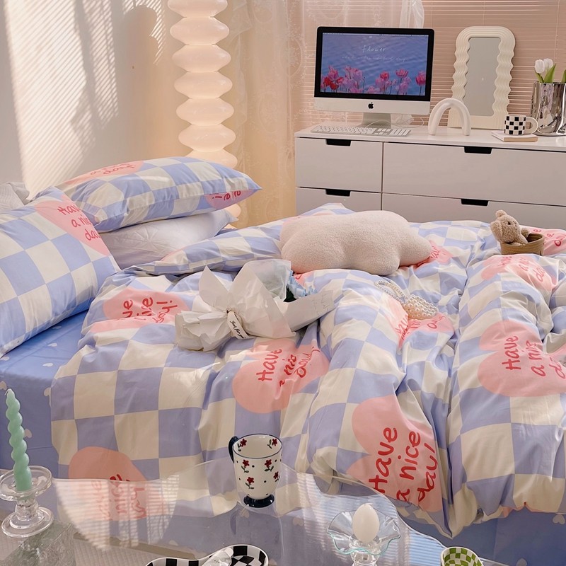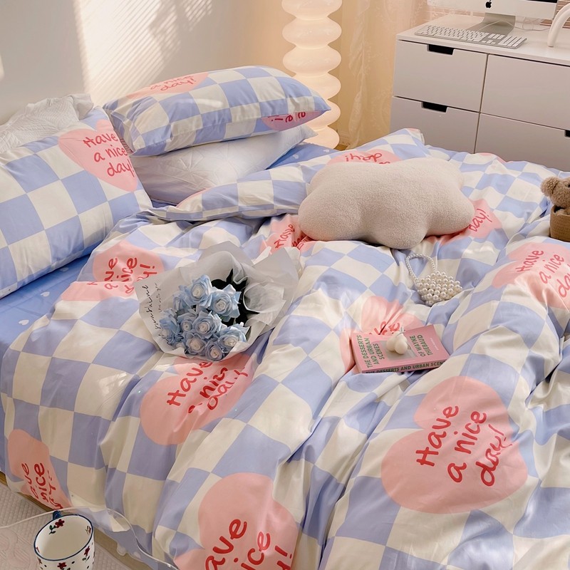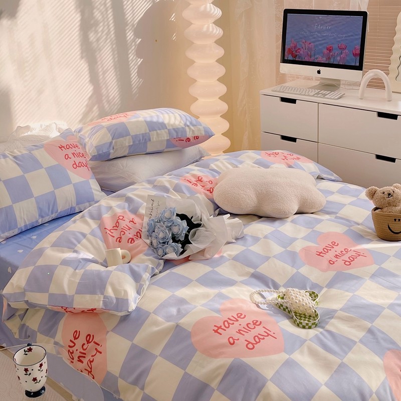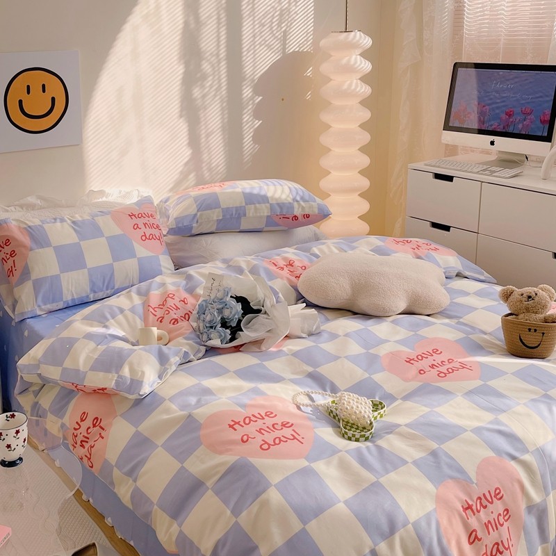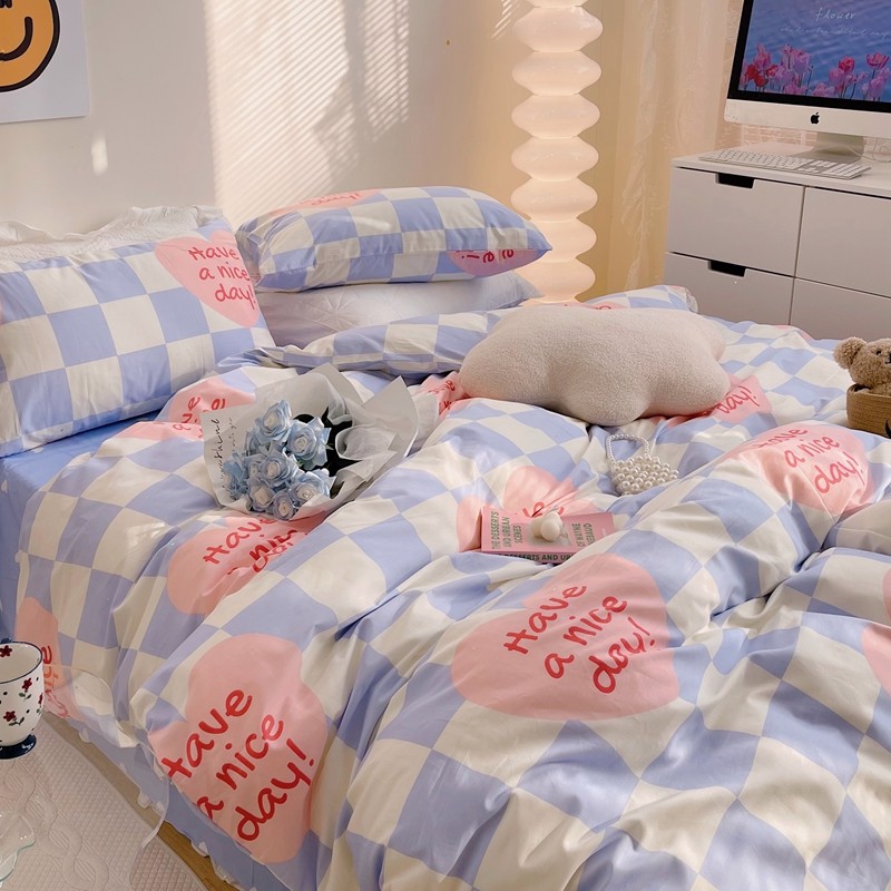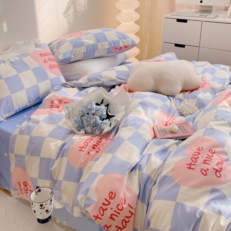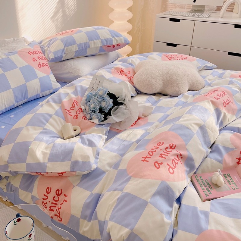 商品名称:顾里 2022新款13372全棉四件套-小清新 方块爱心蓝