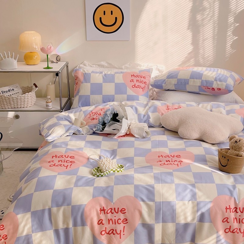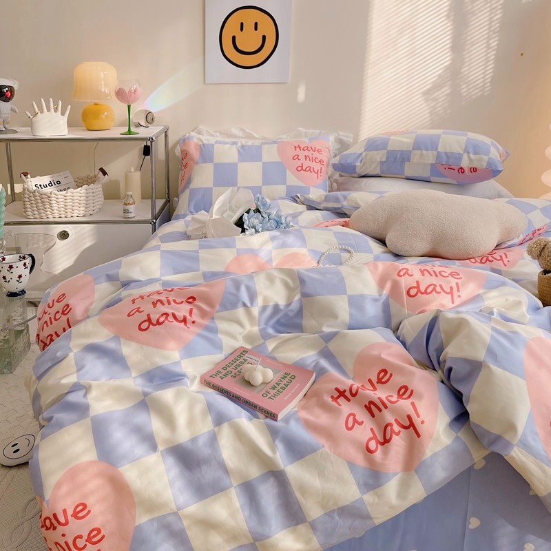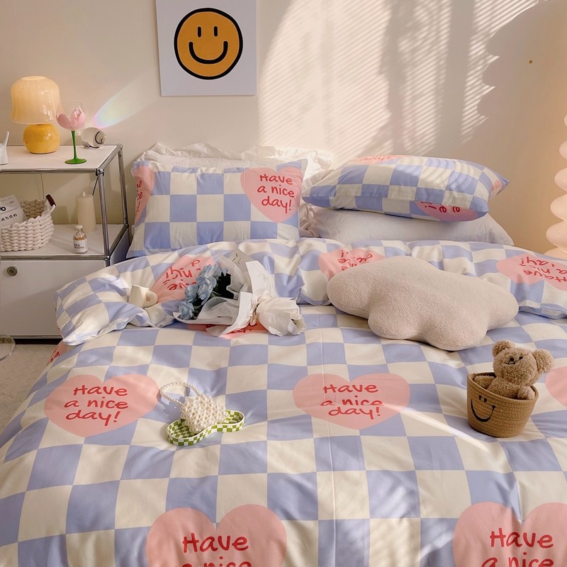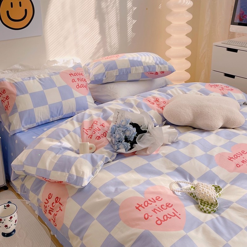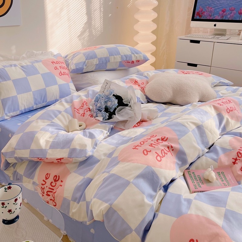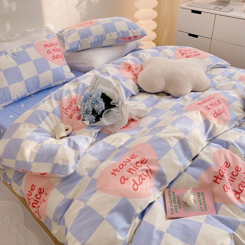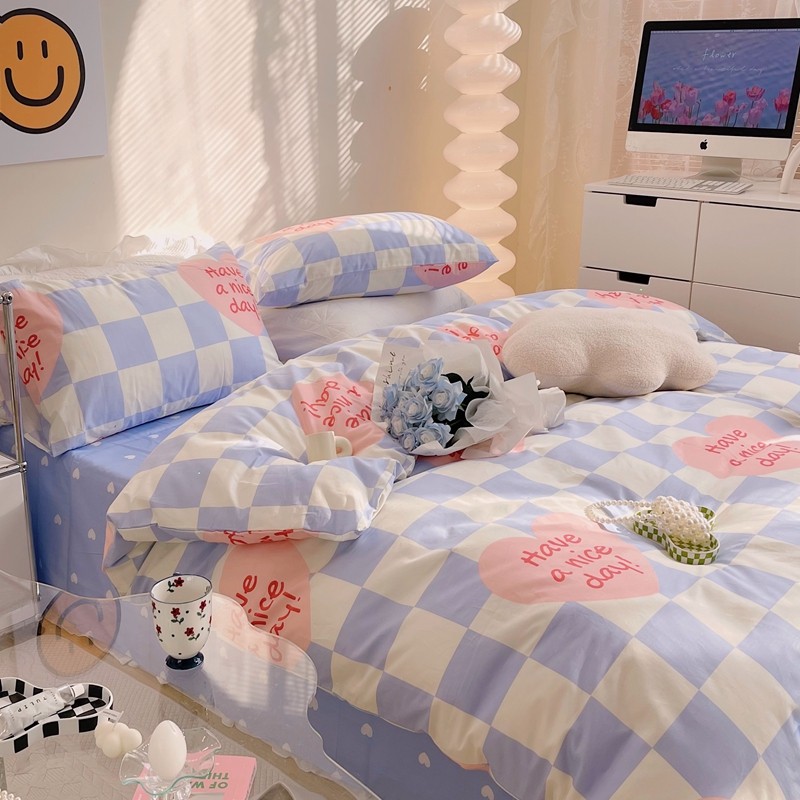 商品名称:顾里 2022新款13372全棉四件套-小清新 方块爱心蓝