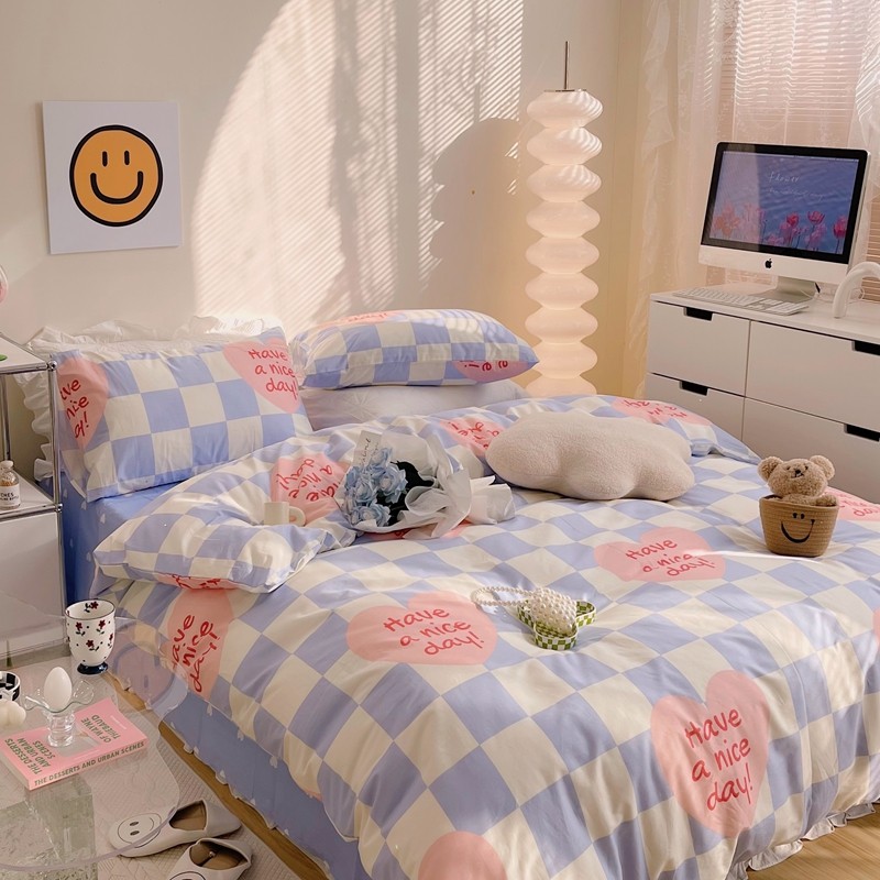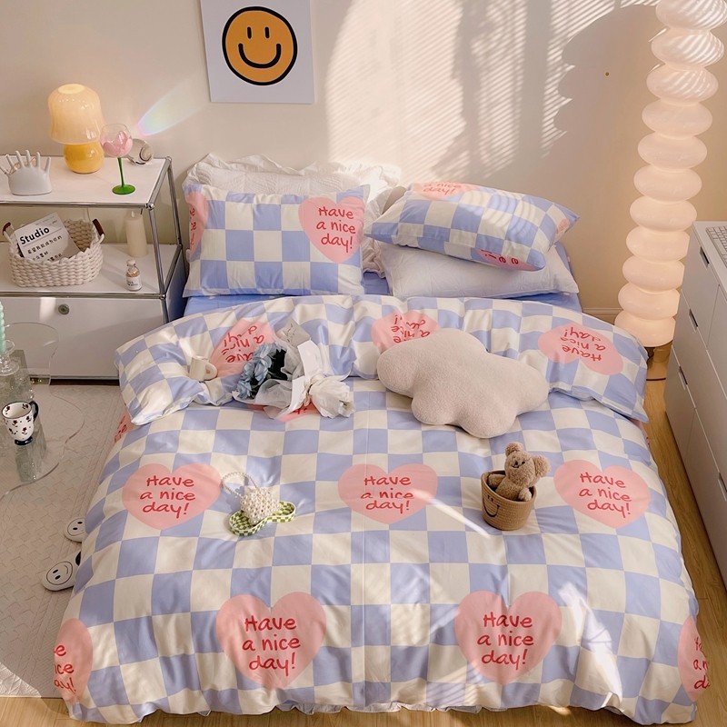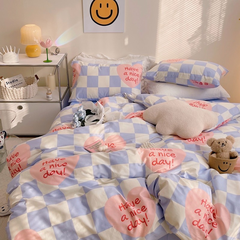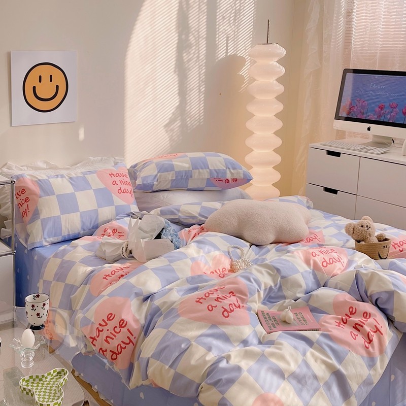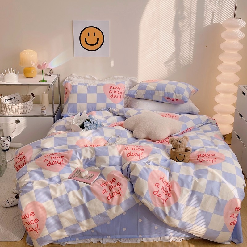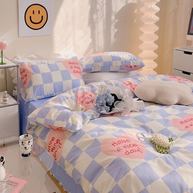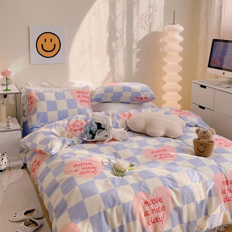 商品名称:顾里 2022新款13372全棉四件套-小清新 方块爱心蓝