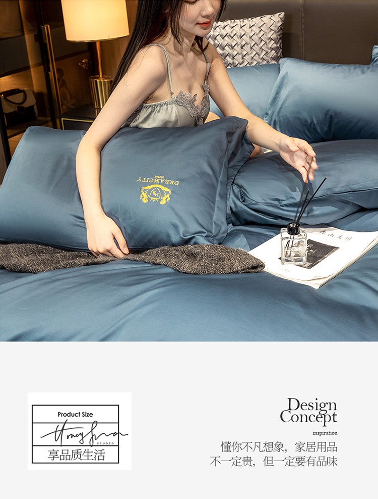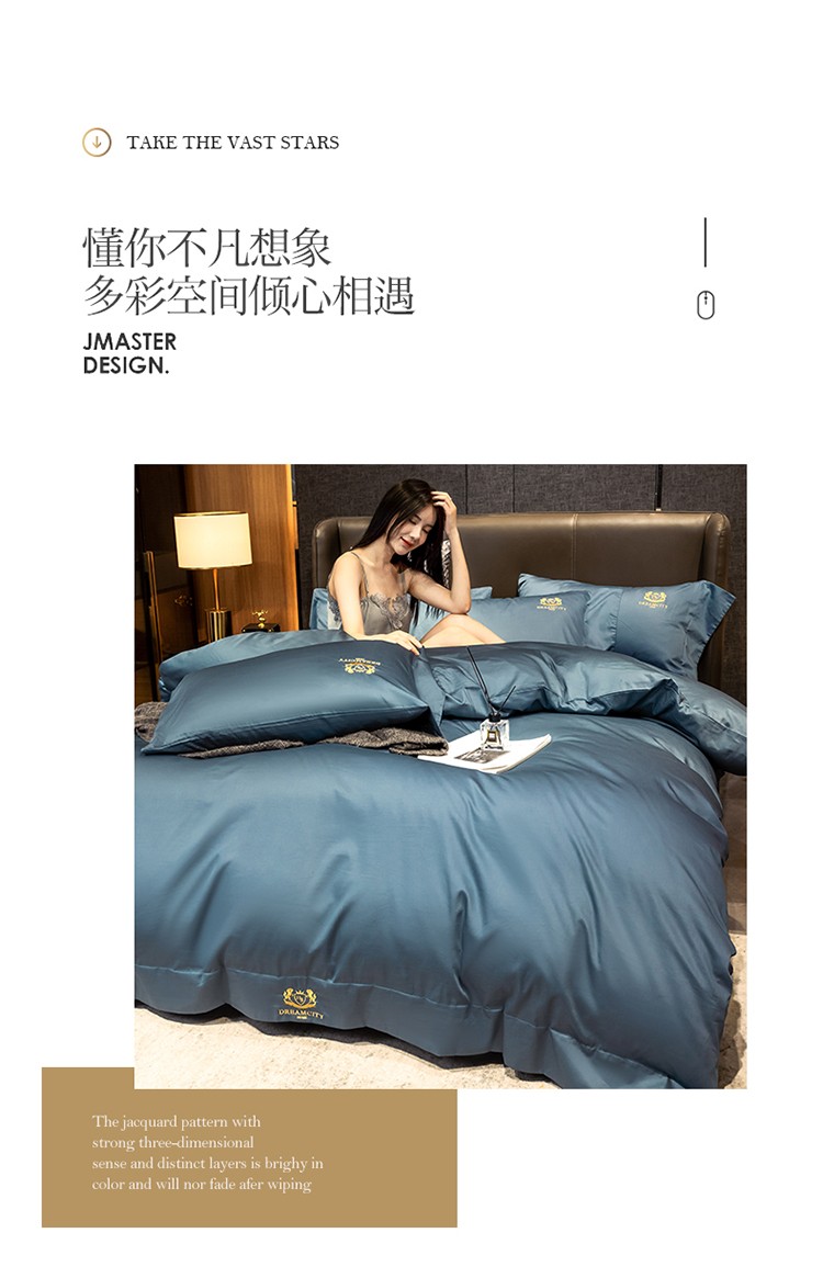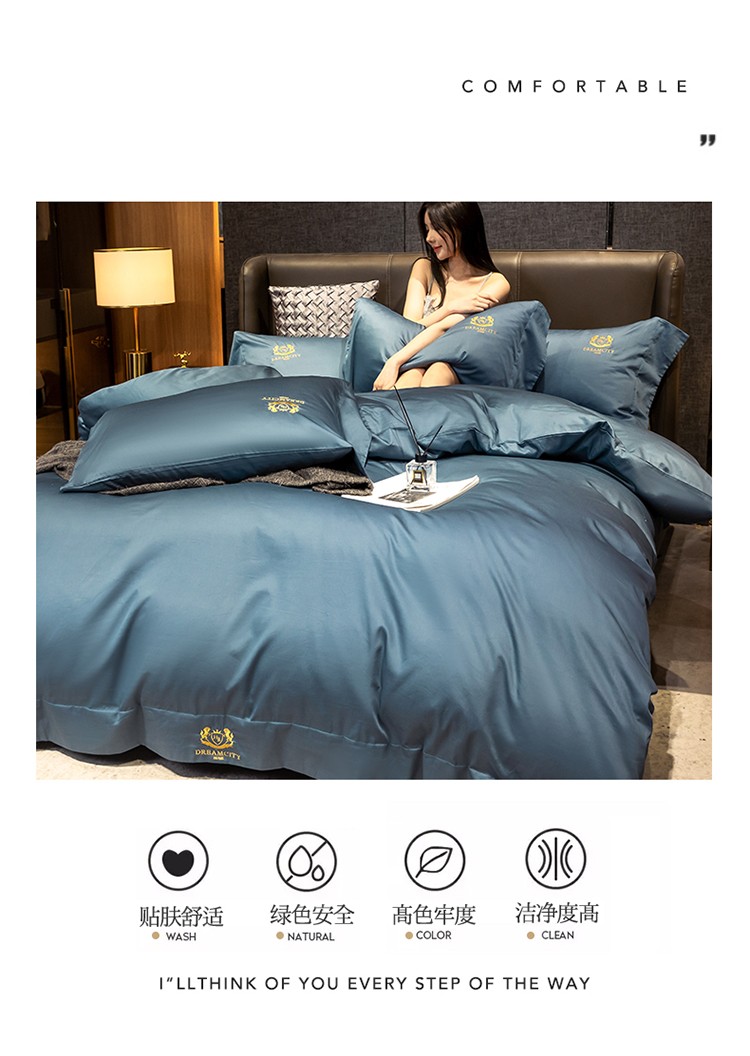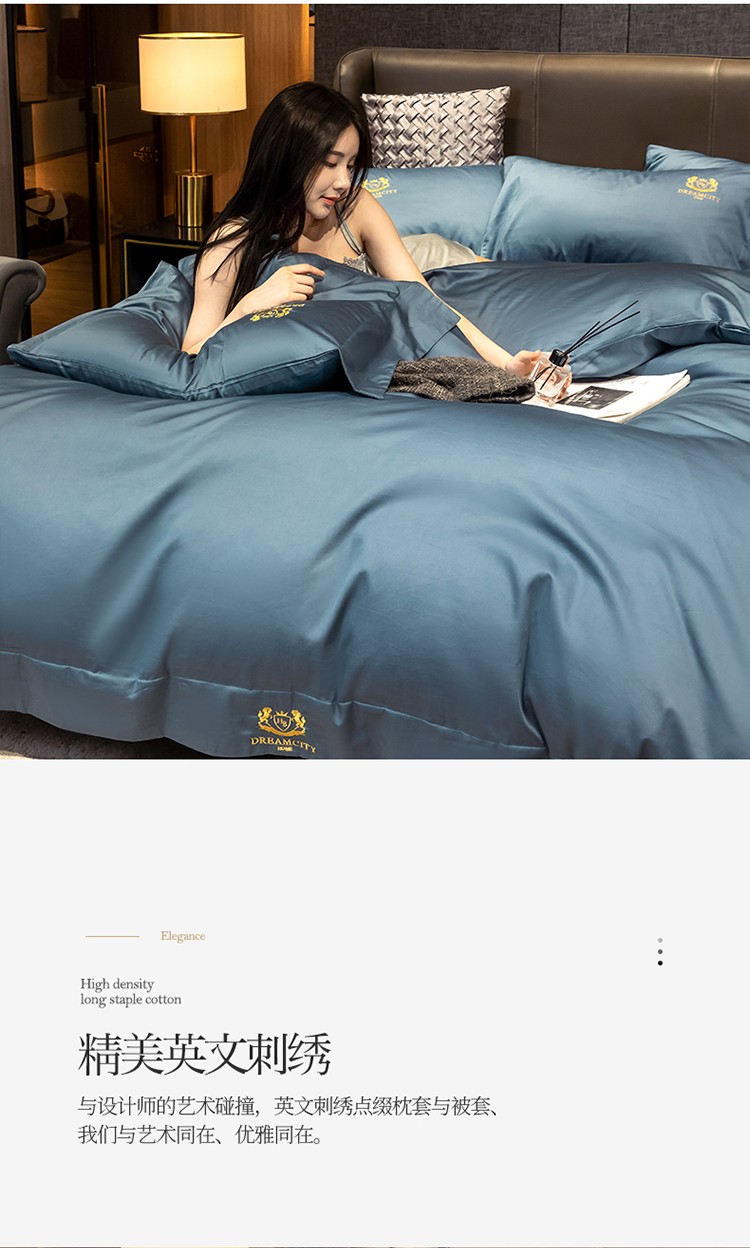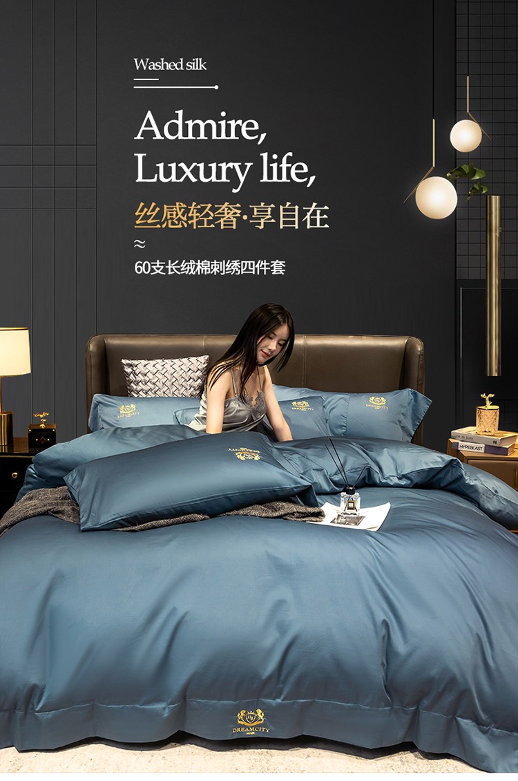 蓝巢家纺 2022新款60支长绒棉四件套 皇家-月影蓝