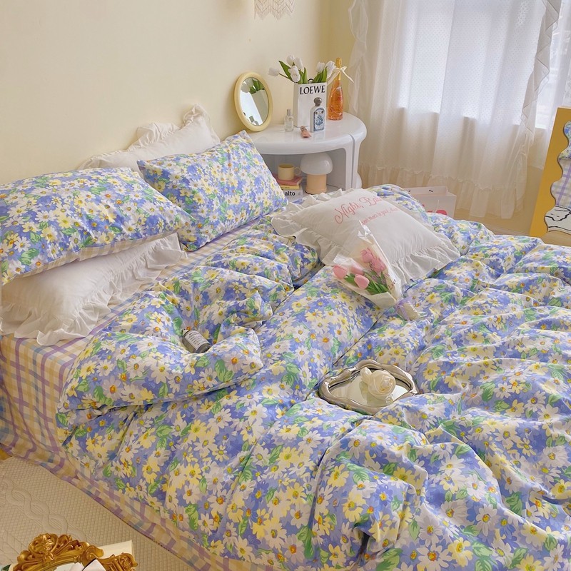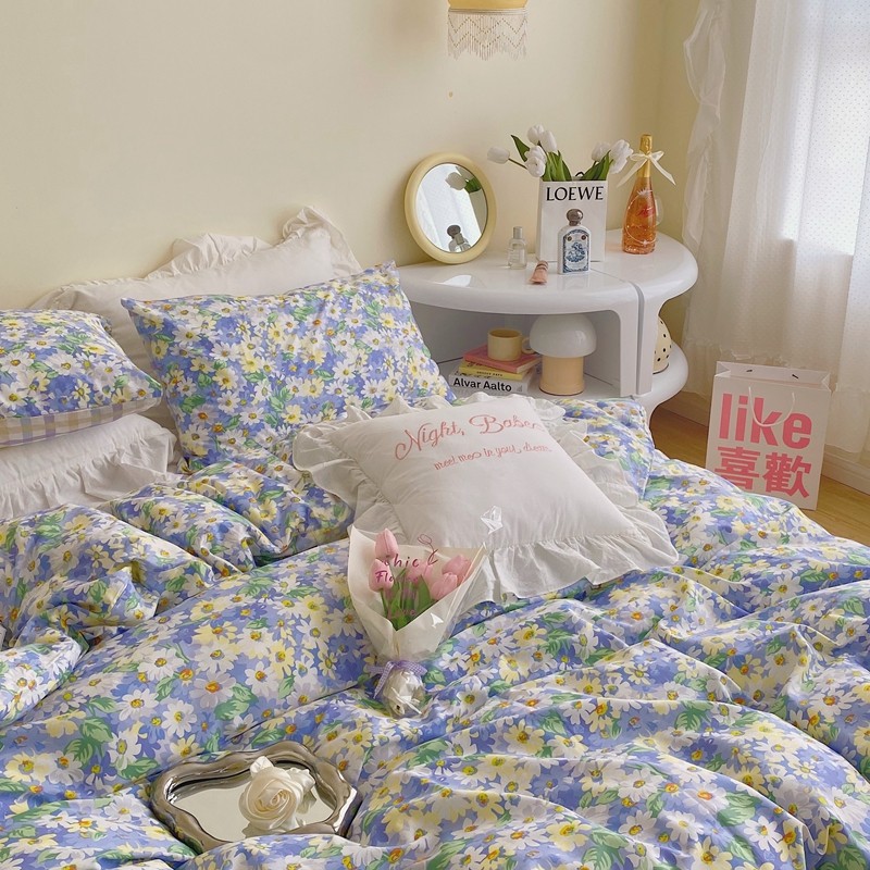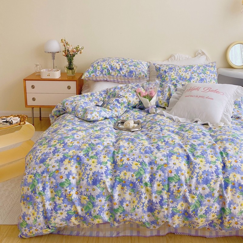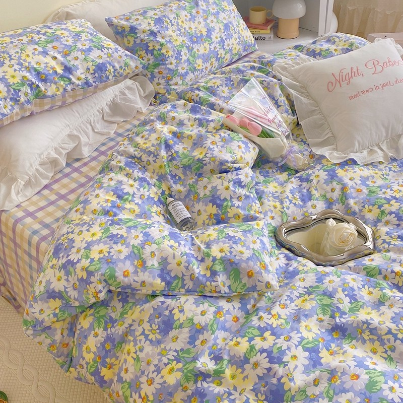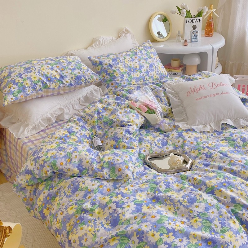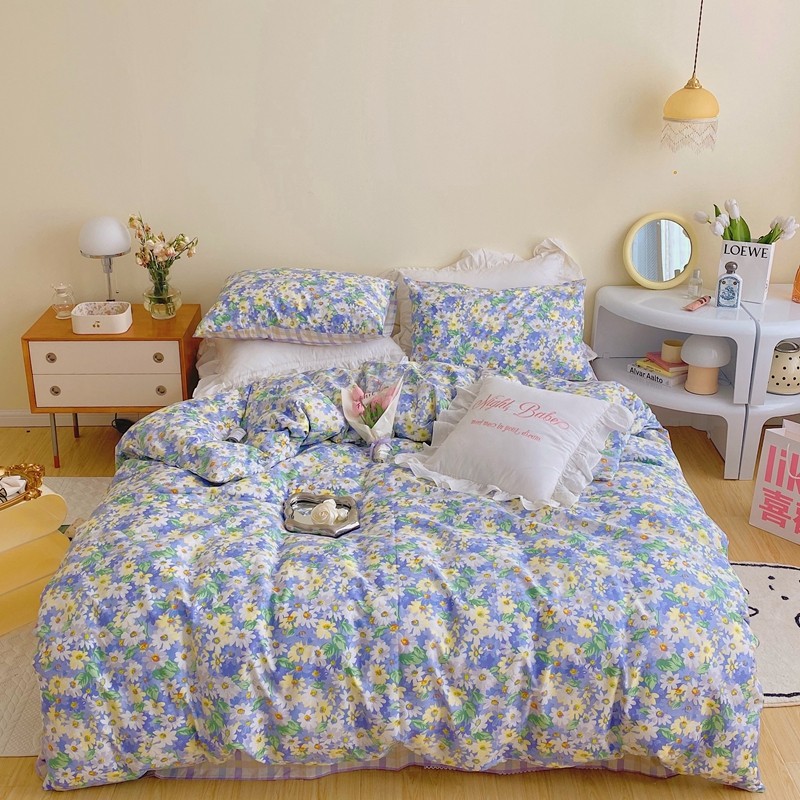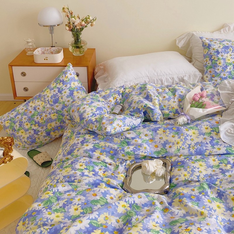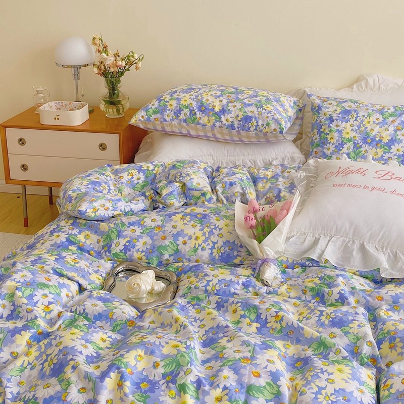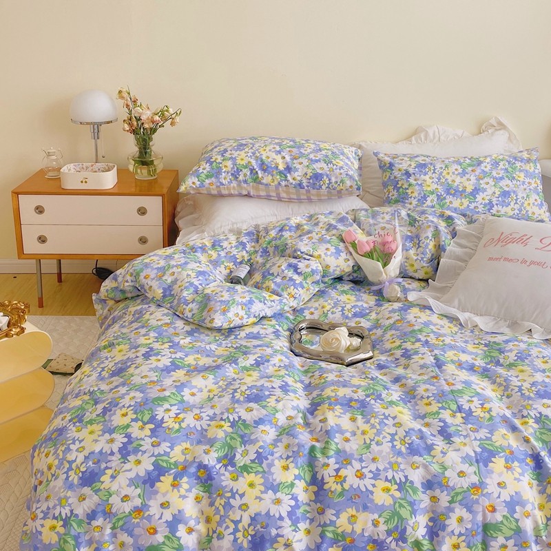顾里 2022新款浪漫碎花全棉四件套 油画碎花蓝