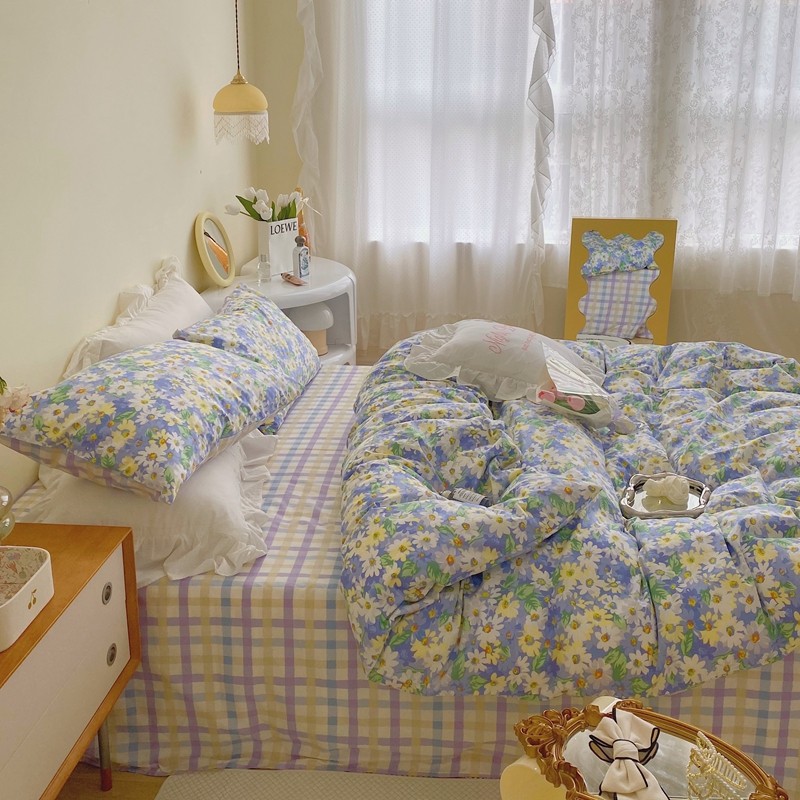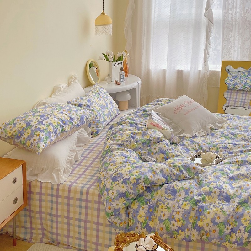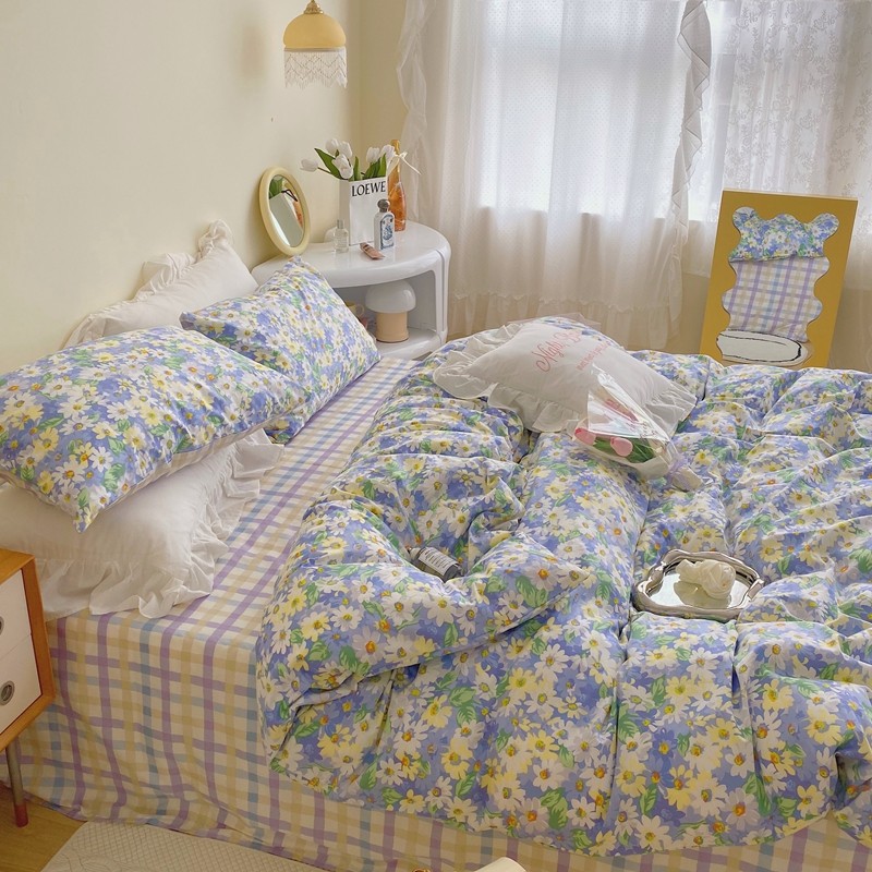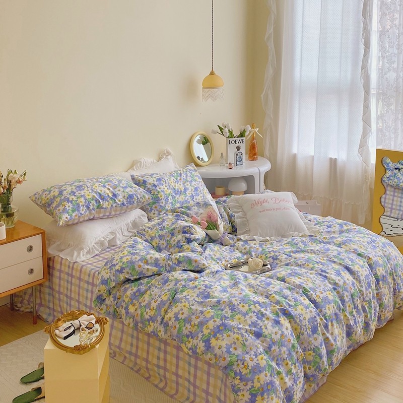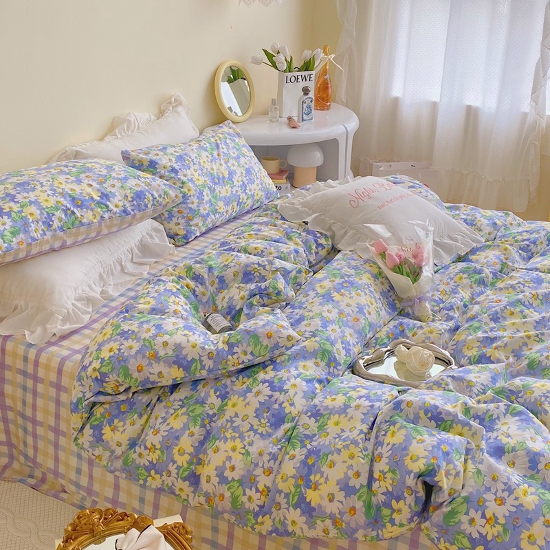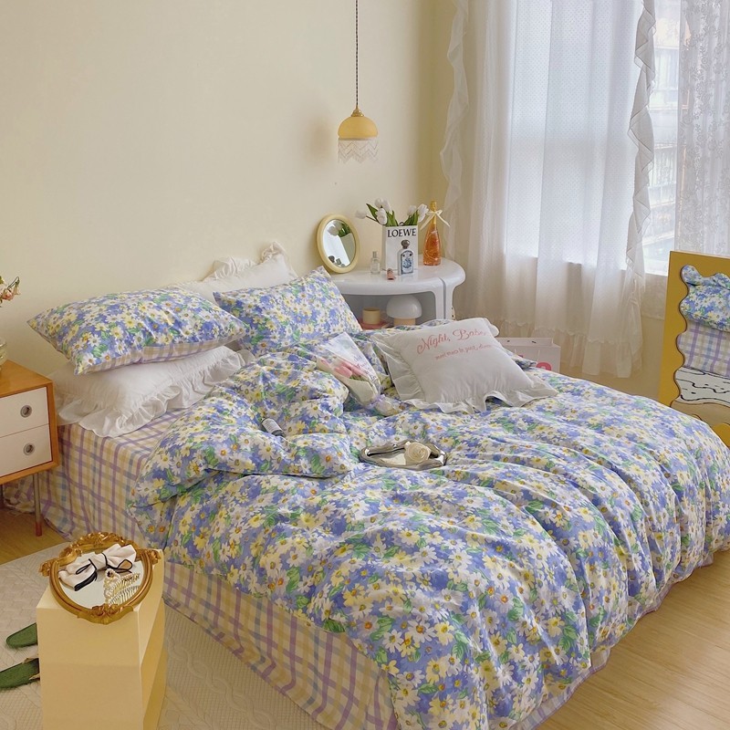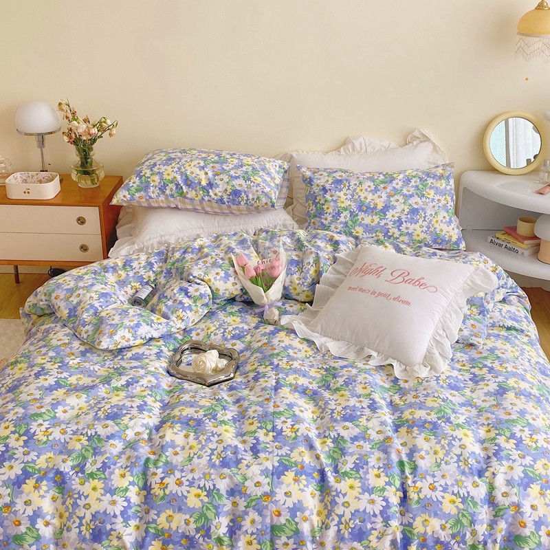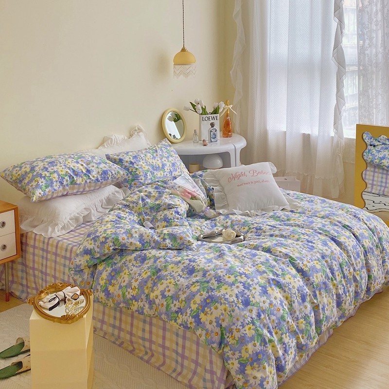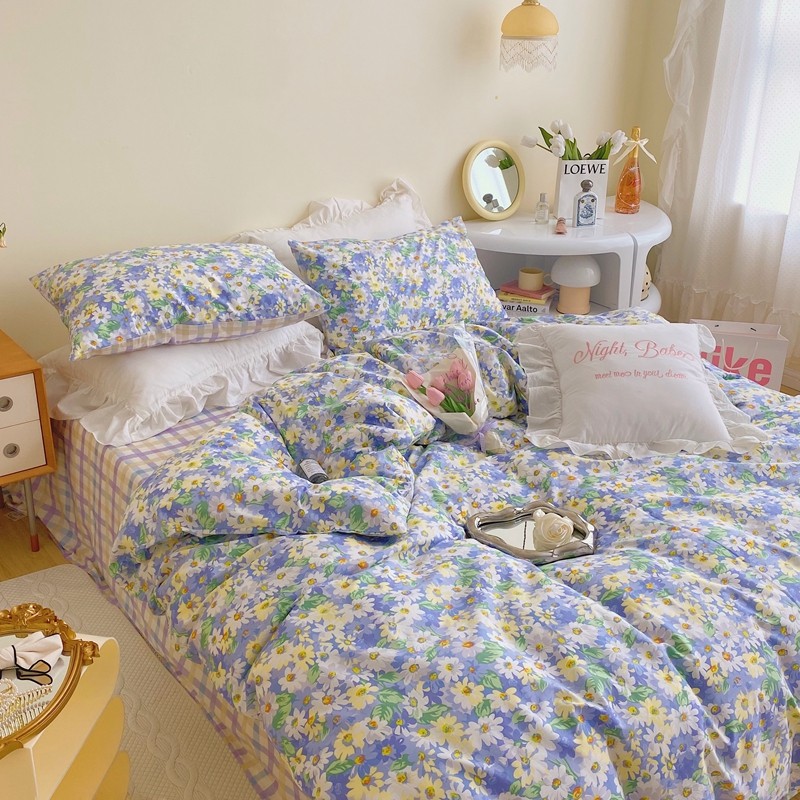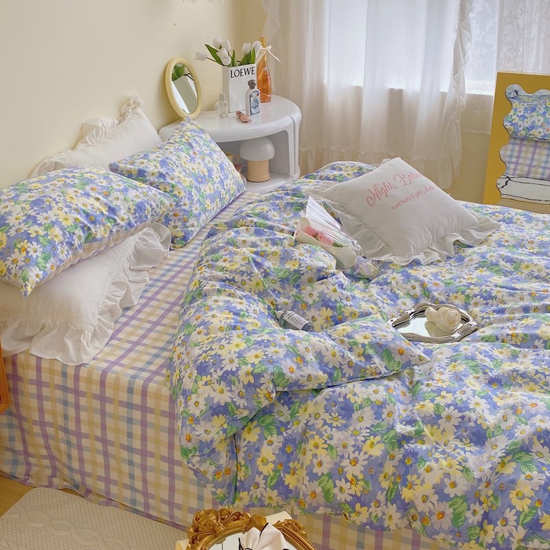 顾里 2022新款浪漫碎花全棉四件套 油画碎花蓝