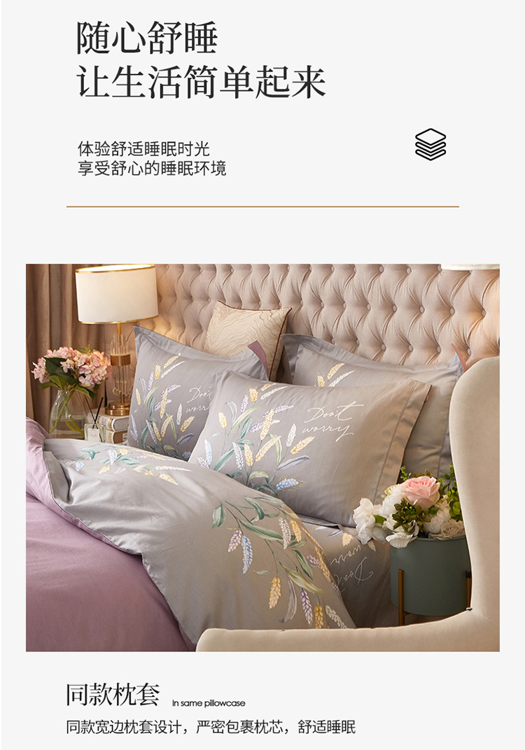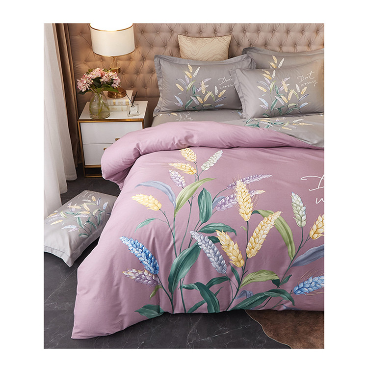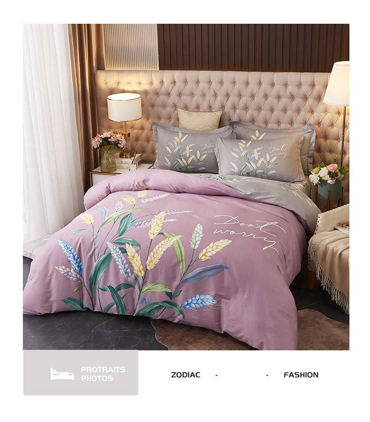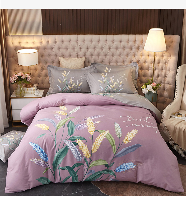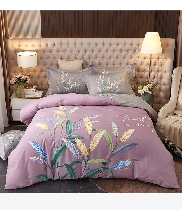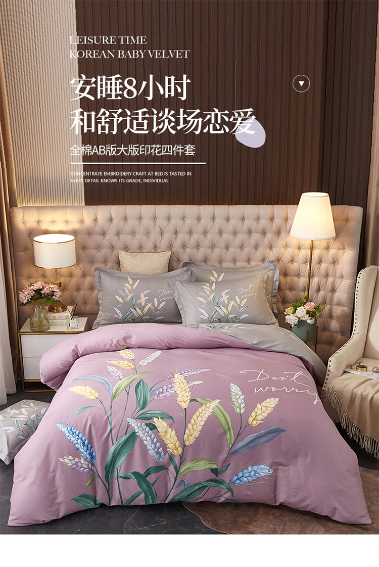 商品名称:金纱玉纺2022新全棉13372大版印花四件套 沁香麦园-紫