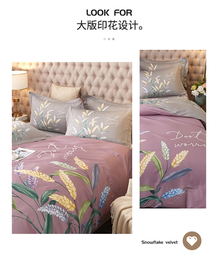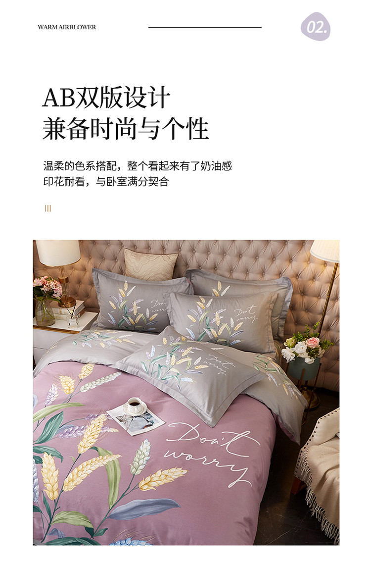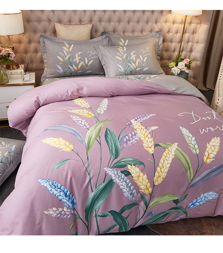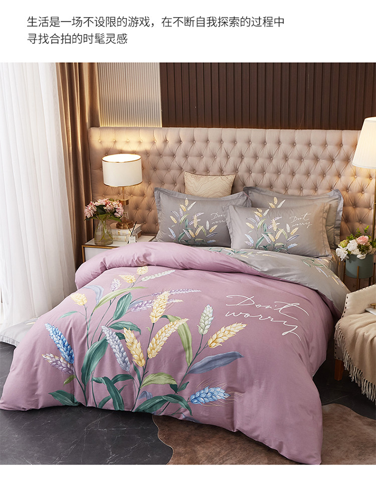 金纱玉纺2022新全棉13372大版印花四件套 沁香麦园-紫