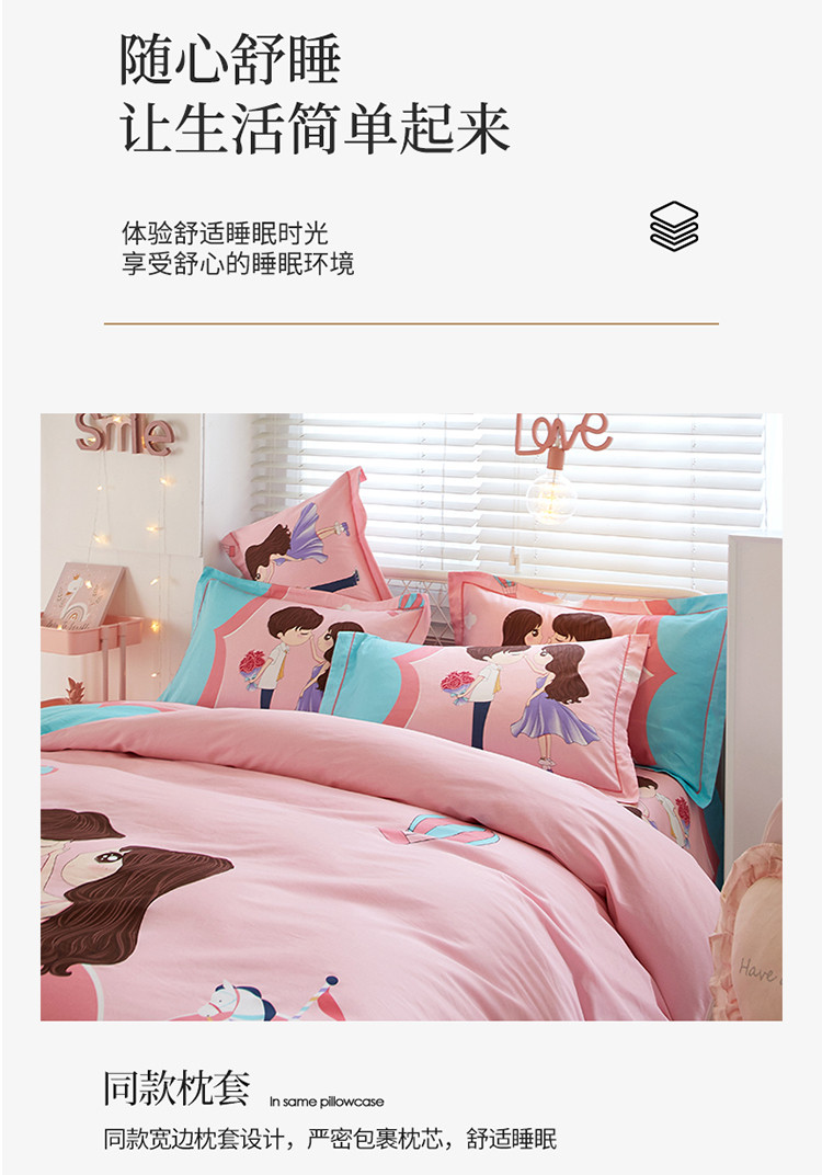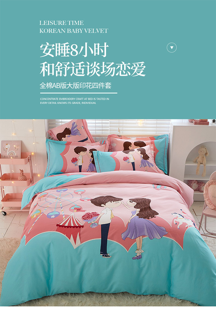 金纱玉纺 2022新款全棉13372大版印花四件套 甜蜜爱侣