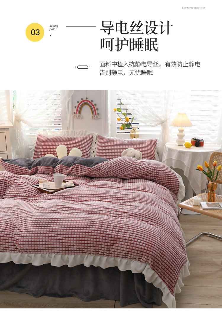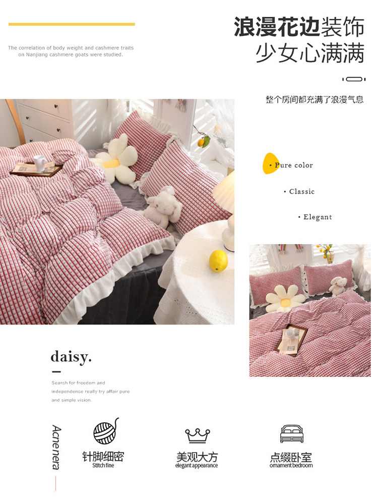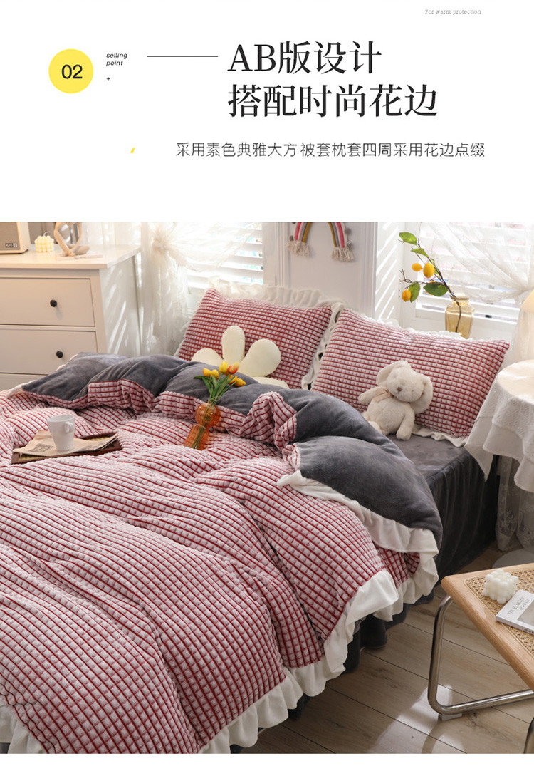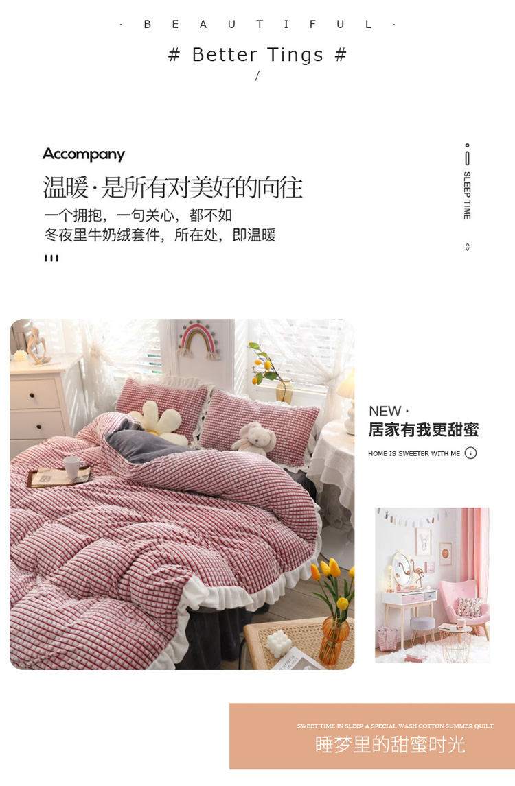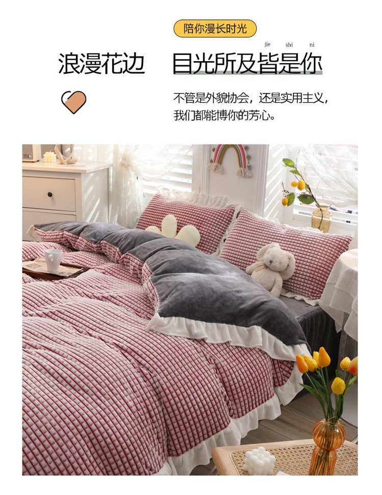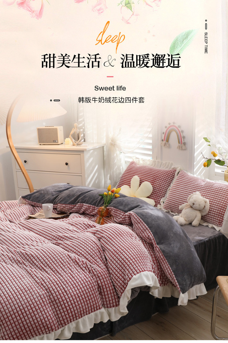 当前位置: 91家纺网 > 商品网购 > 床品套件 > 四件套 > 牛奶绒四件套 > 慕澄 2022新款牛奶绒剪花荷叶边四件套实拍图 桃桃红