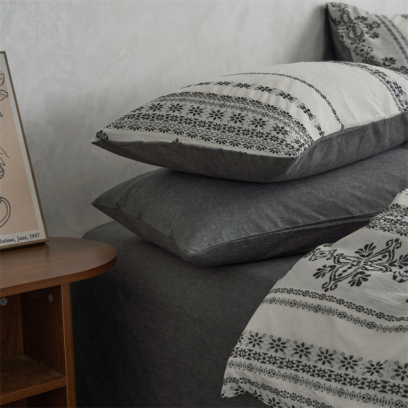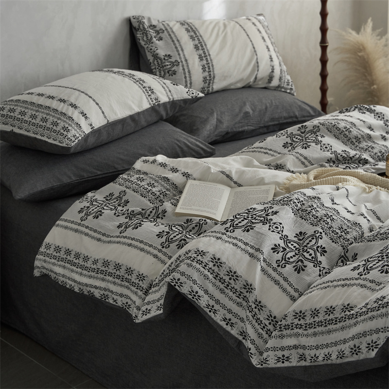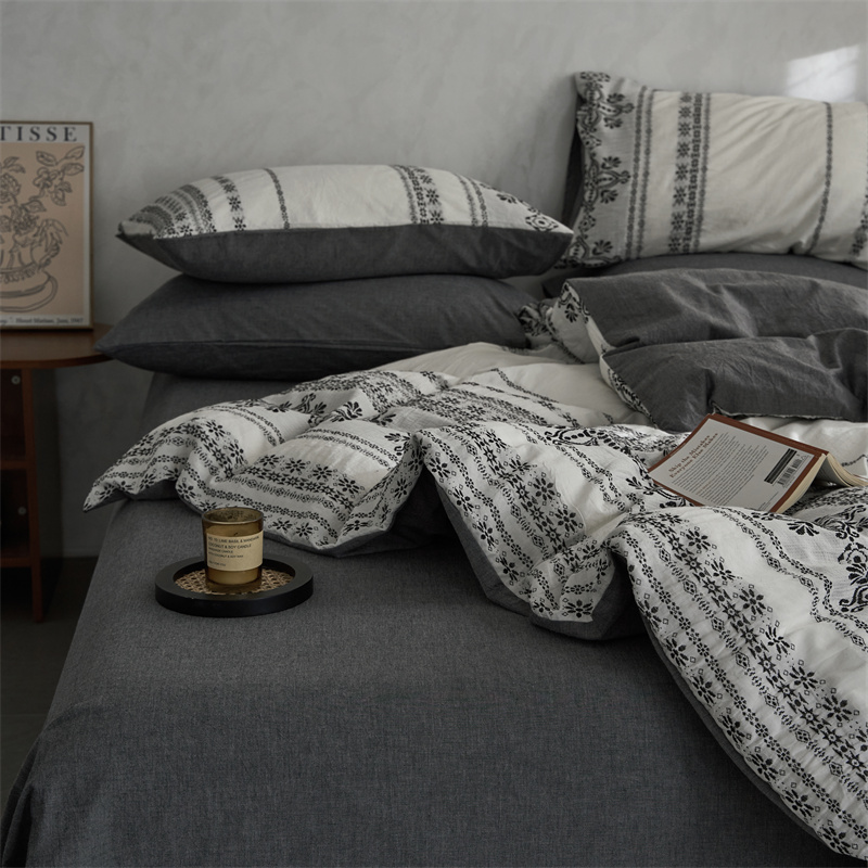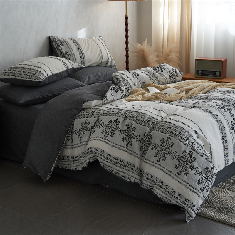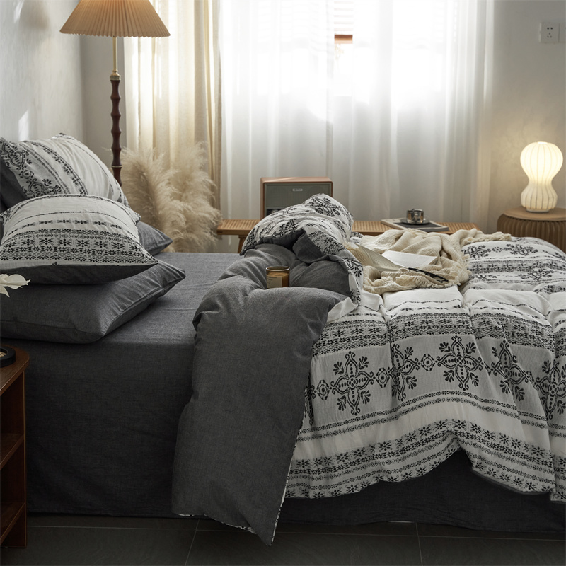 (总)梦享生活家居 2025新款全棉肌理纹提花四件套,灰黑色