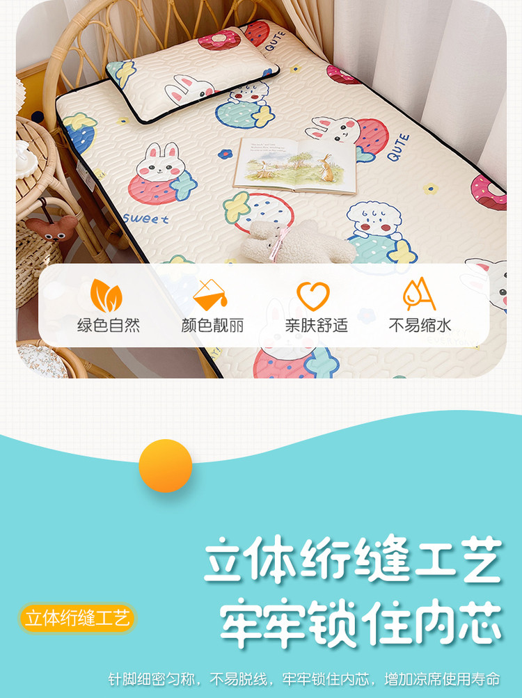 当前位置: 91家纺网 > 商品网购 > 床上用品 > 凉席 > 乳胶凉席 > 鱼宝 2022新款儿童凉感乳胶席两件套 草莓兔兔