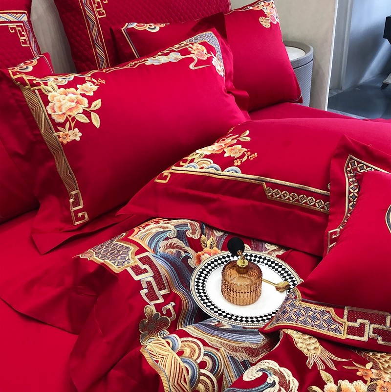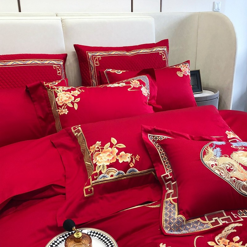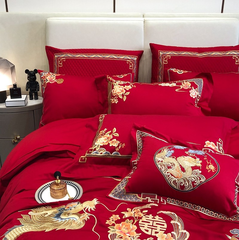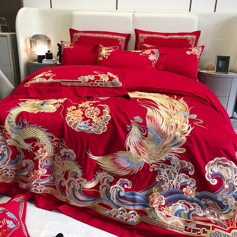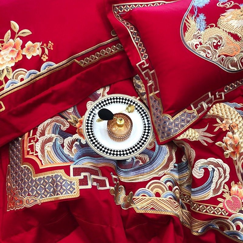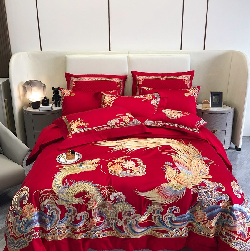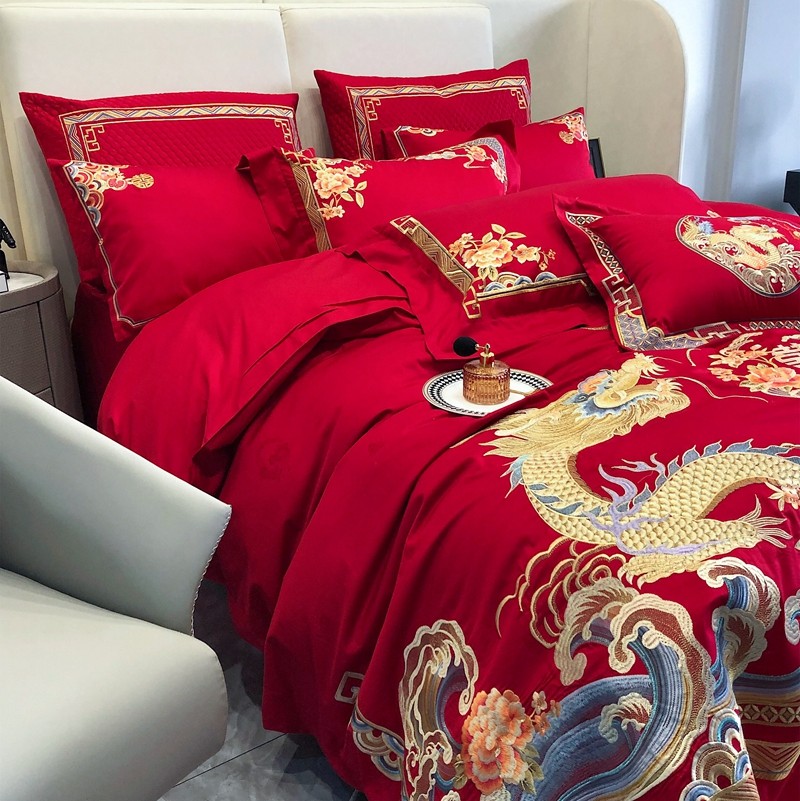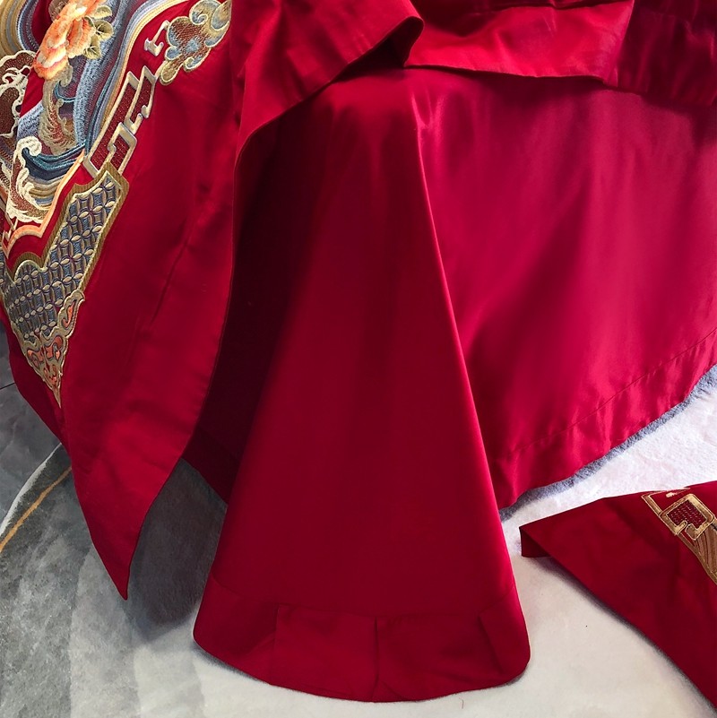 馨蕊家居2022新款140S全棉长绒棉刺绣婚庆四件套承龙御凤