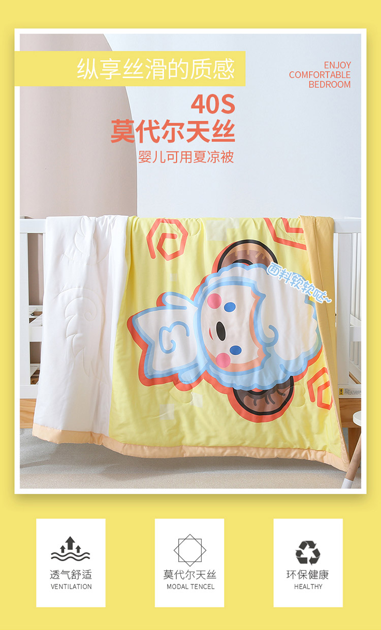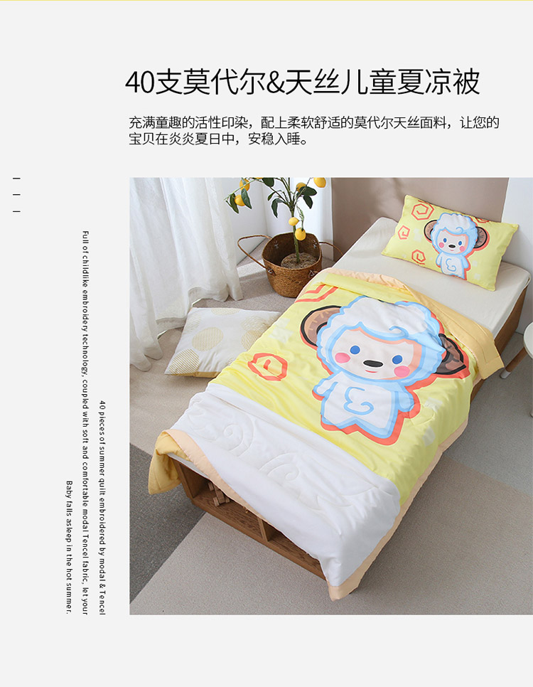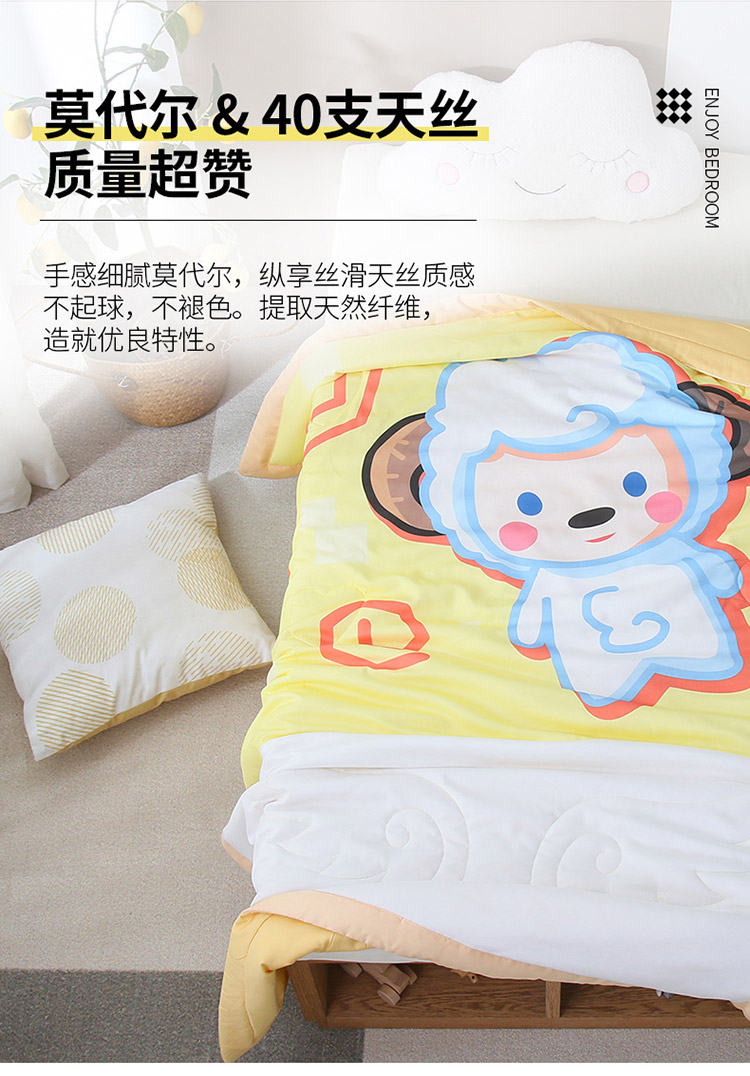 商品名称:喜多兔 2022新款小清新莫代尔天丝空调被夏被 黄色小羊崽