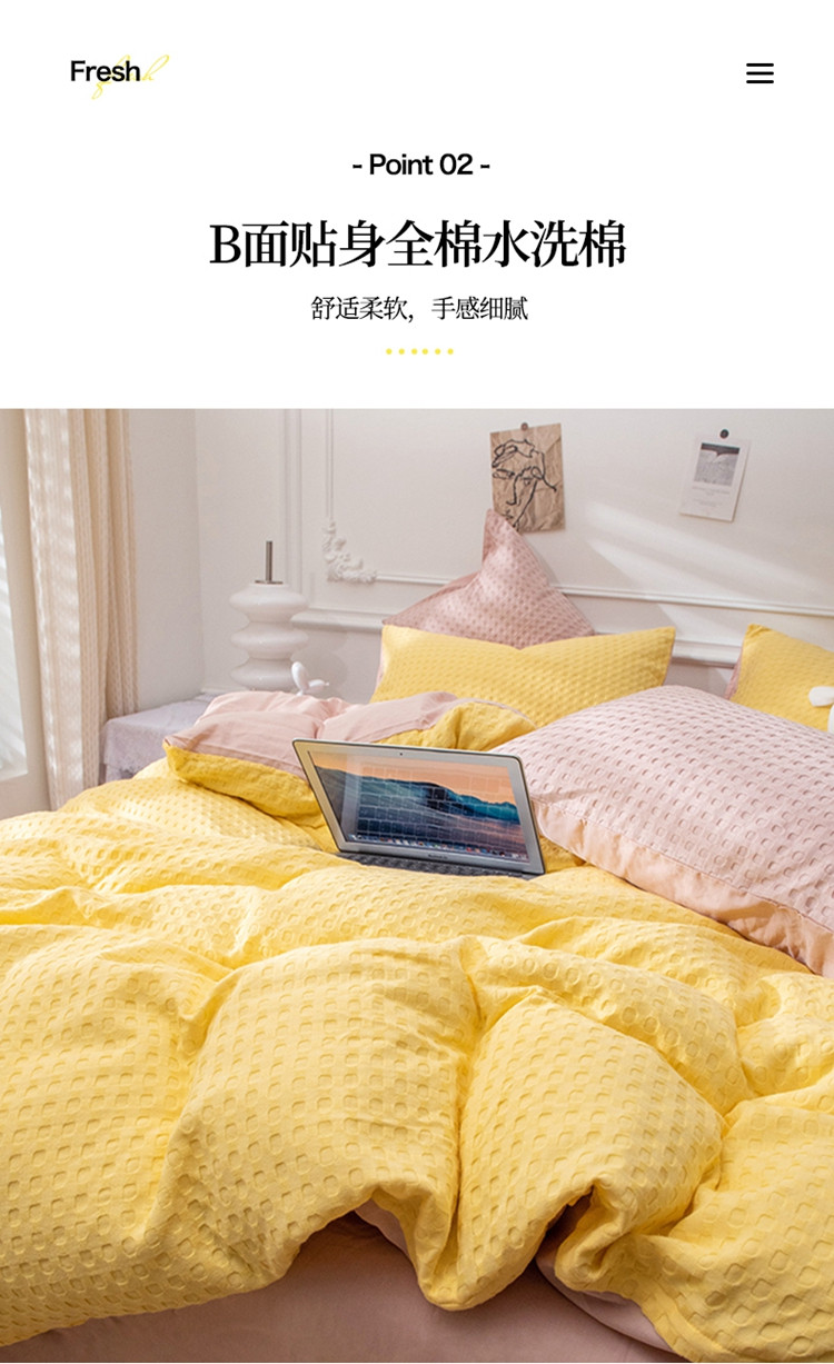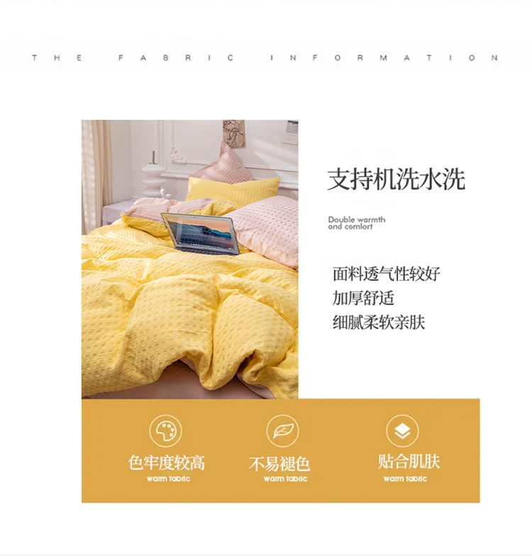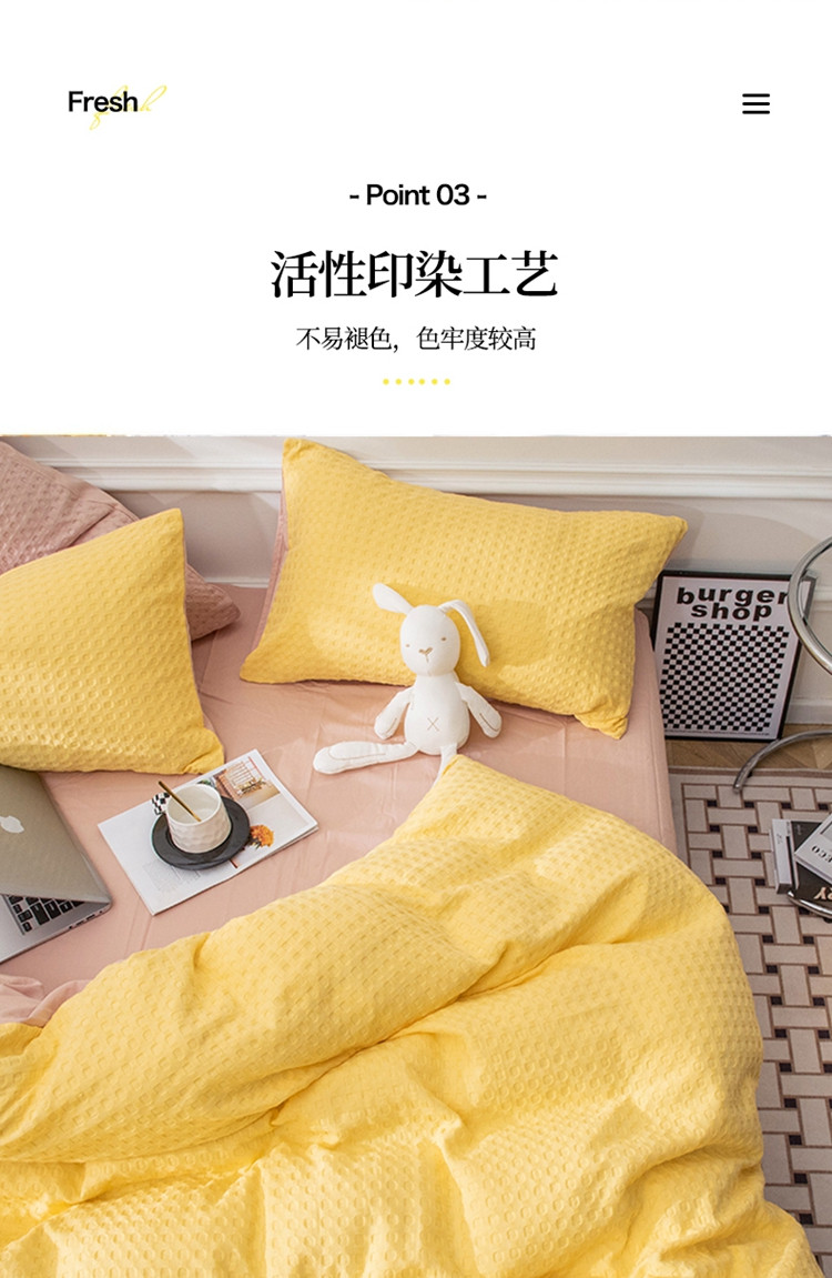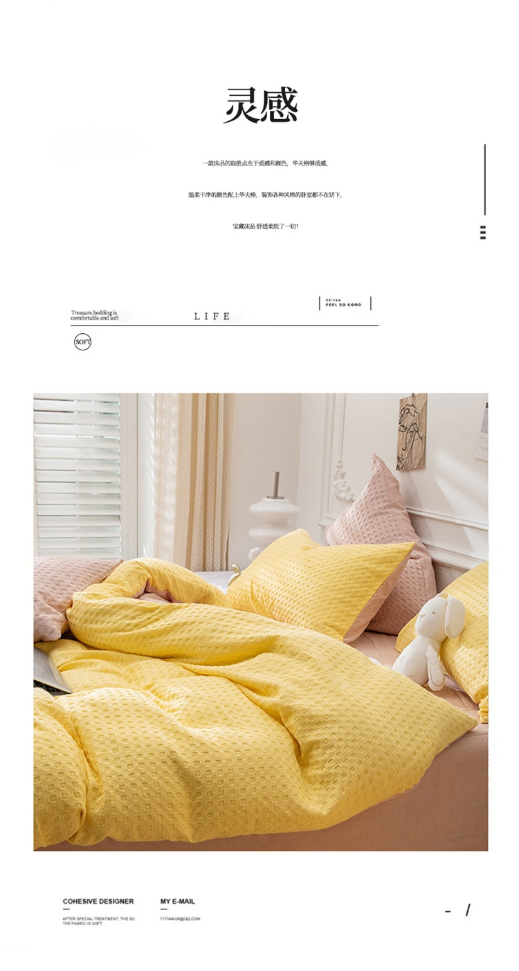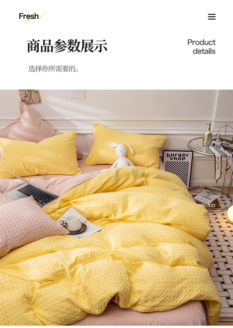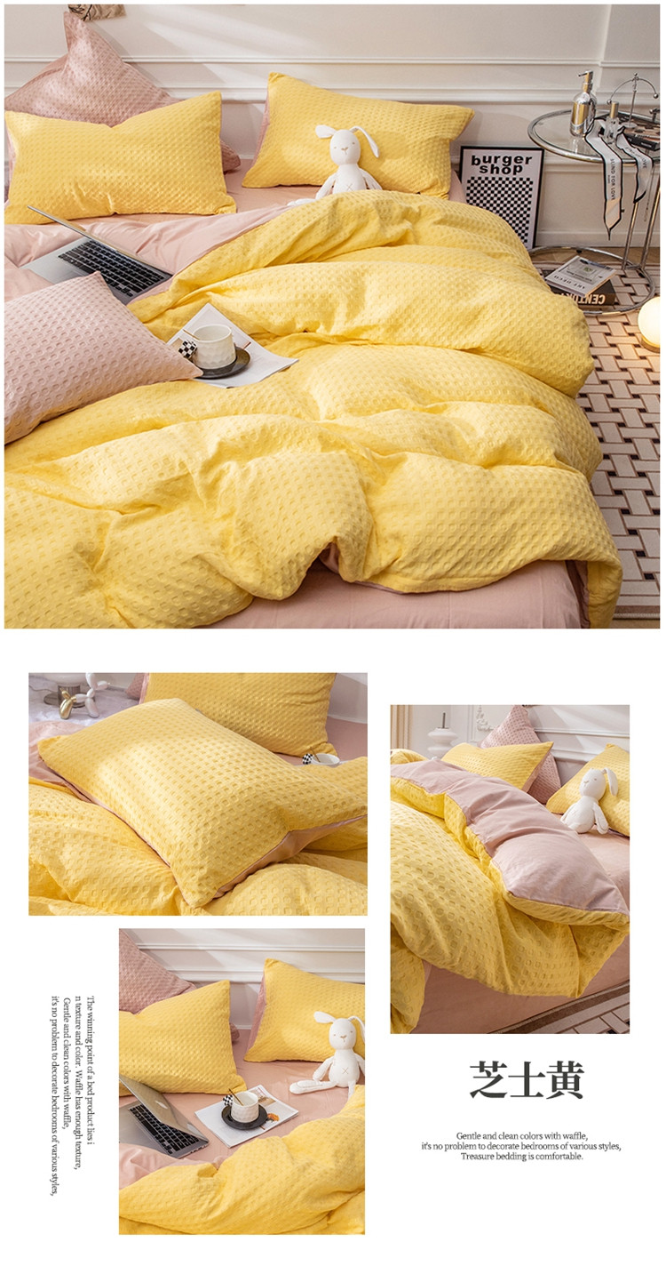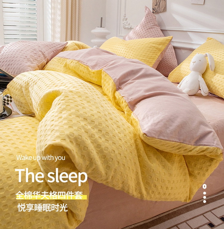 当前位置: 91家纺网 > 商品网购 > 床品套件 > 四件套 > 全棉普通四件套 > 网客家纺 2024新款全棉华夫格四件套 芝士黄