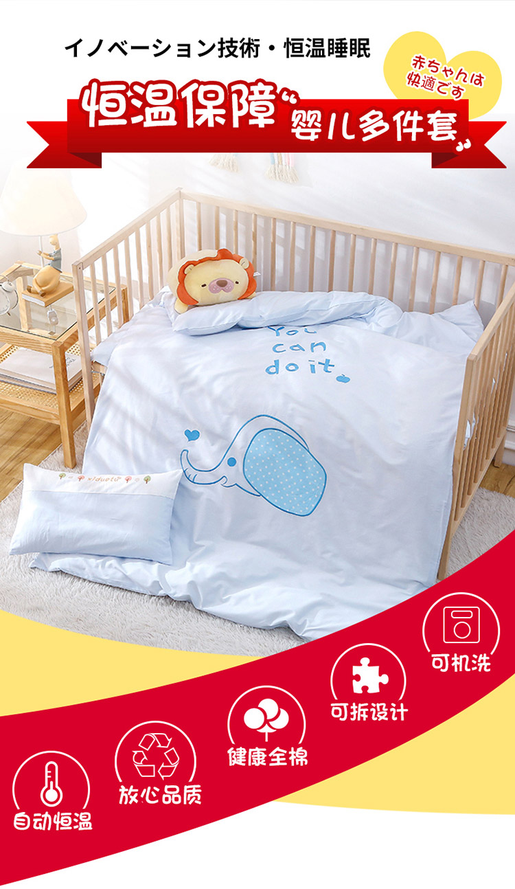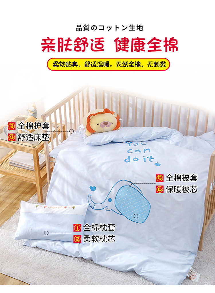 商品名称:喜多兔 2022新款小甜心幼儿园儿童床品套件 蓝色小飞象