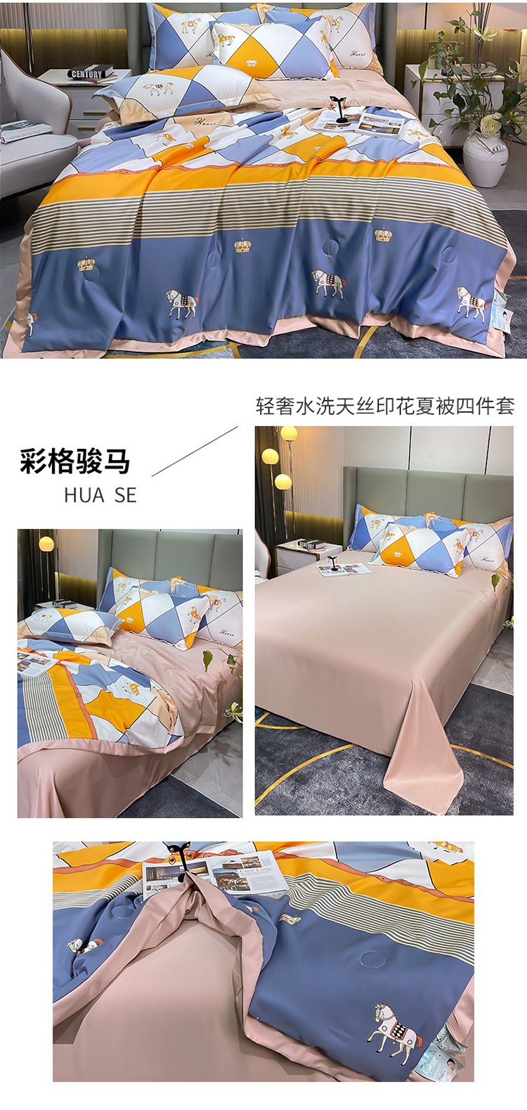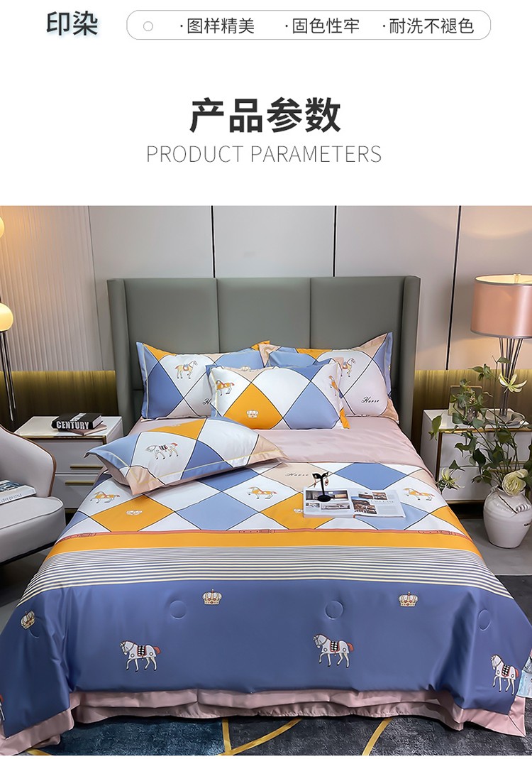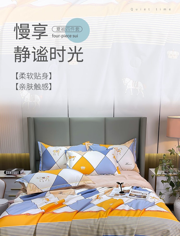 铠畅 2022新款床单款夏被四件套 彩格骏马