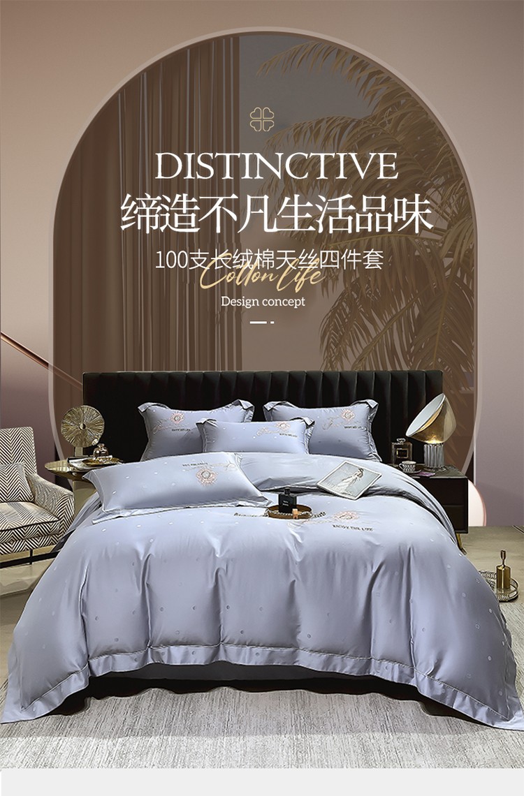 总小时代 2022新款100支长绒棉天丝床盖四件套-曲意风华