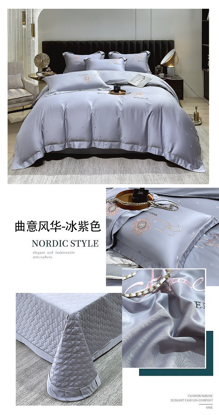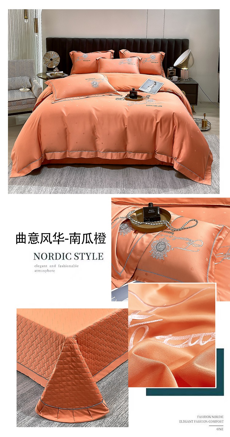 (总)小时代家纺 2025全棉活性喷气简约轻奢刺绣夹棉床盖款四件套-雅韵,雅韵-橙色,雅韵-灰兰,雅韵-青绿,雅韵-香槟,雅韵-胭粉,雅韵-紫色
