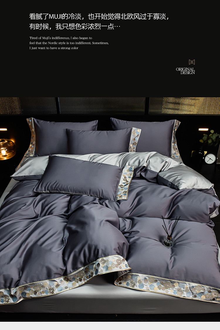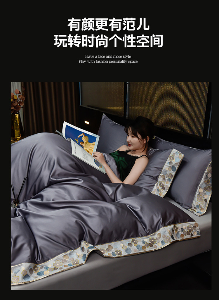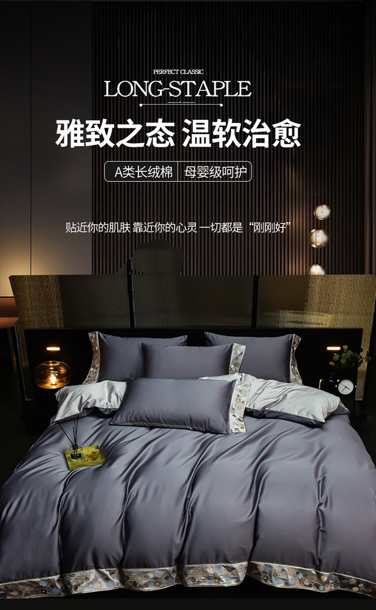 (总)金莎浪 2023新款瑾雅系列100支长绒棉四件套,瑾雅-灰蓝,瑾雅-米白,瑾雅-浅豆沙,瑾雅-浅绿,瑾雅-银灰,瑾雅-紫
