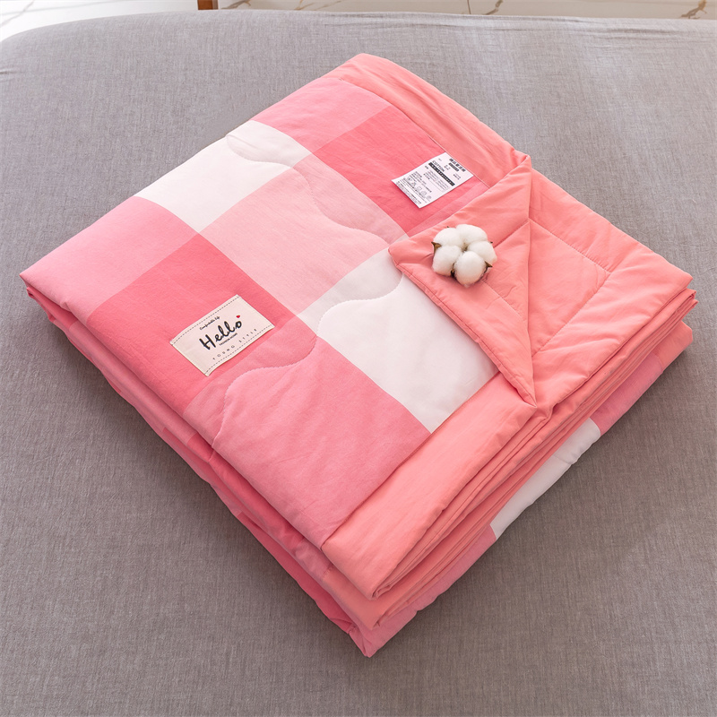 商品名称:简色坊 2023新款全棉色织水洗棉夏凉被格子款 优雅格调-粉