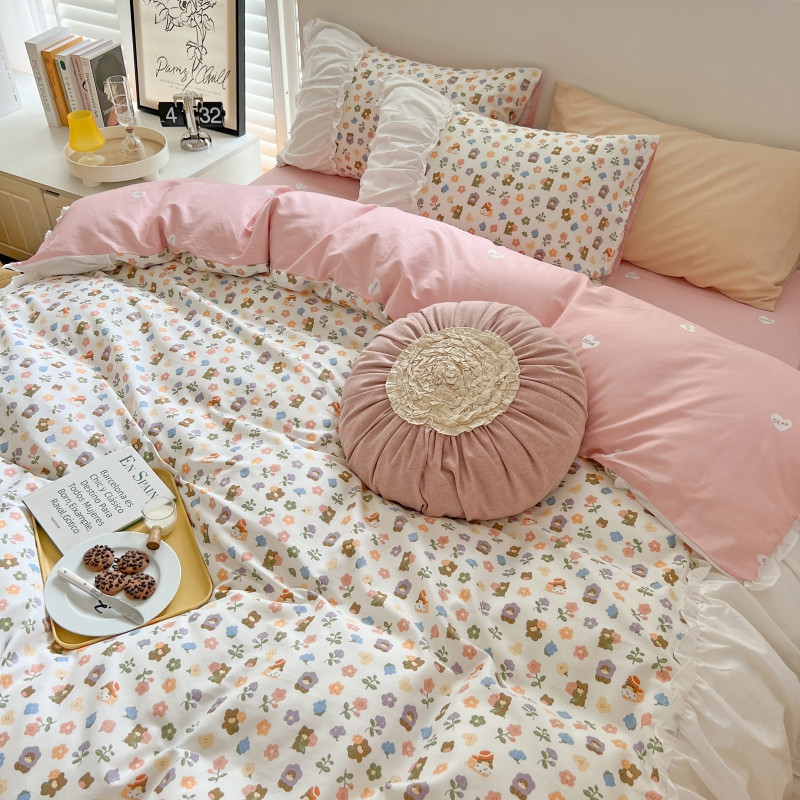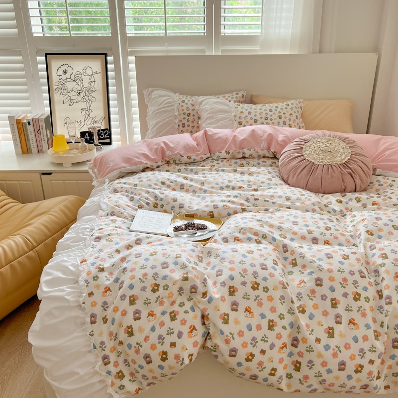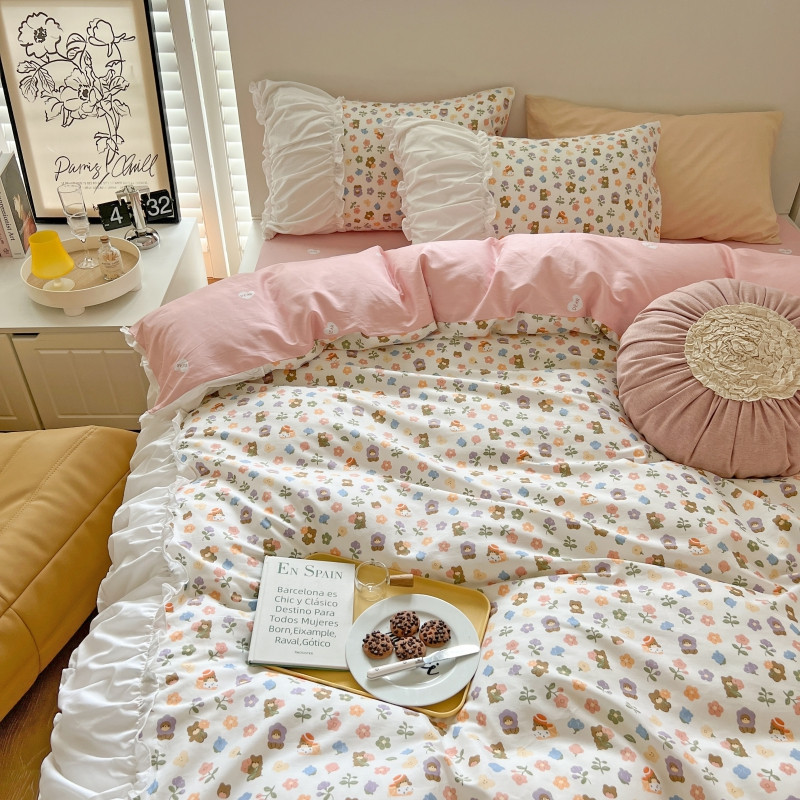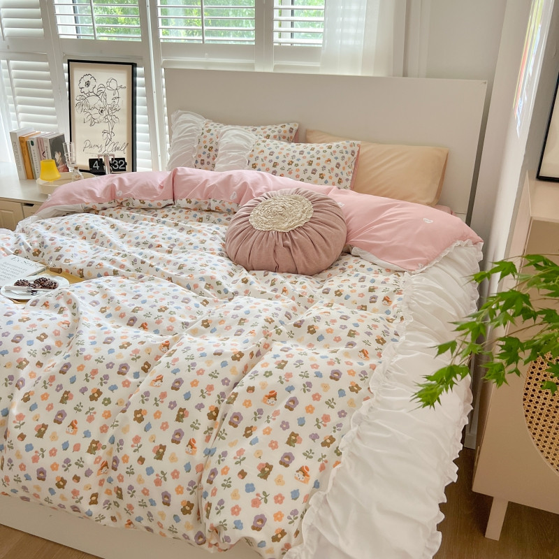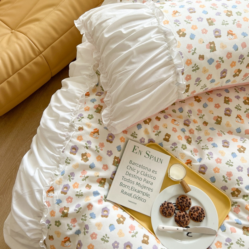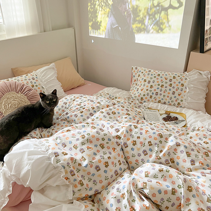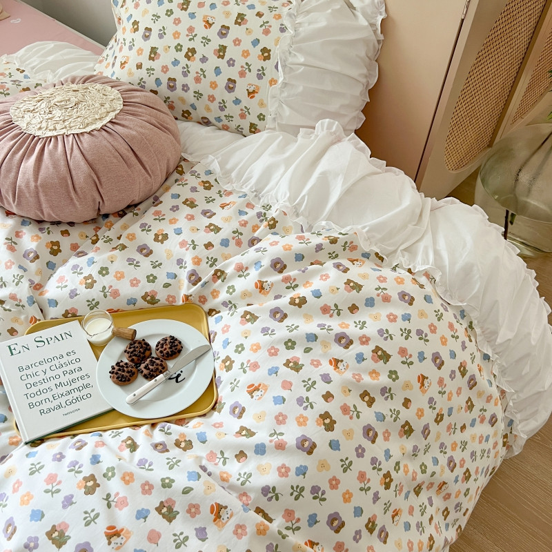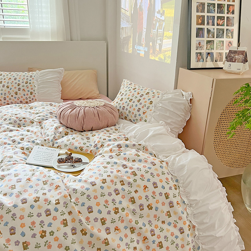 商品名称:顾里 2023新款法式甜美褶边全棉四件套-复古碎花系第一批 花房萌熊