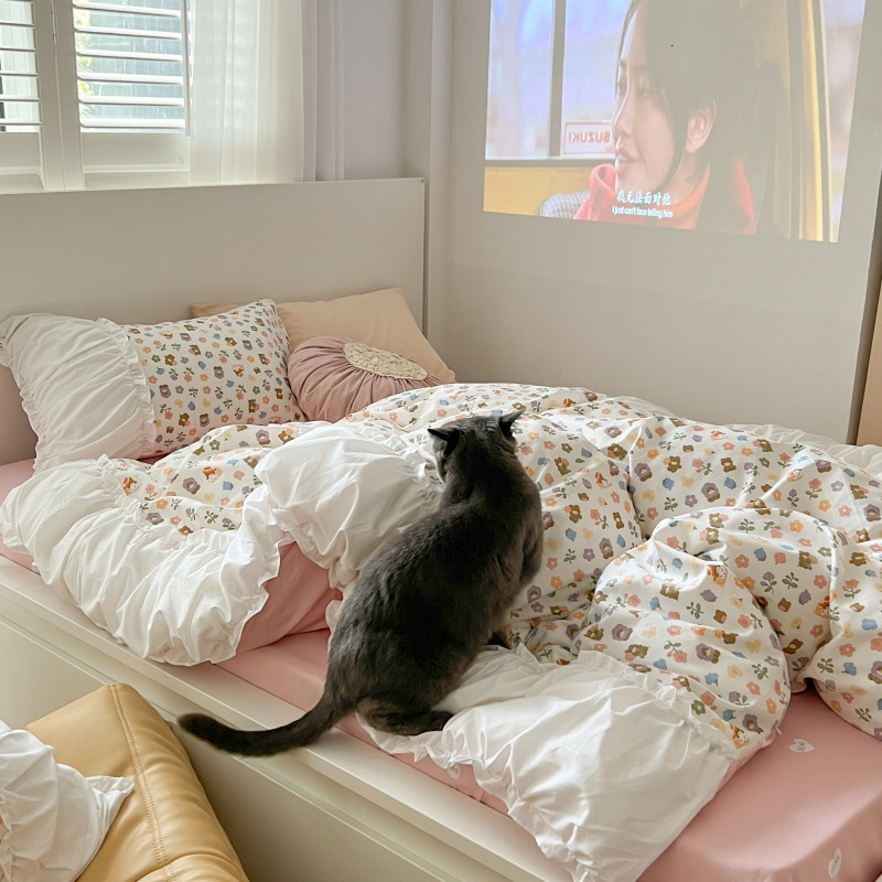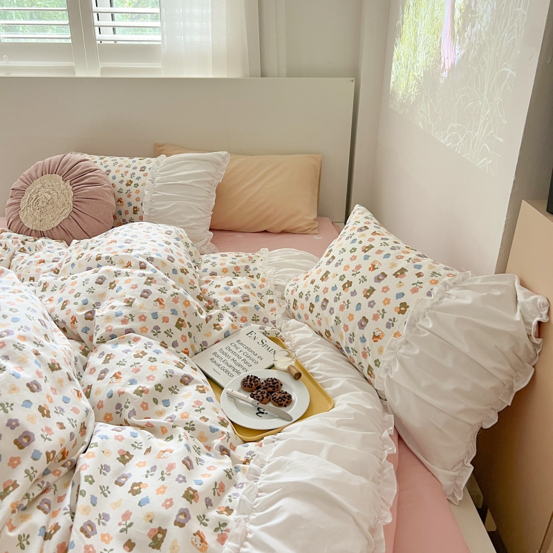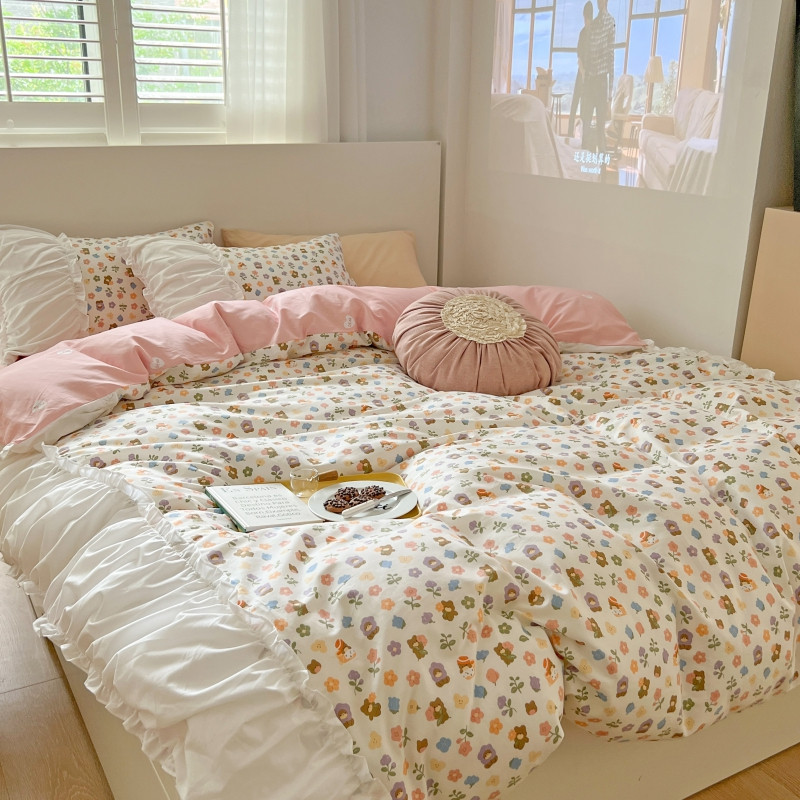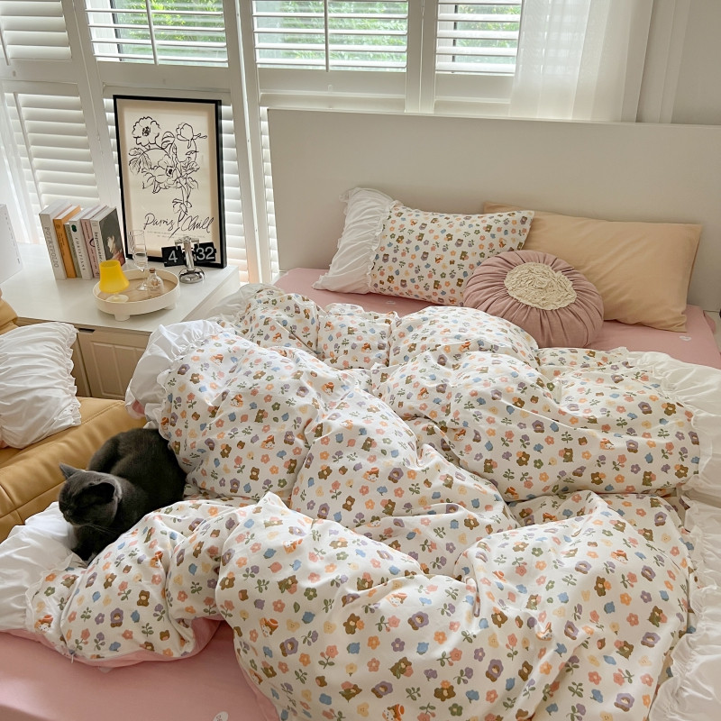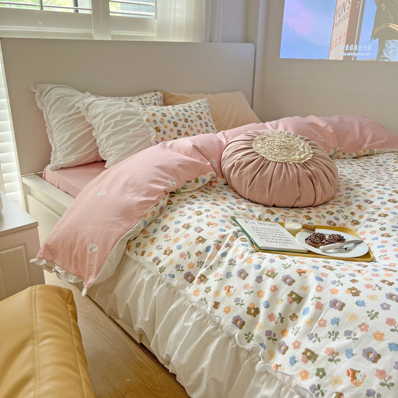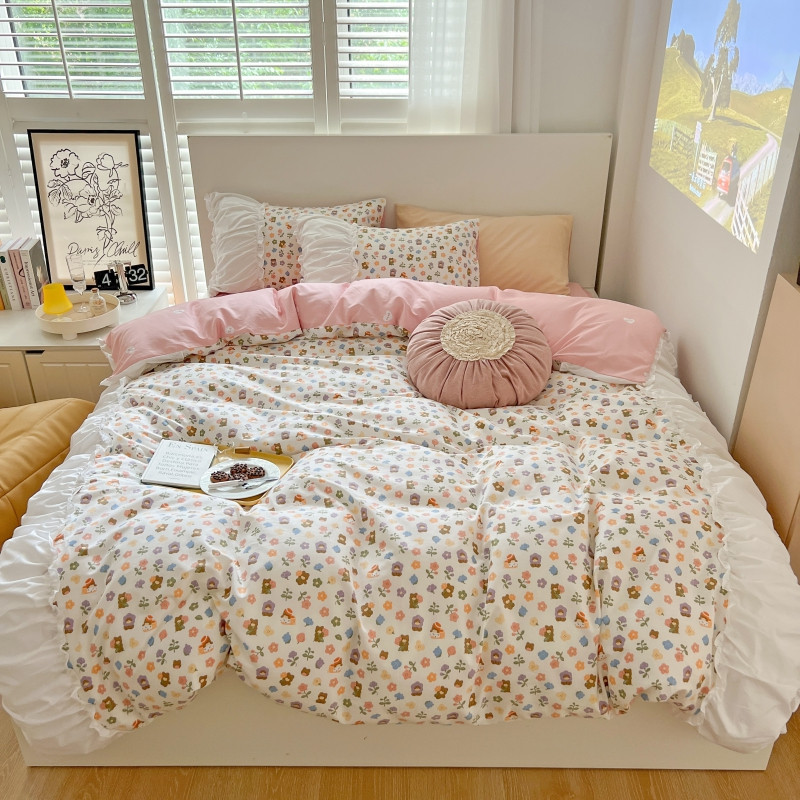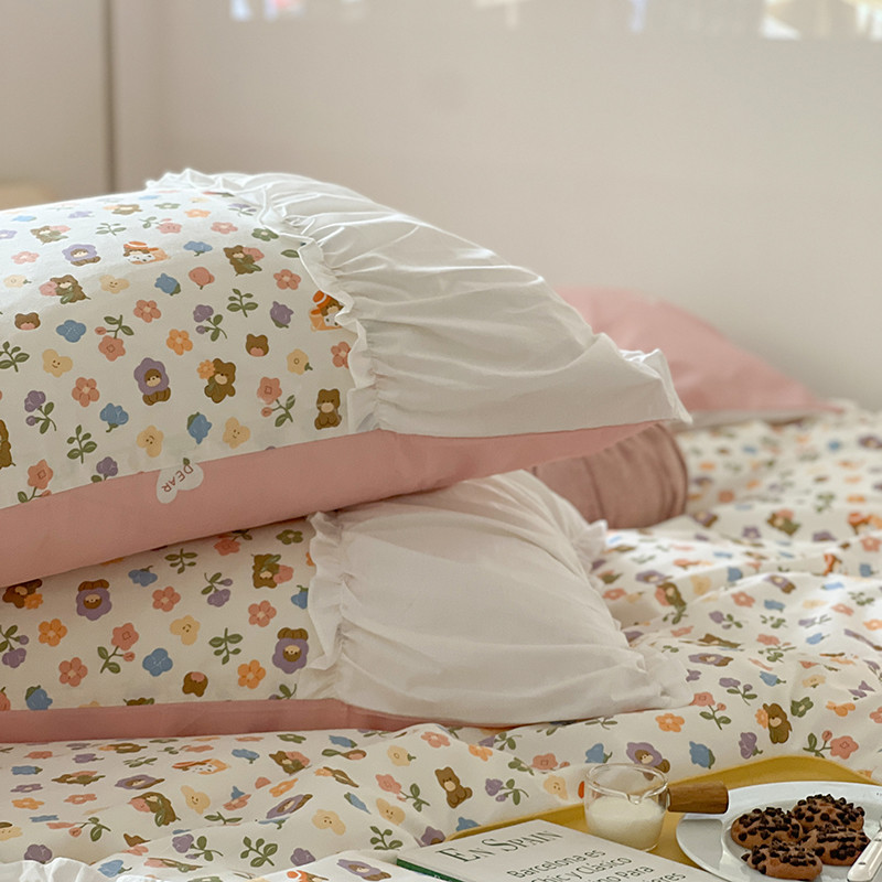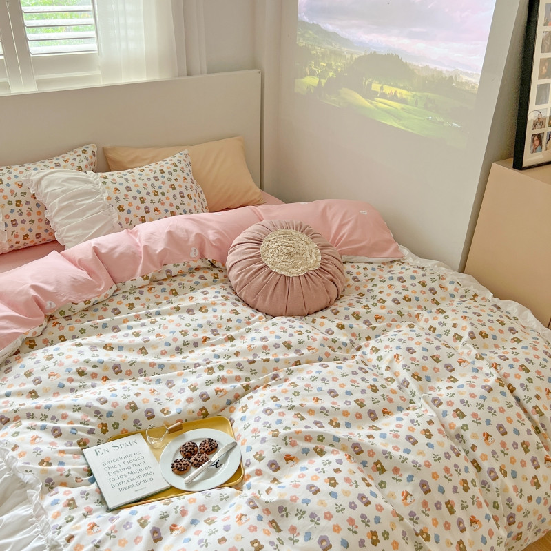 商品名称:顾里 2023新款法式甜美褶边全棉四件套-复古碎花系第一批 花房萌熊