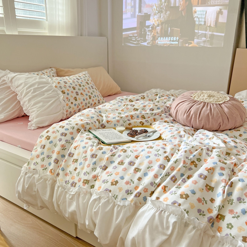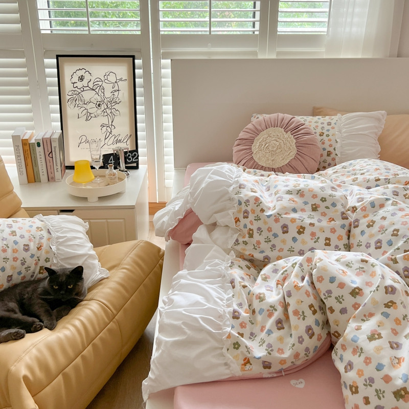 顾里 2023新款法式甜美褶边全棉四件套-复古碎花系第一批 花房萌熊