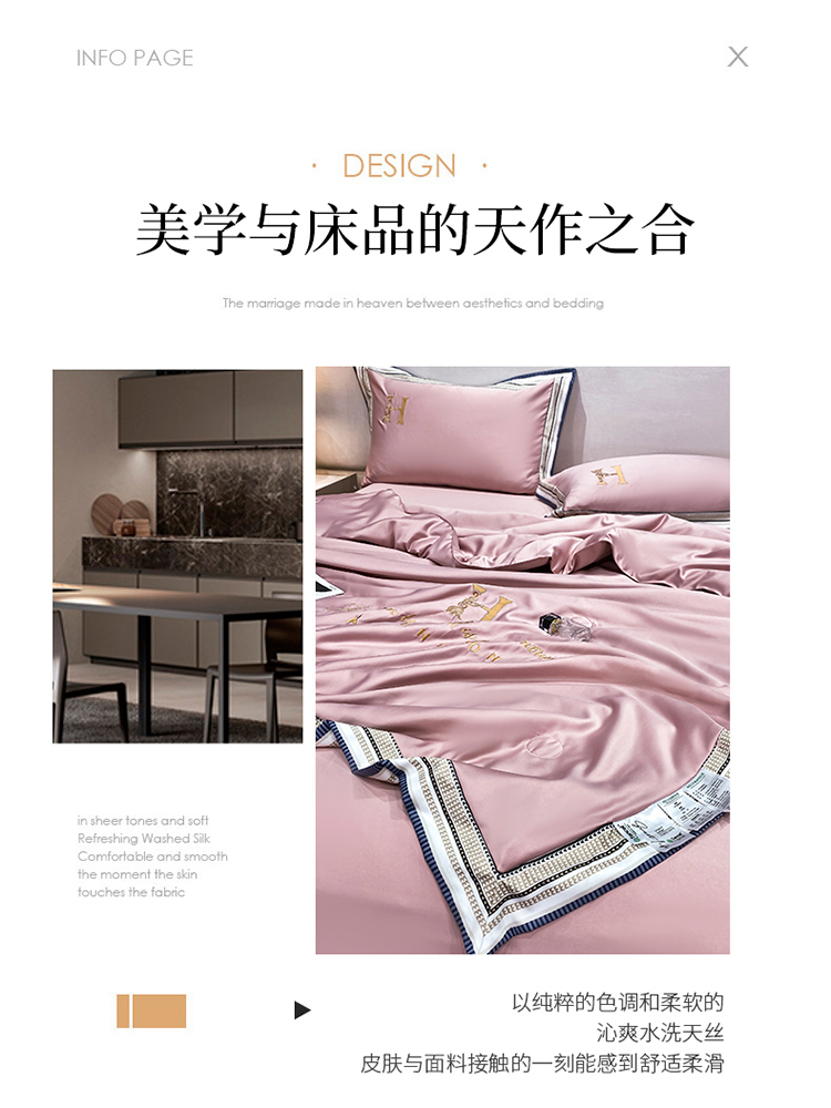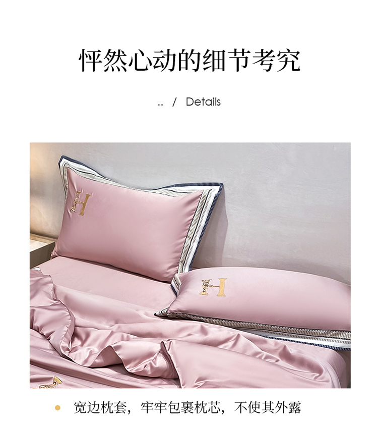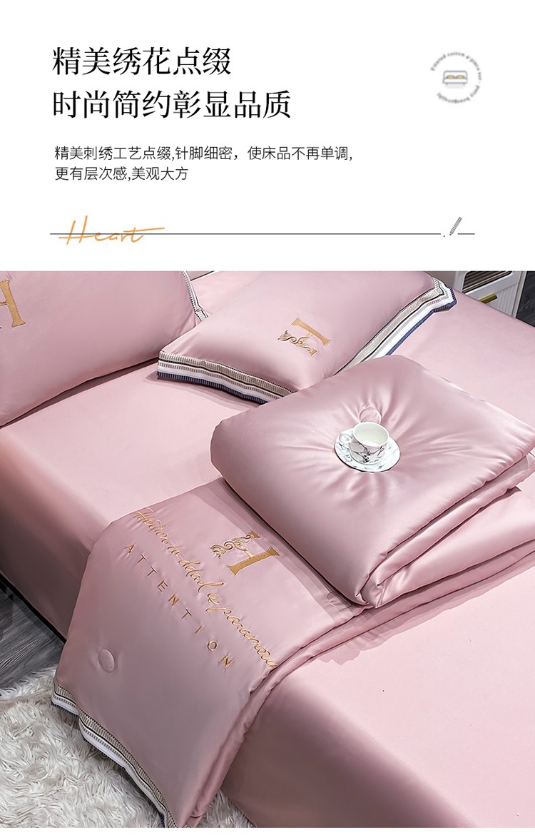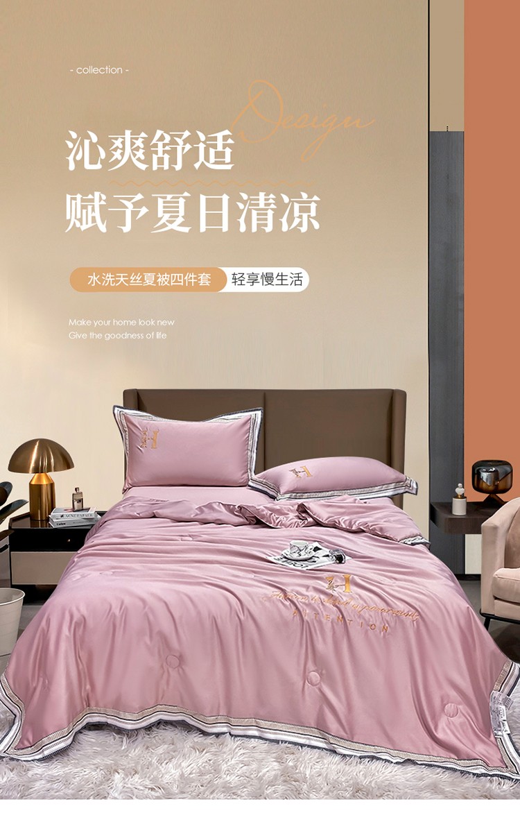 丽卡家纺2023新款水洗天丝刺绣夏被四件套 华尔兹-豆沙粉
