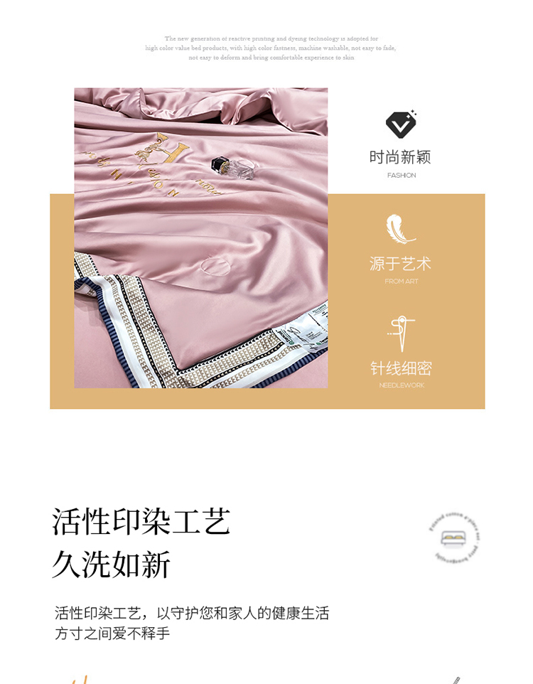 商品名称:丽卡家纺2023新款水洗天丝刺绣夏被四件套 华尔兹-豆沙粉