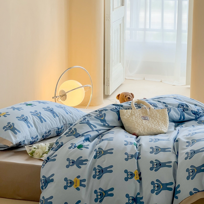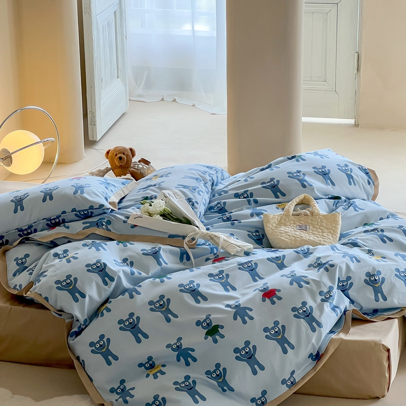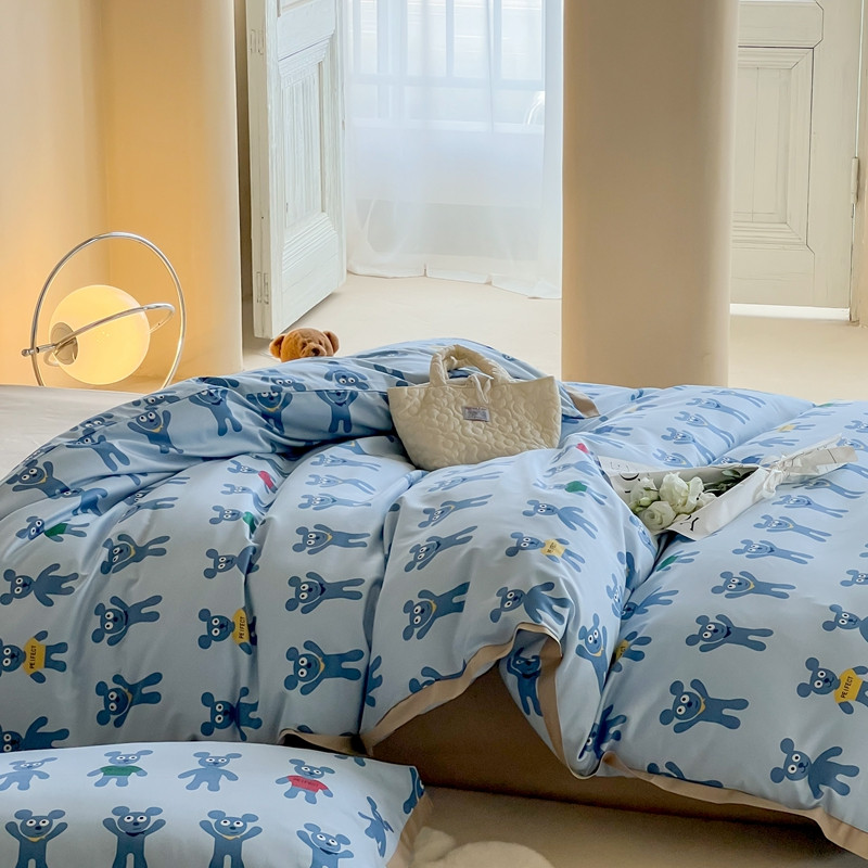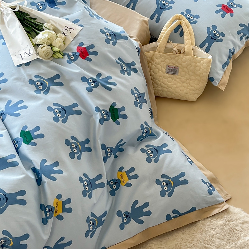 汇庭 2022新款长绒棉印花学生春秋被 姜饼人蓝