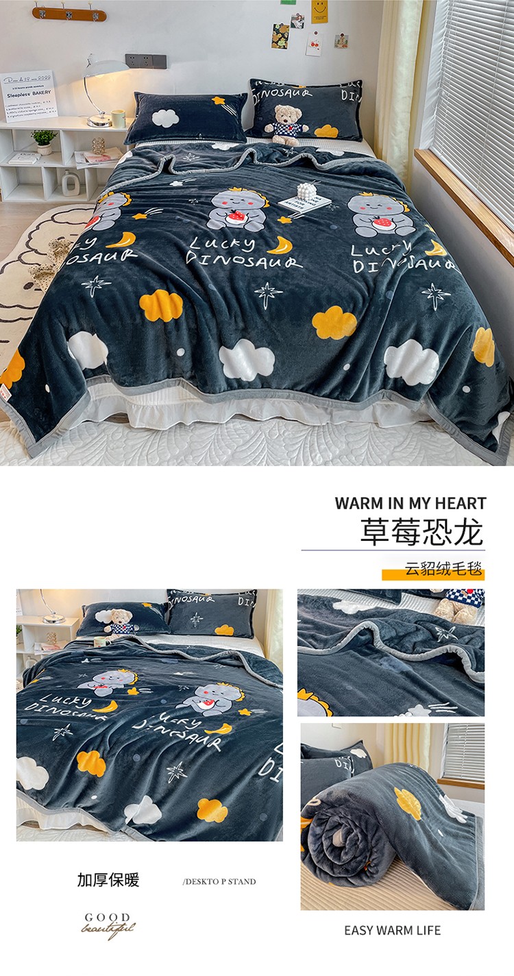 当前位置: 91家纺网 > 商品网购 > 毛毯休闲毯绒毯 > 毛毯 > 雅萱家纺 2022新款印花云貂绒毛毯 草莓恐龙